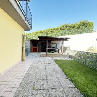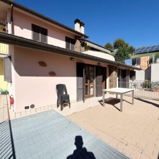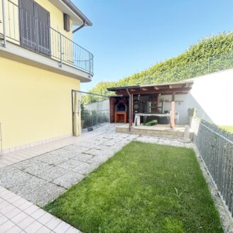 Appartamento di recente costruzione di circa 78 mq, situato al piano terra di una villetta a schiera con ingresso indipendente. L’abitazione è composta da soggiorno con angolo cottura e termostufa, due camere matrimoniali e bagno finestrato. Completano la proprietà un garage esclusivo, una lavanderia con secondo bagno e un giardino privato sia sul fronte che sul retro, ideale per vivere gli spazi esterni in tranquillità. L’immobile si presenta in ottime condizioni, con finiture moderne e curate. Soluzione funzionale e confortevole, perfetta per famiglie o coppie.