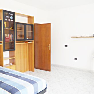 La disposizione interna prevede un ingresso accogliente, un ampio e luminoso soggiorno con accesso diretto al balcone, una cucina abitabile, tre camere matrimoniali dalle dimensioni generose e un bagno finestrato. Al piano terra sono presenti un’ampia taverna, un secondo bagno e un fondo, ideali come spazi accessori o per momenti conviviali.