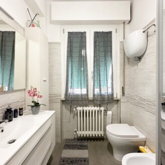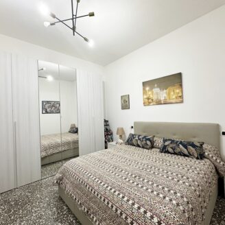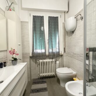 L’appartamento è stato completamente ristrutturato nel 2019, compresi gli infissi e gli impianti, mentre è stato mantenuto e valorizzato il pavimento originale in graniglia, riportato all’antico splendore grazie a un’accurata rilevigatura.