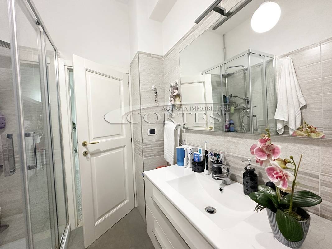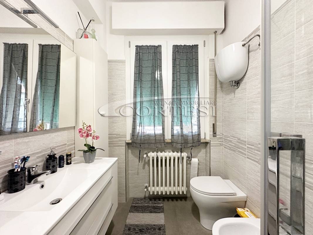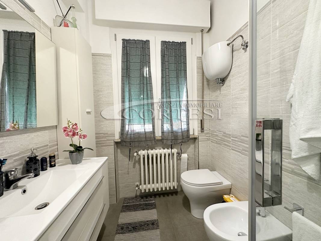 L’appartamento è stato completamente ristrutturato nel 2019, compresi gli infissi e gli impianti, mentre è stato mantenuto e valorizzato il pavimento originale in graniglia, riportato all’antico splendore grazie a un’accurata rilevigatura.