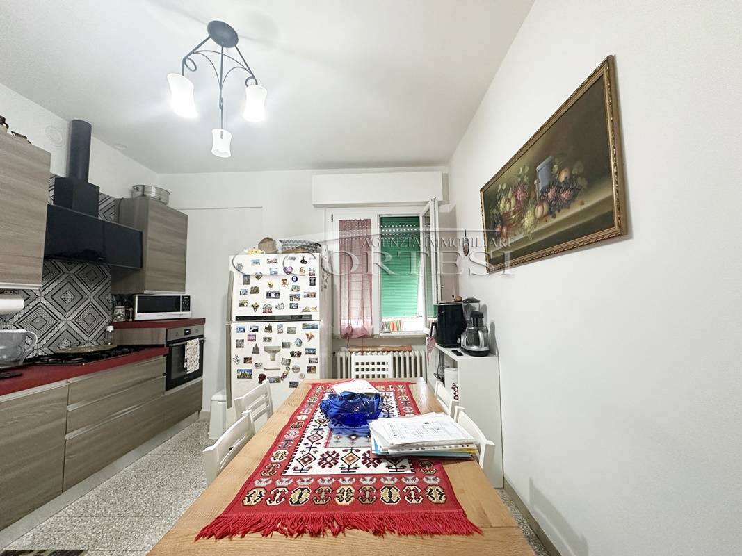 In contesto tranquillo di sole sei unità abitative, proponiamo in vendita un appartamento di circa 80 mq situato al terzo piano, caratterizzato da ambienti luminosi e ben distribuiti. L’abitazione si compone di ingresso, soggiorno con balcone e stufa, cucina abitabile, due camere da letto matrimoniali e bagno finestrato con doccia. Completano la proprietà un comodo garage di 19 mq al piano terra.