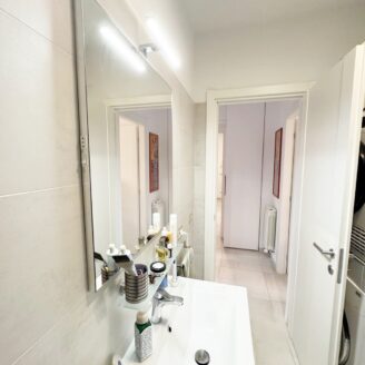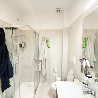 La zona notte è composta da due camere da letto, di cui una spaziosa matrimoniale, e due bagni entrambi con box doccia: uno finestrato, l’altro attualmente adibito anche a lavanderia. Completano la proprietà un pratico ripostiglio e ulteriori due balconi, che garantiscono ottima luminosità e sfogo esterno.