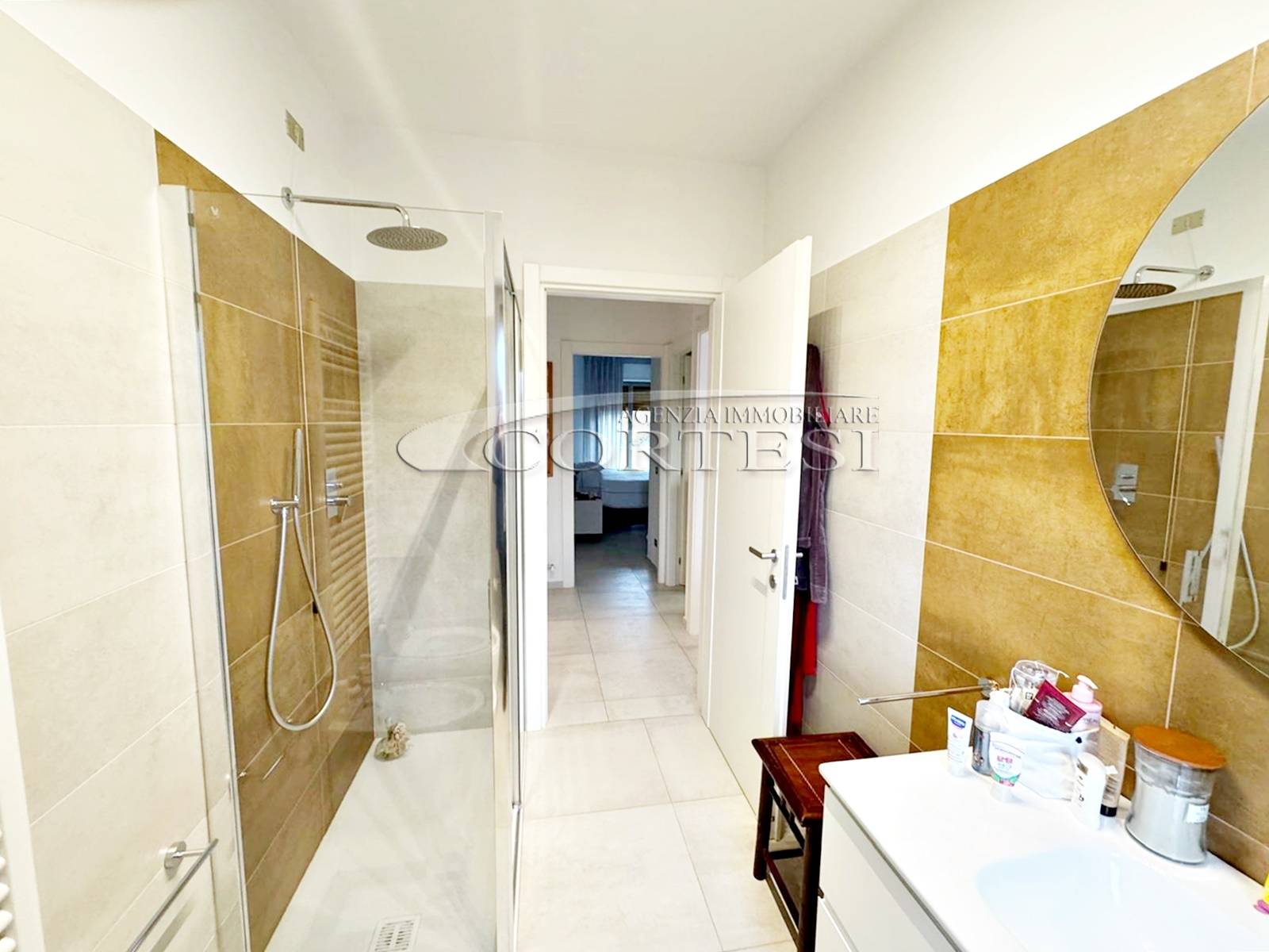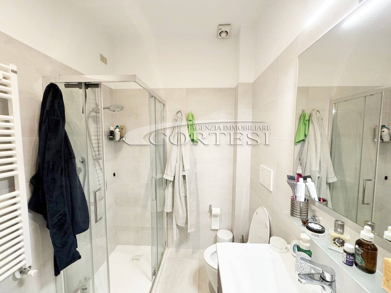 La zona notte è composta da due camere da letto, di cui una spaziosa matrimoniale, e due bagni entrambi con box doccia: uno finestrato, l’altro attualmente adibito anche a lavanderia. Completano la proprietà un pratico ripostiglio e ulteriori due balconi, che garantiscono ottima luminosità e sfogo esterno.