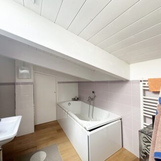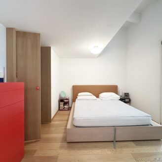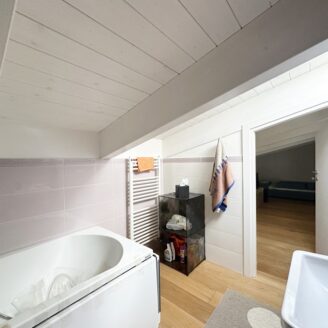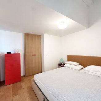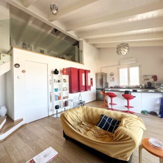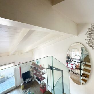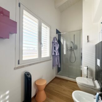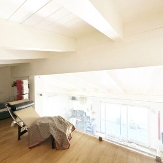 La zona notte è composta da due camere da letto e un bagno con doccia. Completa la proprietà un elegante soppalco che ospita una terza camera con bagno privato dotato di vasca, perfetto come suite o studio.