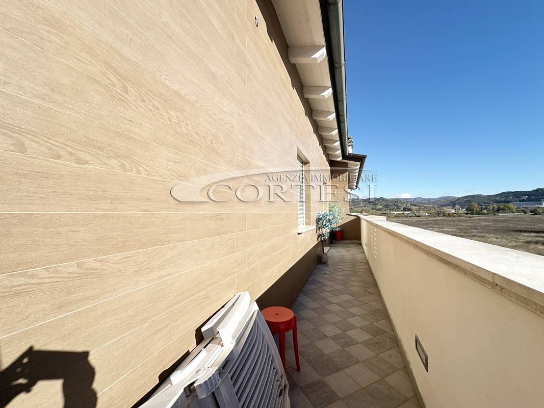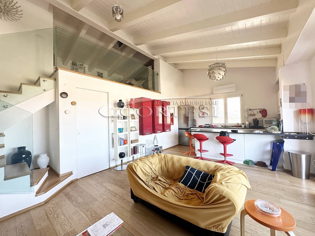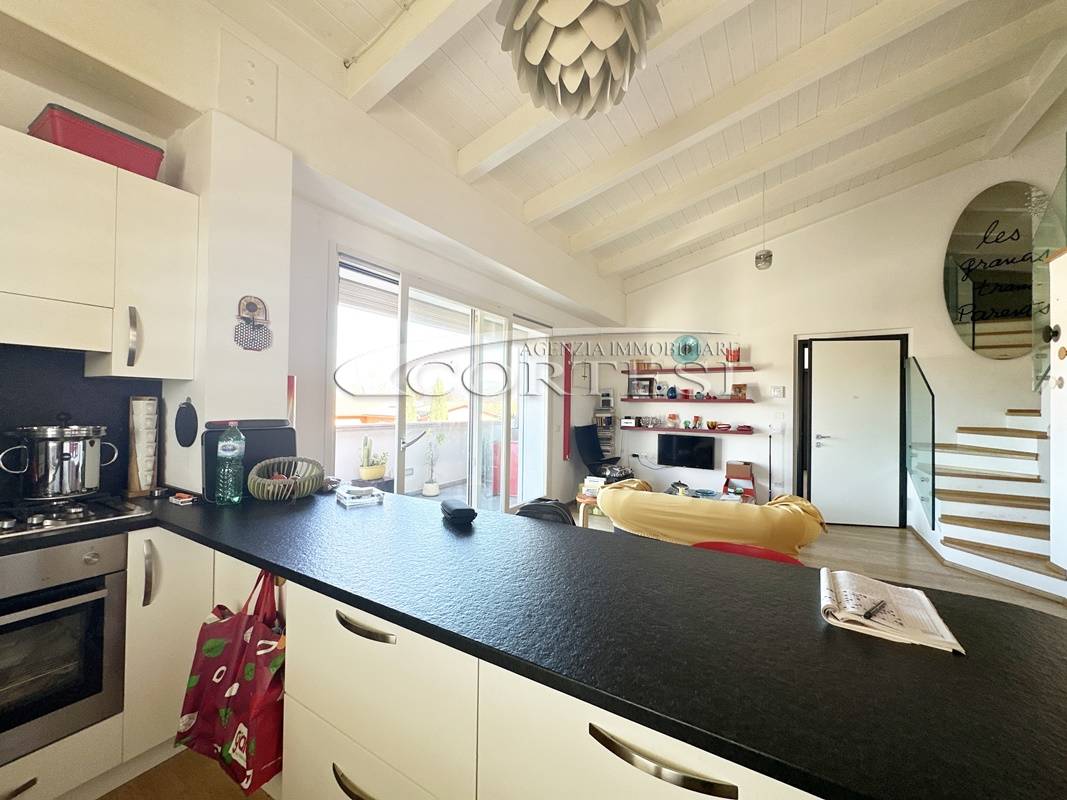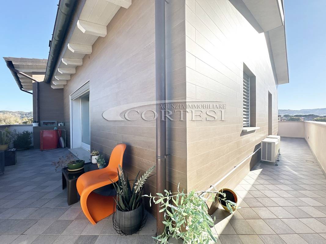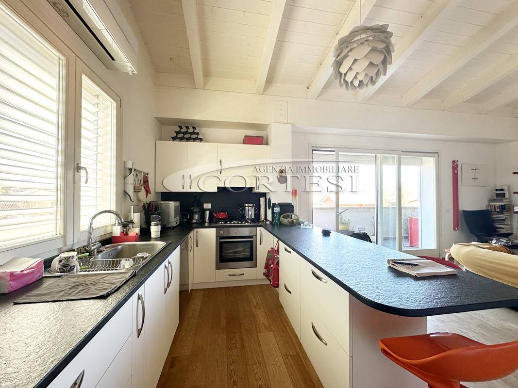 L’abitazione si distingue per la luminosità e gli spazi ben distribuiti: un’accogliente zona giorno open space con cucina a vista si apre direttamente su un ampio terrazzo che circonda l’appartamento su tre lati, ideale per momenti di relax e cene all’aperto.