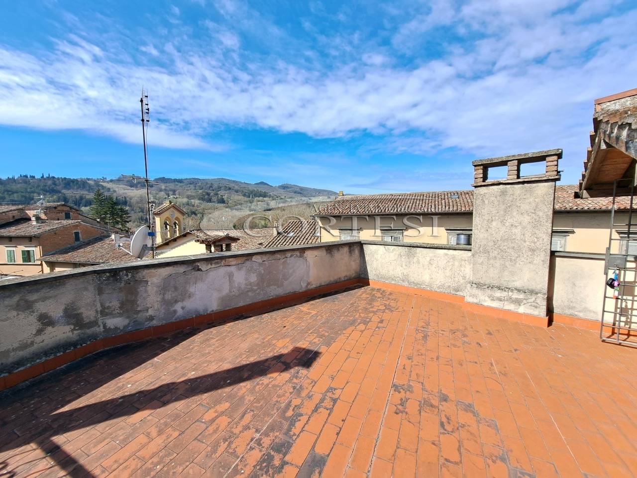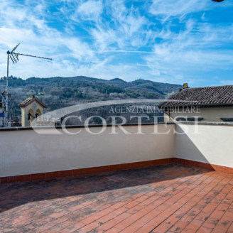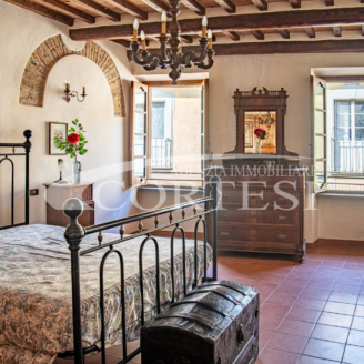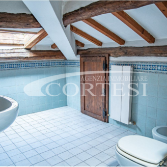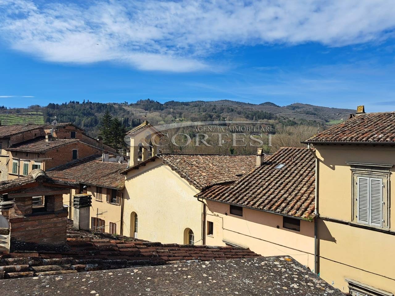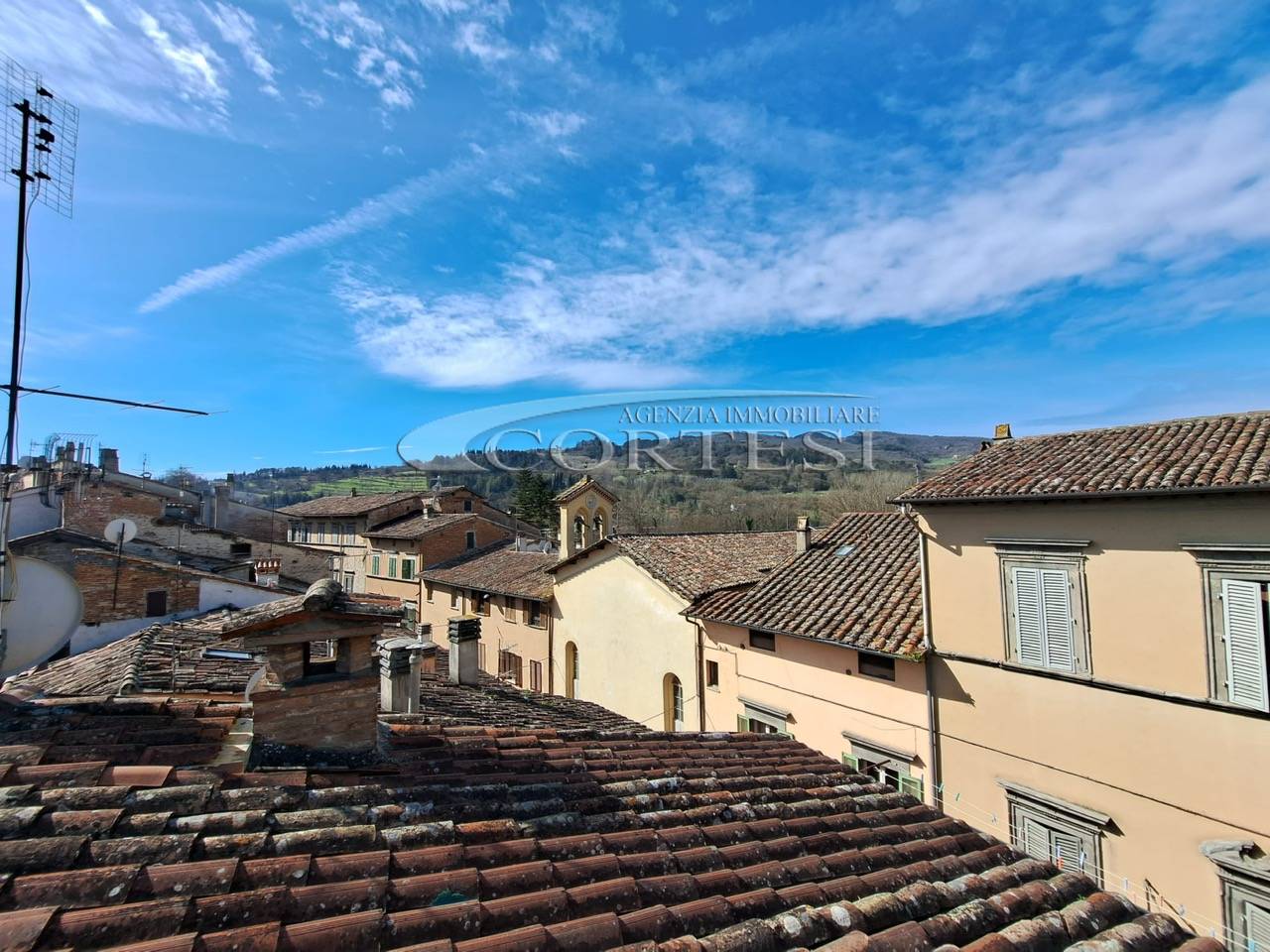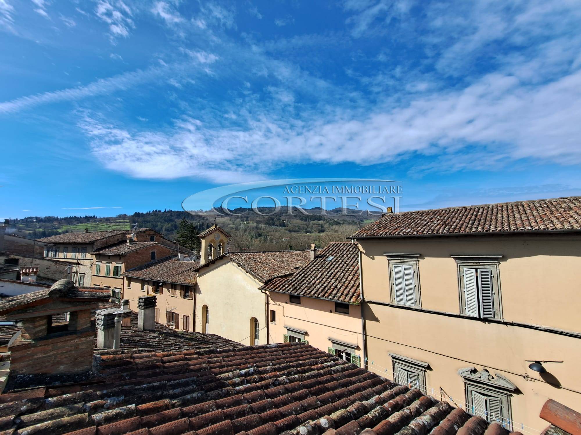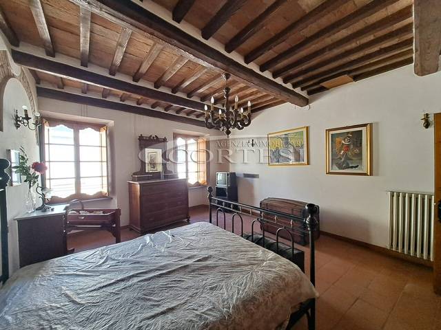 In palazzo storico, appartamento signorile di mq 240 posto a piano primo, con ingresso indipendente, composto da: cortile privato con pozzo da cui si accede alla taverna a piano terra, ingresso, soggiorno con camino, cucina abitabile con sala da pranzo, ampio salone, due camere matrimoniali padronali, ampio bagno con vasca francese freestanding, secondo bagno con doccia, ripostiglio con lavanderia a piano primo oltre a ampio studio con camino e con accesso a terrazza con vista panoramica a 360° su Città di Castello. Mansarda collegata internamente con camera matrimoniale, bagno, ripostiglio oltre a terrazza.