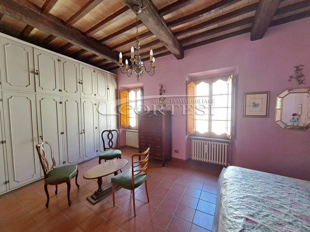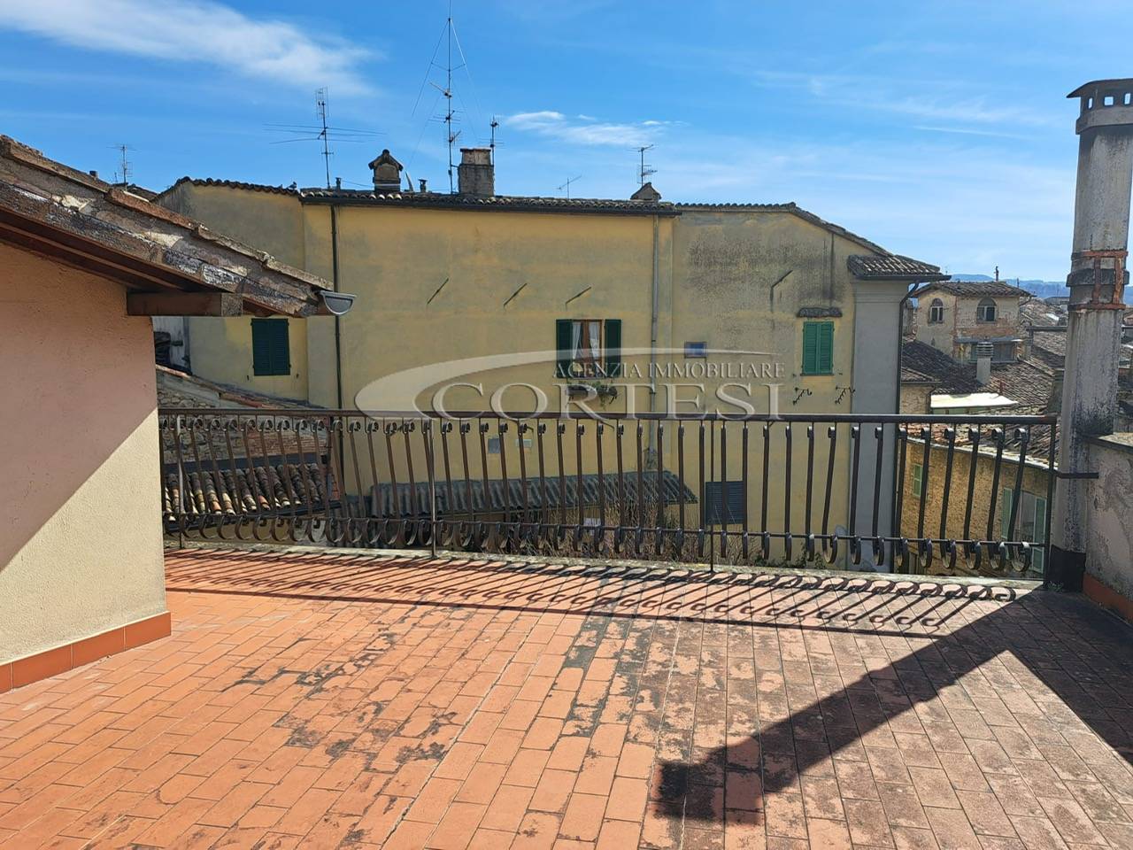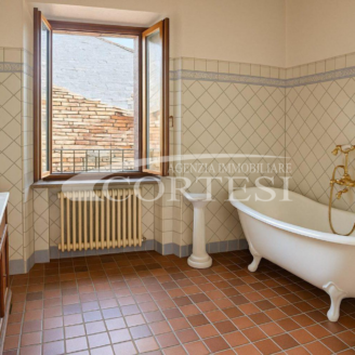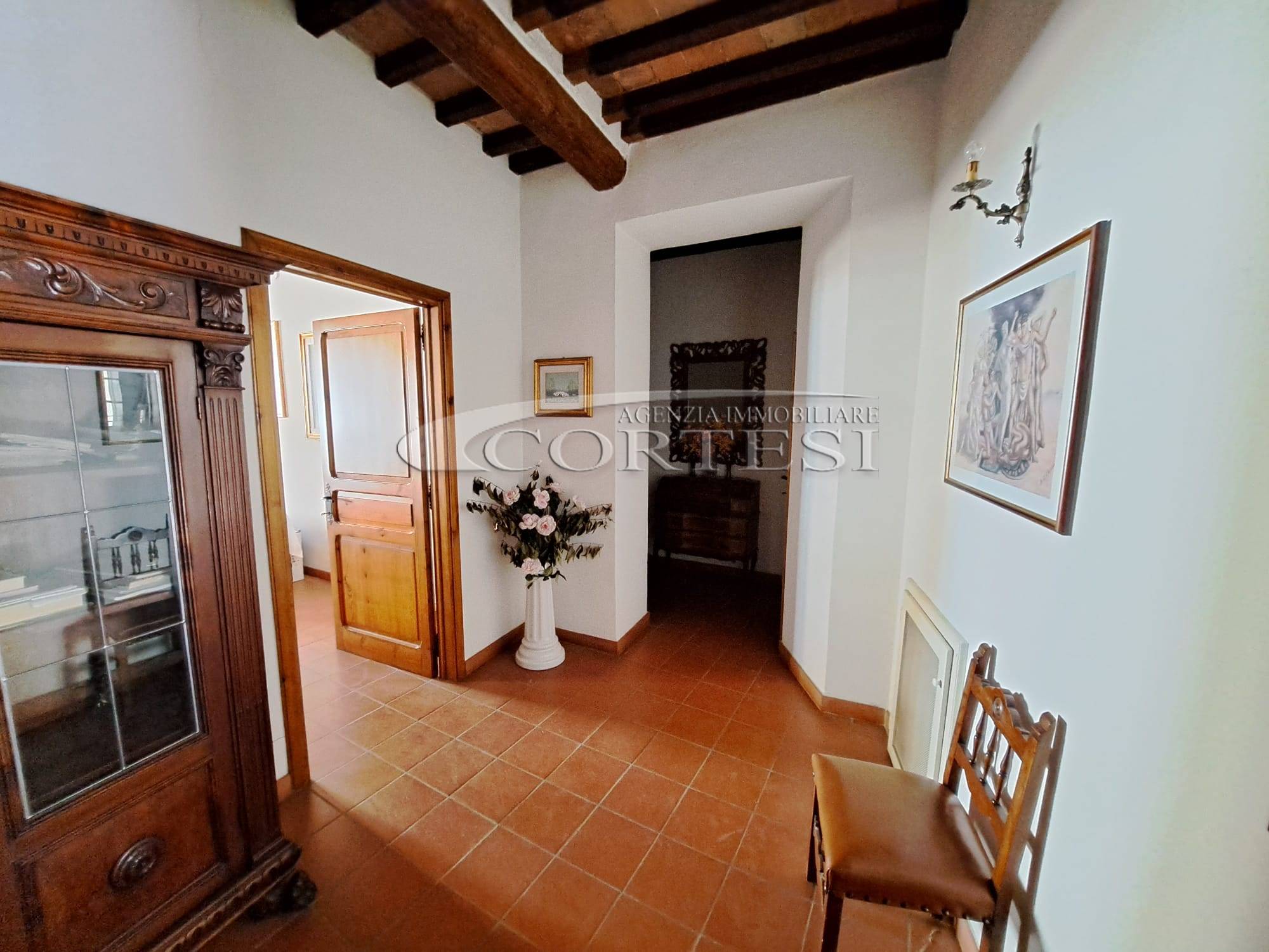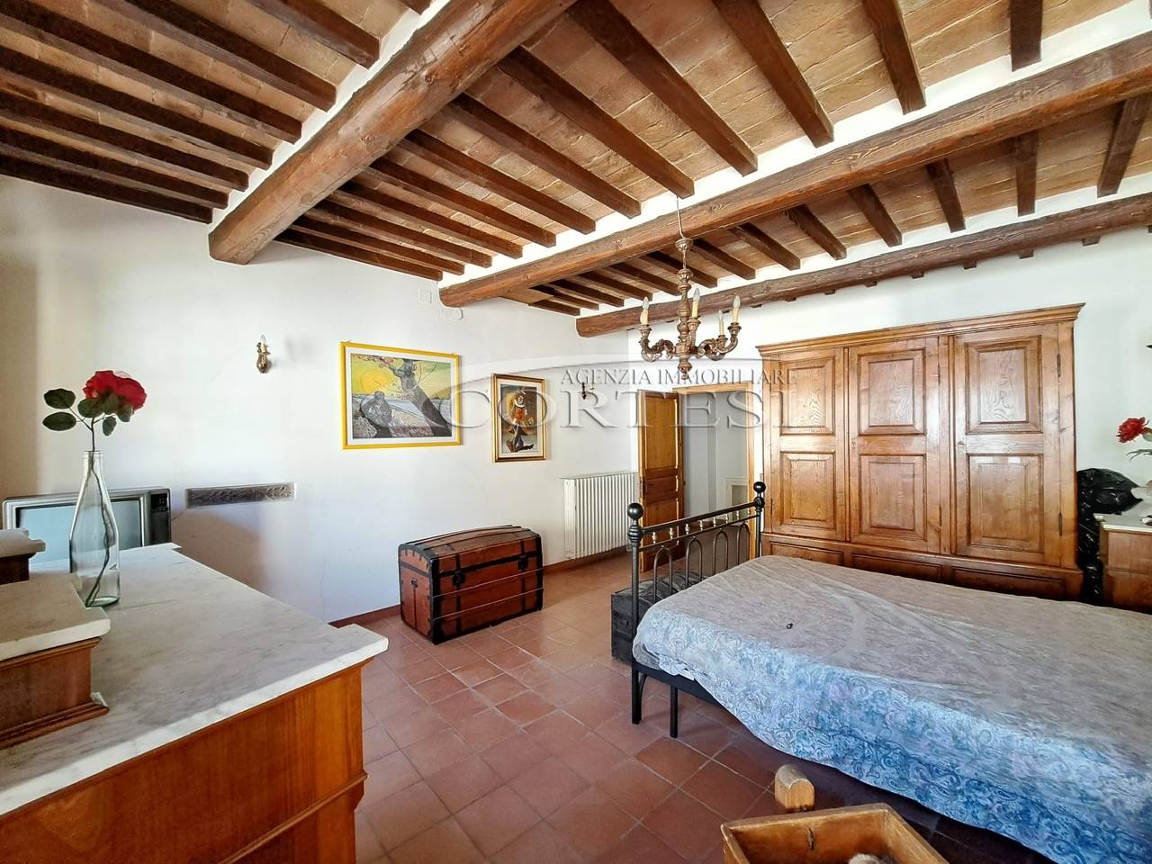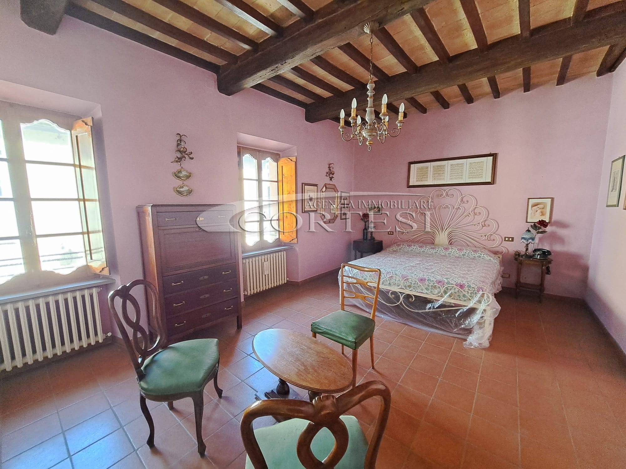 In palazzo storico, appartamento signorile di mq 240 posto a piano primo, con ingresso indipendente, composto da: cortile privato con pozzo da cui si accede alla taverna a piano terra, ingresso, soggiorno con camino, cucina abitabile con sala da pranzo, ampio salone, due camere matrimoniali padronali, ampio bagno con vasca francese freestanding, secondo bagno con doccia, ripostiglio con lavanderia a piano primo oltre a ampio studio con camino e con accesso a terrazza con vista panoramica a 360° su Città di Castello. Mansarda collegata internamente con camera matrimoniale, bagno, ripostiglio oltre a terrazza.