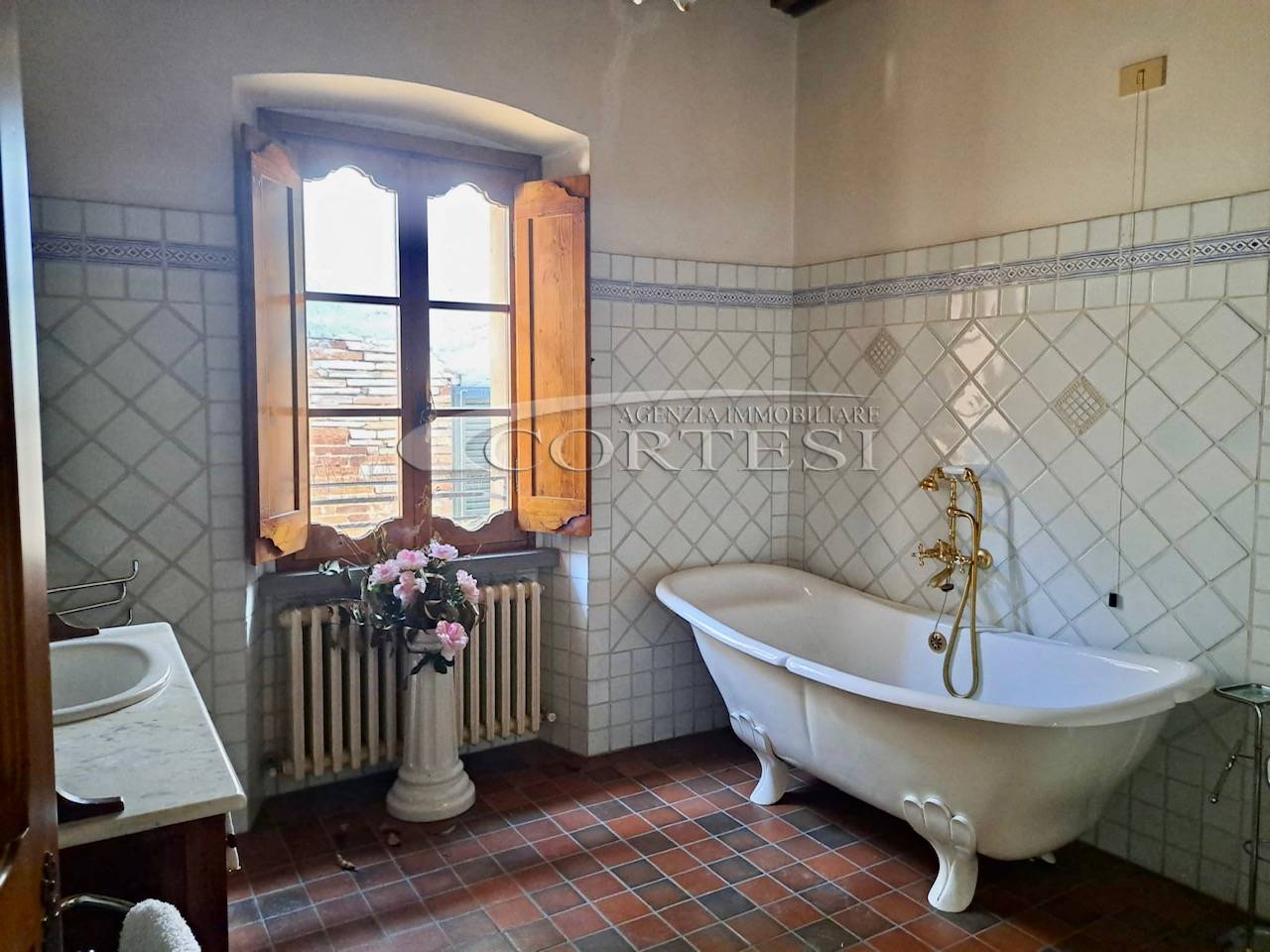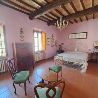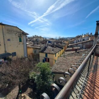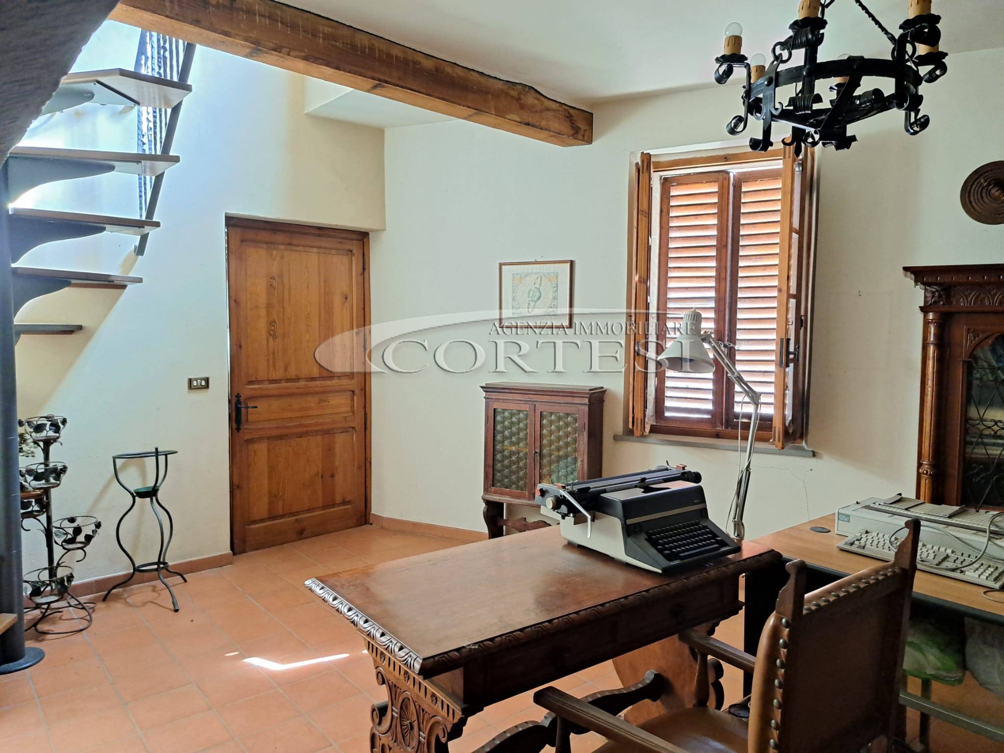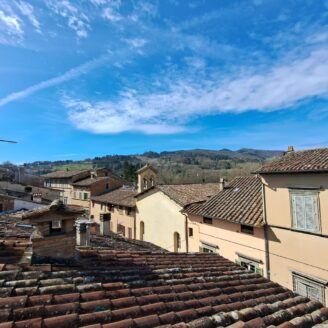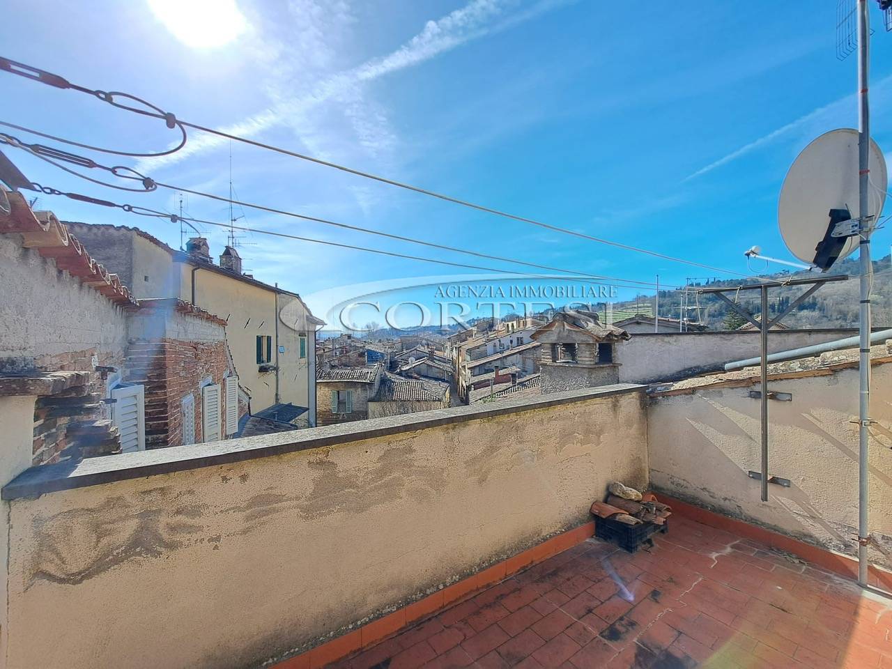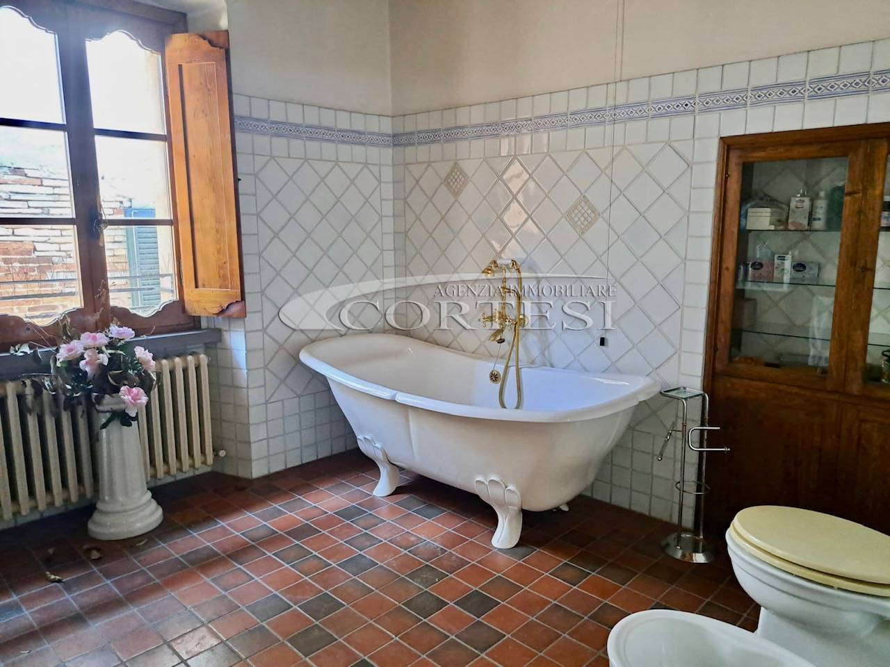 In palazzo storico, appartamento signorile di mq 240 posto a piano primo, con ingresso indipendente, composto da: cortile privato con pozzo da cui si accede alla taverna a piano terra, ingresso, soggiorno con camino, cucina abitabile con sala da pranzo, ampio salone, due camere matrimoniali padronali, ampio bagno con vasca francese freestanding, secondo bagno con doccia, ripostiglio con lavanderia a piano primo oltre a ampio studio con camino e con accesso a terrazza con vista panoramica a 360° su Città di Castello. Mansarda collegata internamente con camera matrimoniale, bagno, ripostiglio oltre a terrazza.