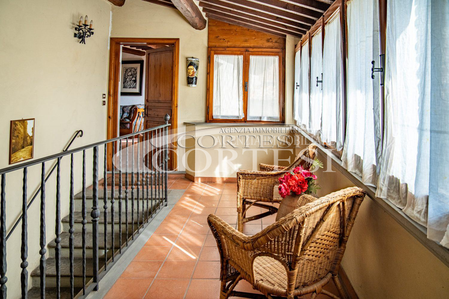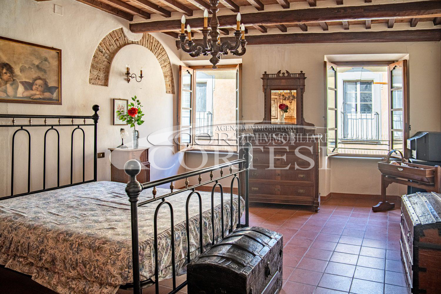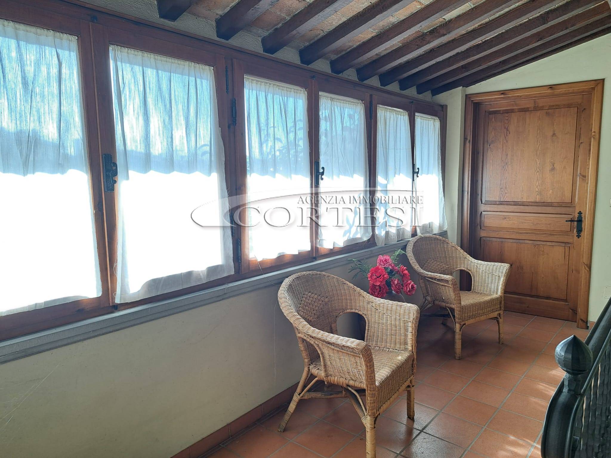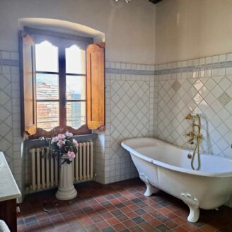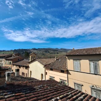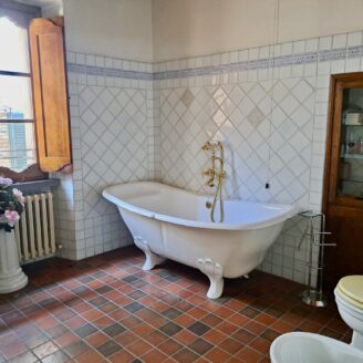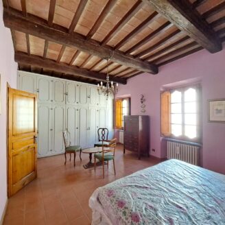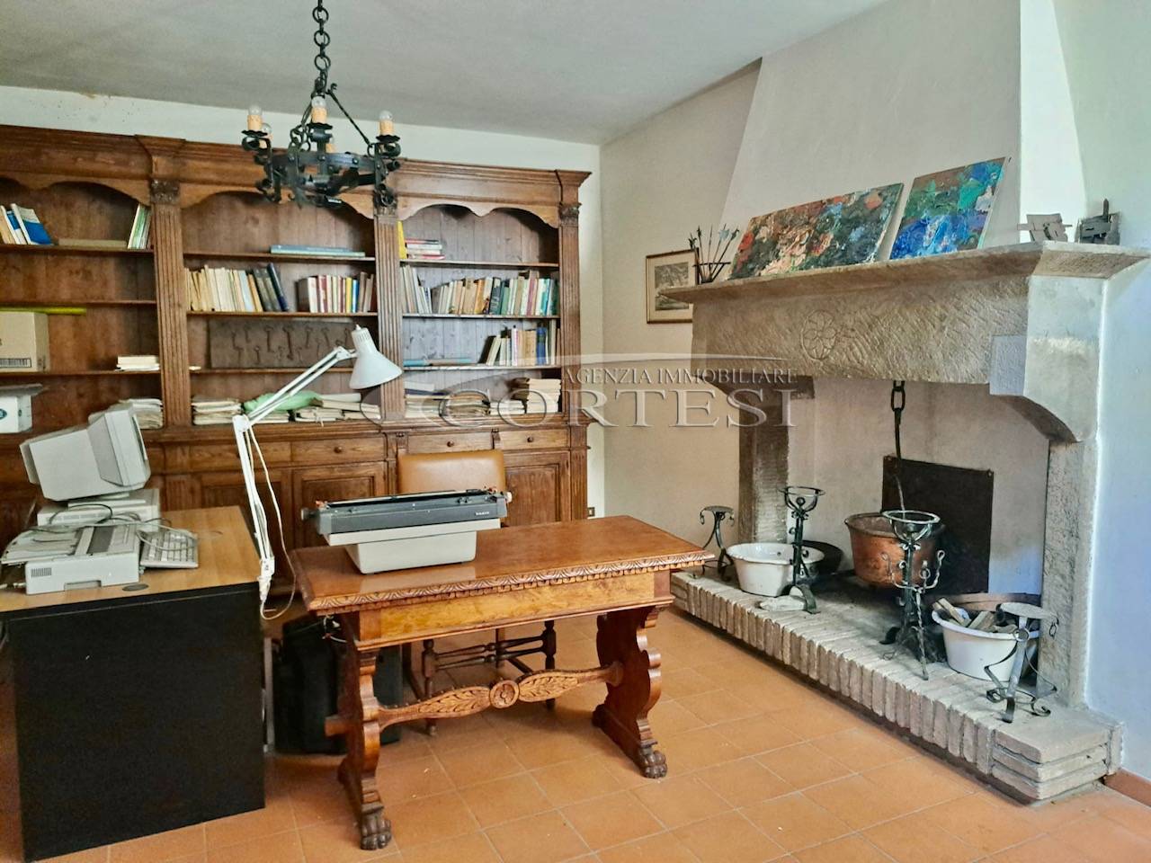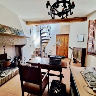 In palazzo storico, appartamento signorile di mq 240 posto a piano primo, con ingresso indipendente, composto da: cortile privato con pozzo da cui si accede alla taverna a piano terra, ingresso, soggiorno con camino, cucina abitabile con sala da pranzo, ampio salone, due camere matrimoniali padronali, ampio bagno con vasca francese freestanding, secondo bagno con doccia, ripostiglio con lavanderia a piano primo oltre a ampio studio con camino e con accesso a terrazza con vista panoramica a 360° su Città di Castello. Mansarda collegata internamente con camera matrimoniale, bagno, ripostiglio oltre a terrazza.