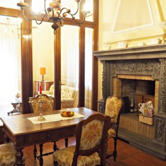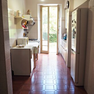 L’appartamento è composto da: cucina abitabile, sala da pranzo con camino, ampio soggiorno, quattro camere da letto (di cui tre matrimoniali), studio, ripostiglio e due bagni finestrati – uno con vasca e l’altro con doccia. Presenti anche due balconi e tre ampi terrazzi, perfetti per godersi momenti all’aperto con affaccio sul giardino condominiale.