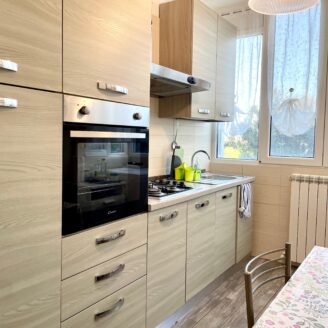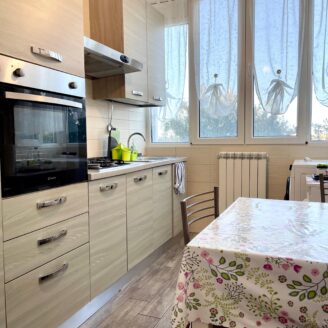 L’appartamento è stato recentemente ristrutturato internamente e si presenta in ottime condizioni, pronto per essere abitato senza necessità di interventi. L’ingresso si apre su un accogliente soggiorno, affiancato da una cucina abitabile separata. La zona notte comprende due camere da letto spaziose, entrambe con accesso a un terrazzo chiuso, ideale come spazio aggiuntivo versatile e sfruttabile in ogni stagione. Completa la proprietà un comodo posto auto coperto situato al piano sottostante la palazzina.