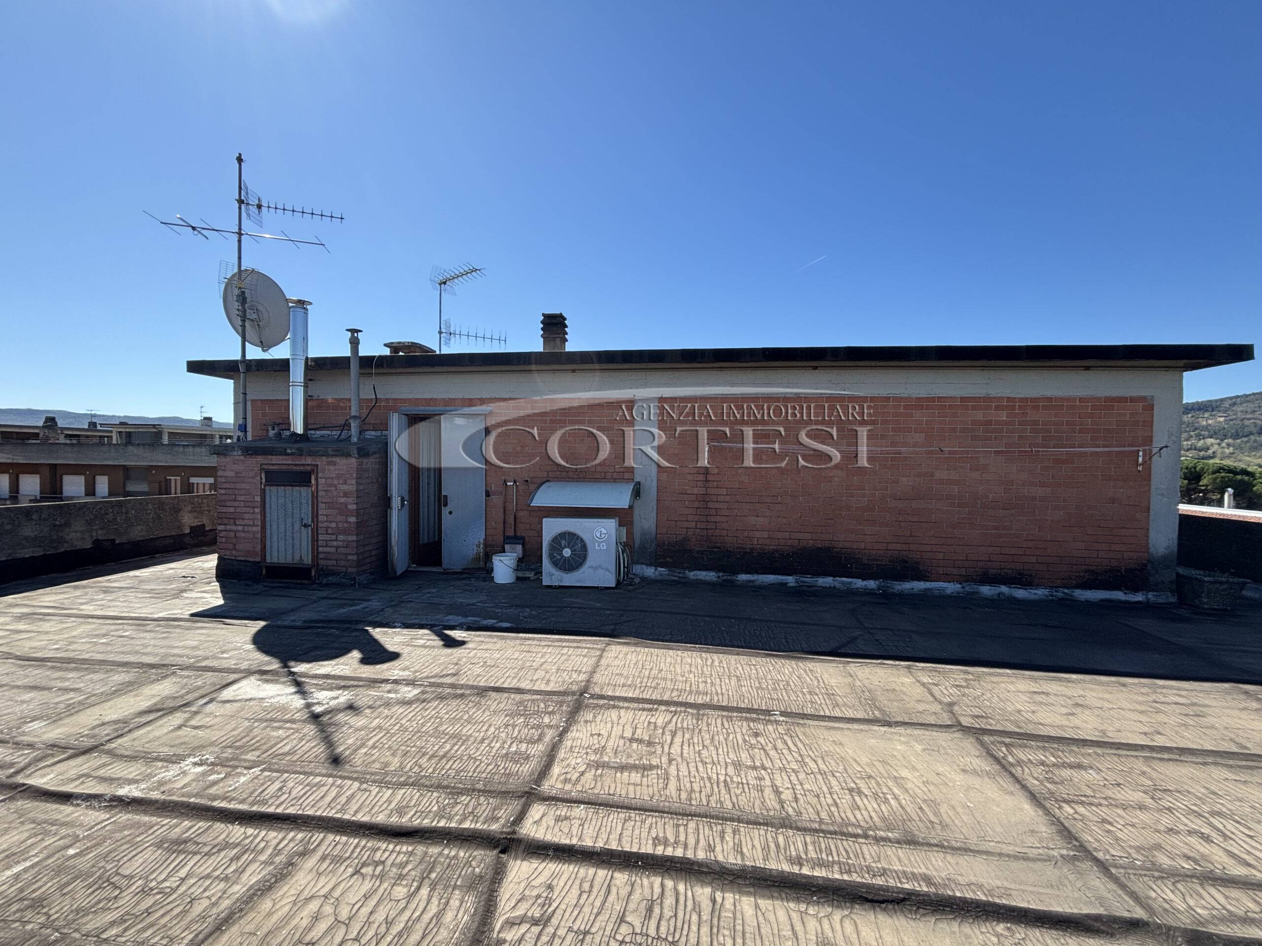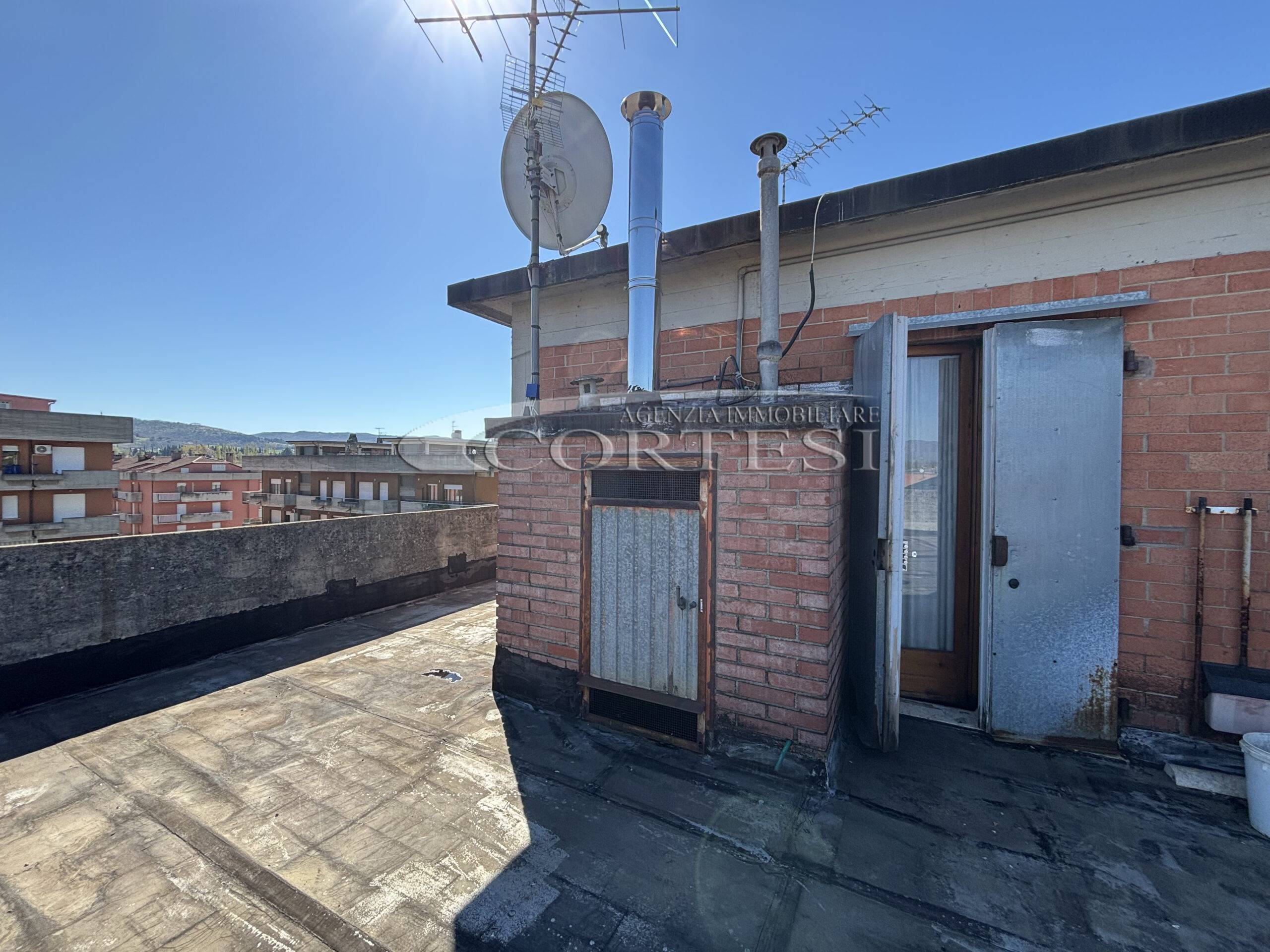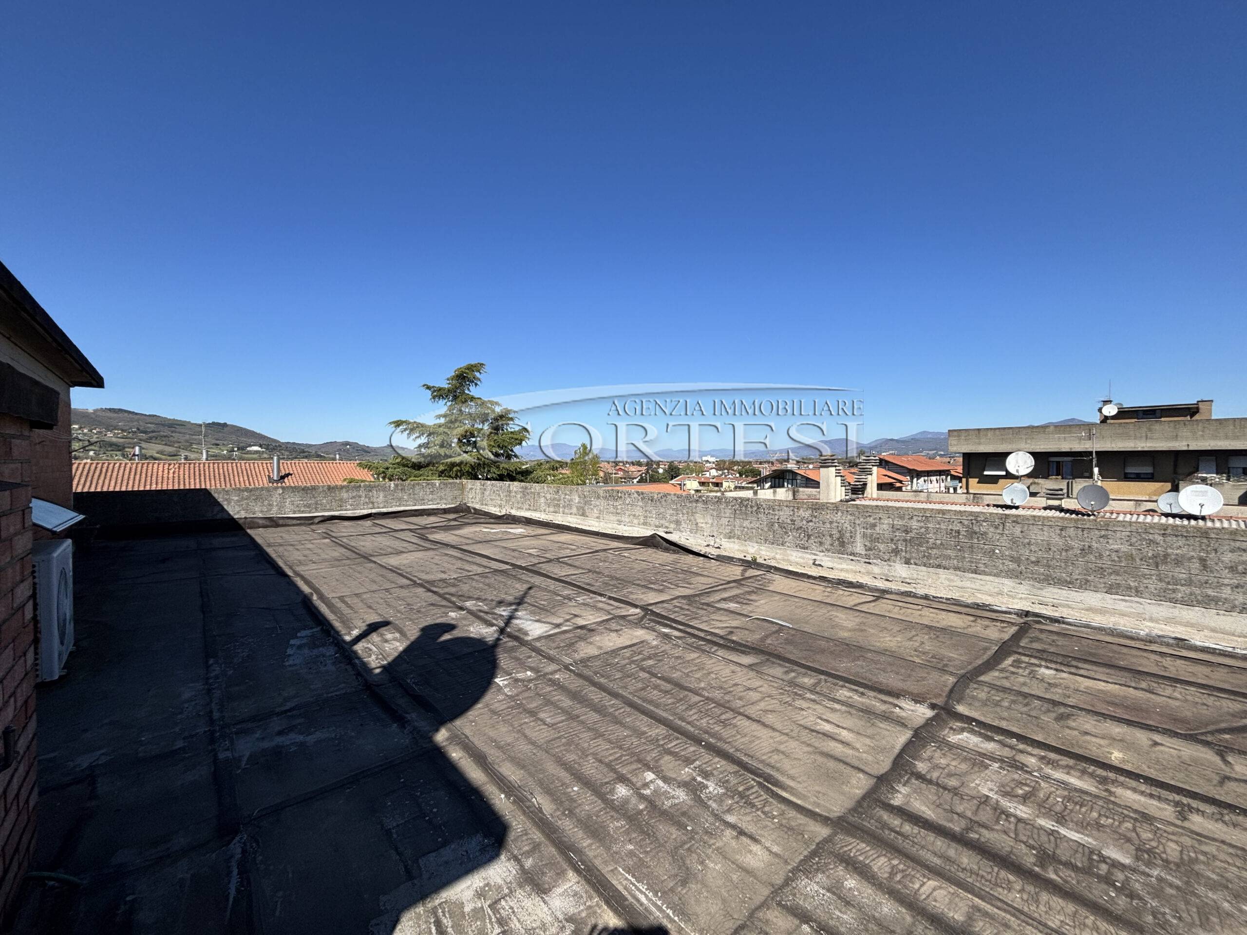 Collegato da scala a chiocciola, il piano superiore dispone di disimpegno, secondo bagno e accesso a uno splendido terrazzo/lastrico solare panoramico privato.