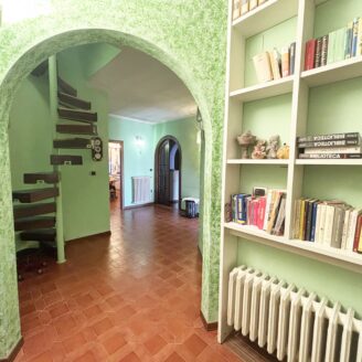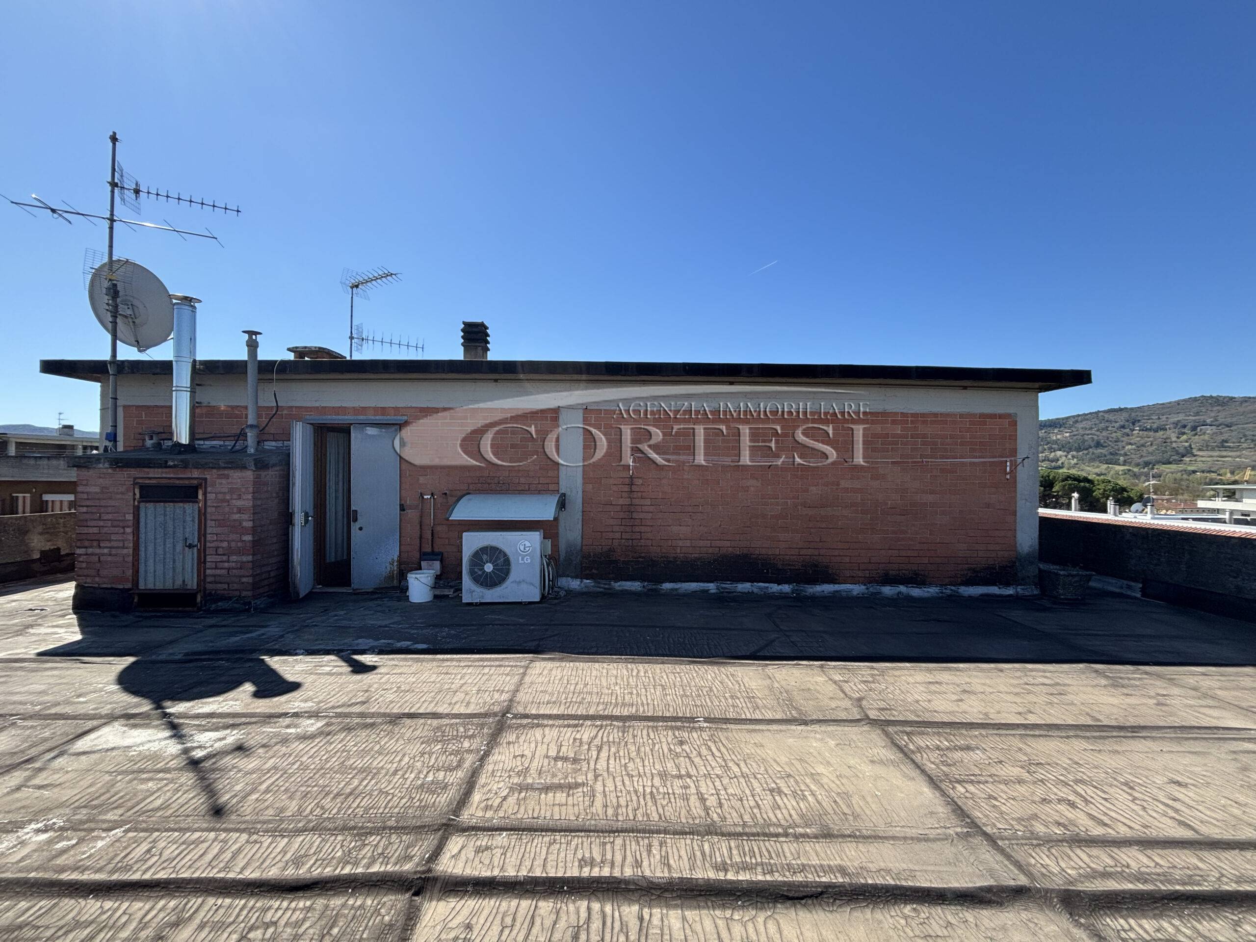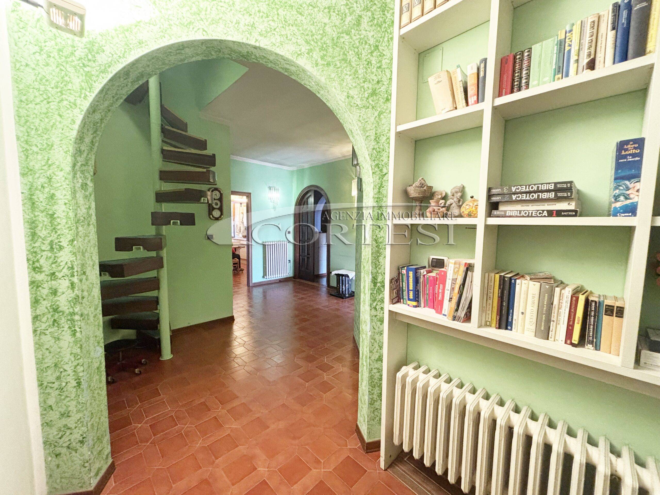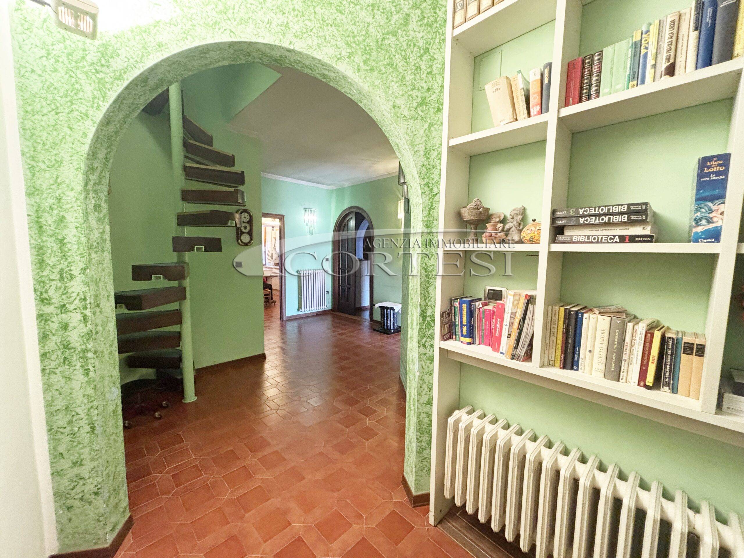 Collegato da scala a chiocciola, il piano superiore dispone di disimpegno, secondo bagno e accesso a uno splendido terrazzo/lastrico solare panoramico privato.