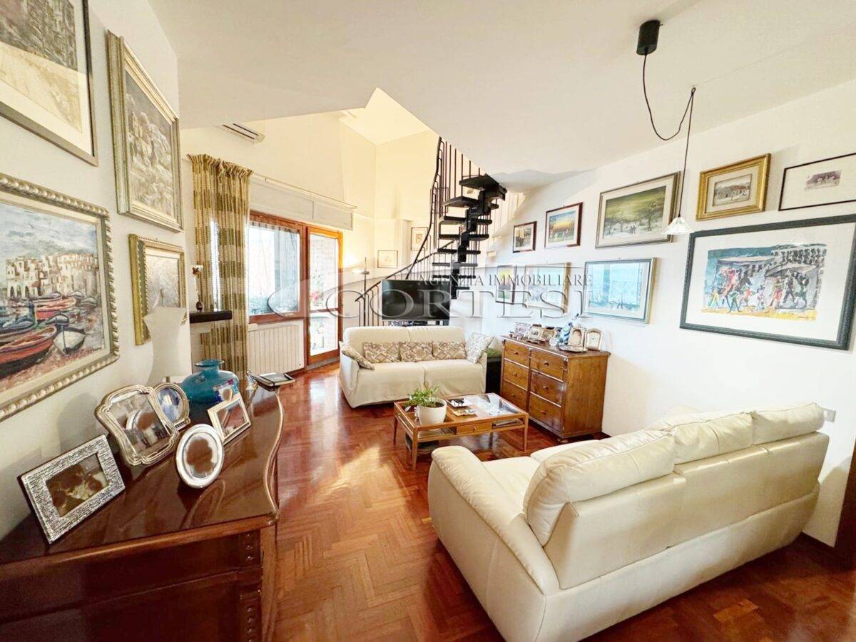 Proponiamo in vendita esclusivo attico luminoso ed elegante di circa 126 mq, situato al decimo ed ultimo piano di un edificio servito da ascensore, con libera esposizione su tre lati che garantisce luce naturale durante tutto l’arco della giornata.