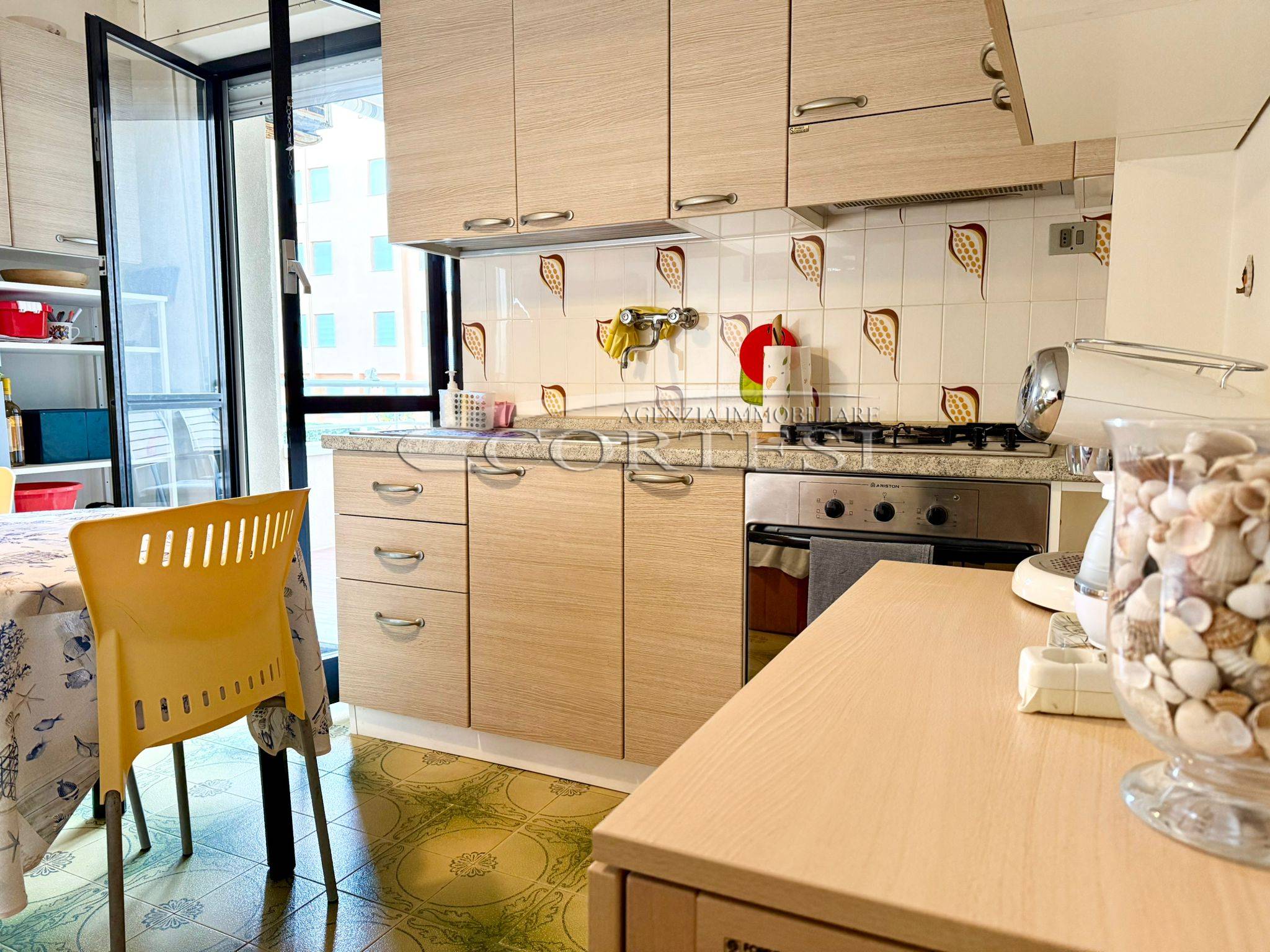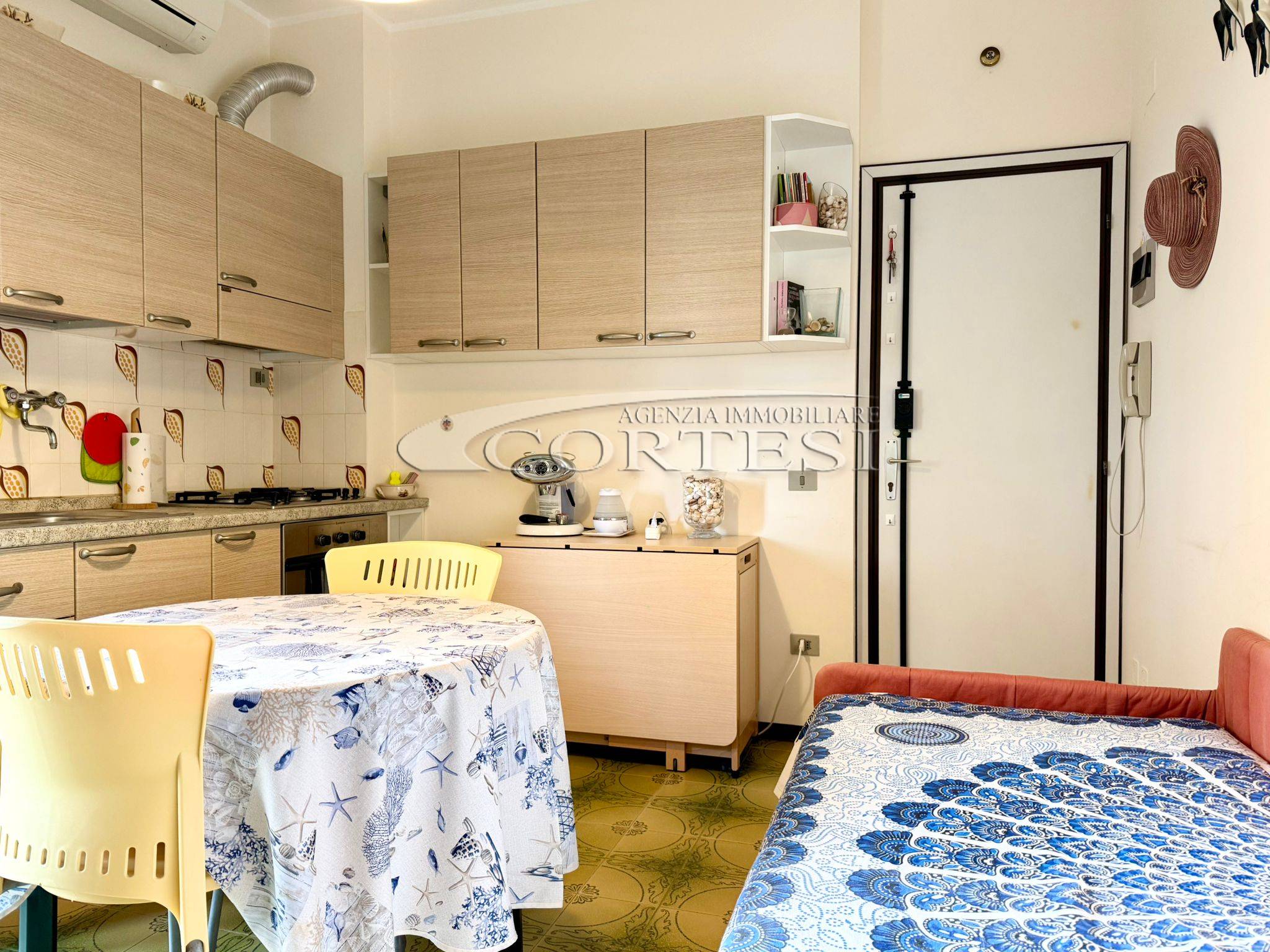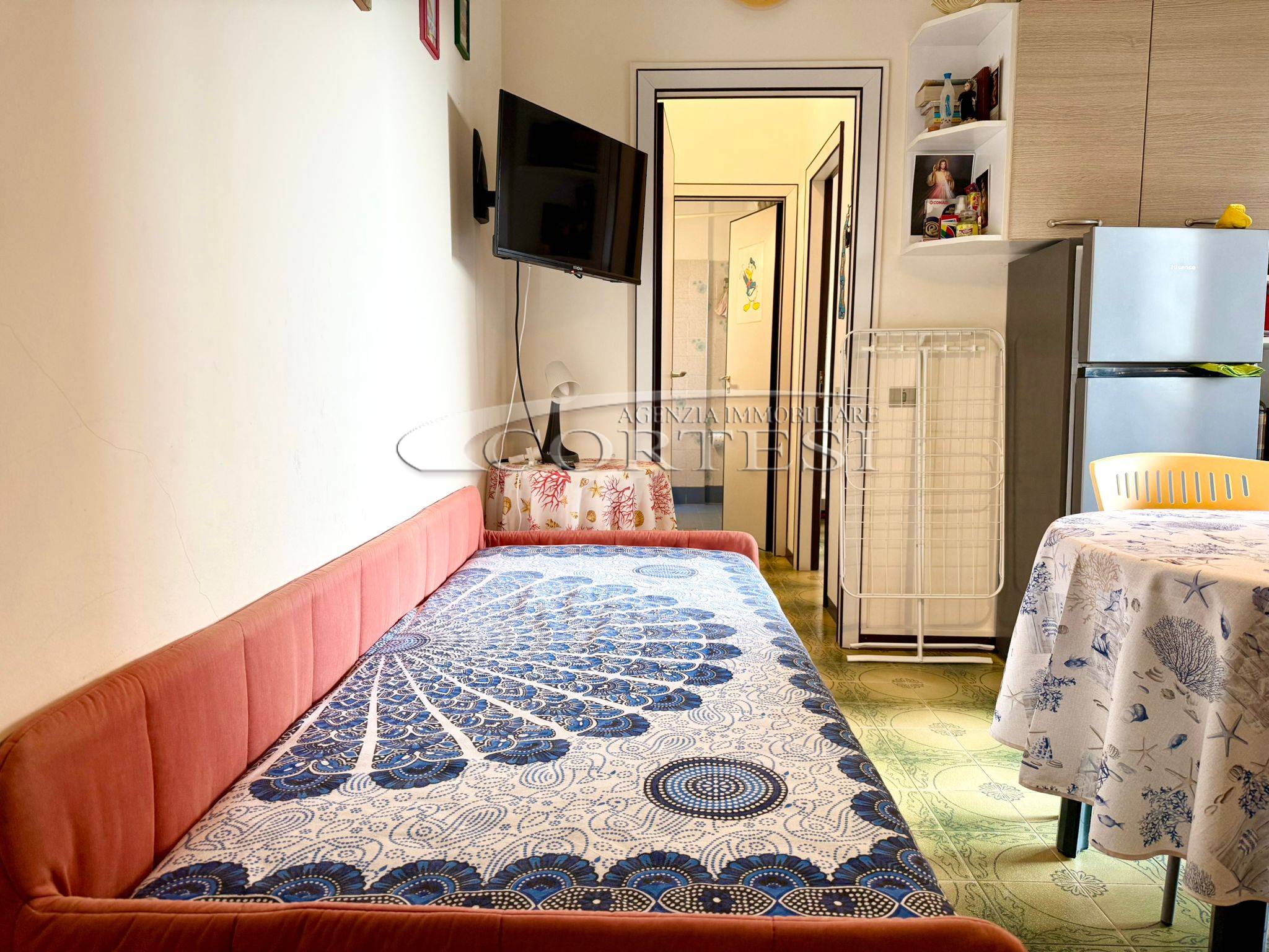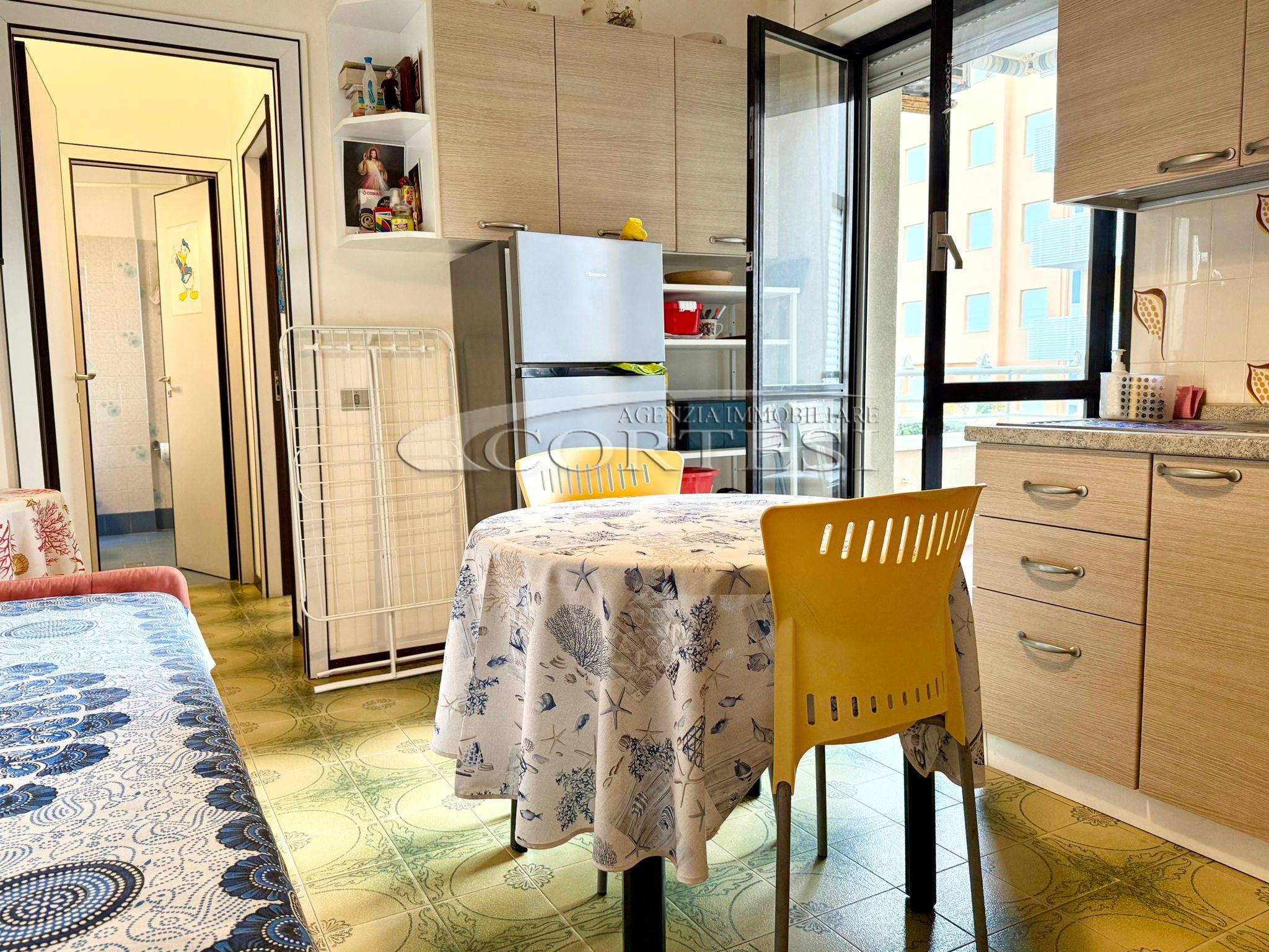 Appartamento posto al primo piano di una palazzina servita da ascensore, ristrutturata esternamente nel 2019, con lavori già deliberati per il rifacimento del piazzale interno. L’immobile è composto da ingresso su soggiorno con angolo cottura, con accesso diretto a un ampio terrazzo vista mare, ideale per momenti di relax. Completano la proprietà un piccolo spazio lavanderia, una camera da letto e un bagno finestrato con doccia. A completare l’appartamento posto auto scoperto riservato, cantina e accesso diretto alla spiaggia attraverso il giardino condominiale.