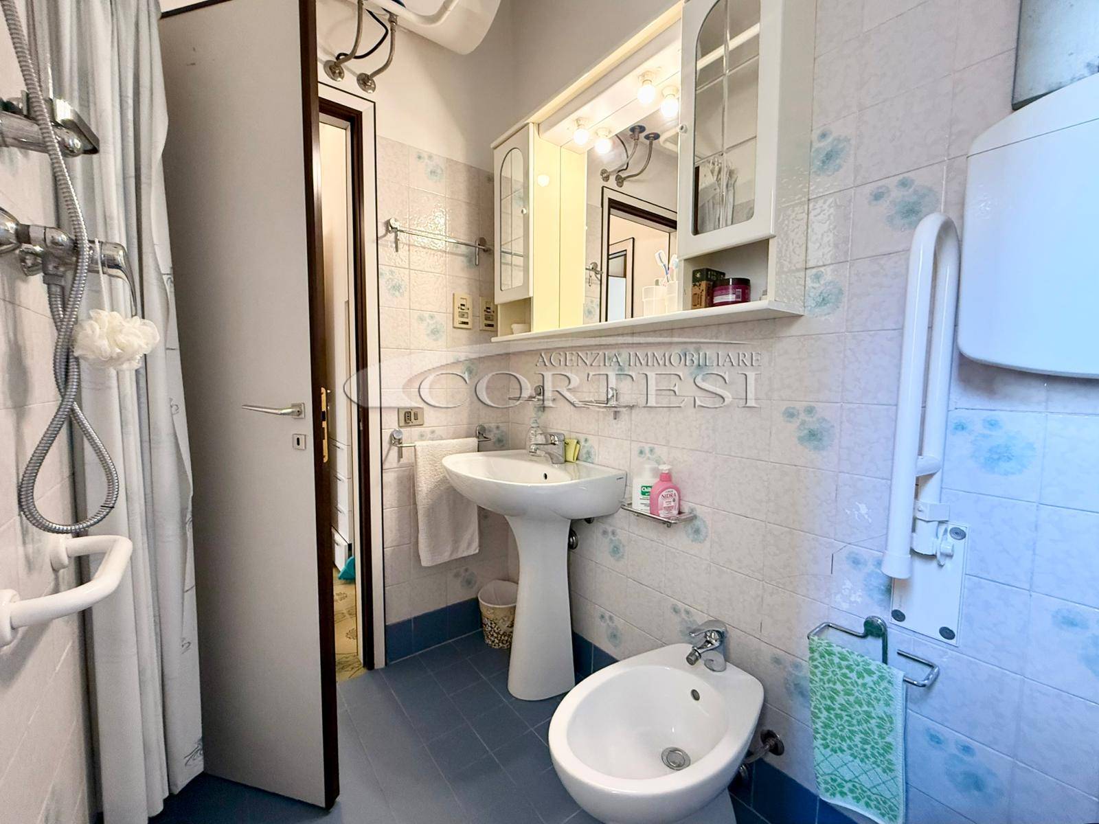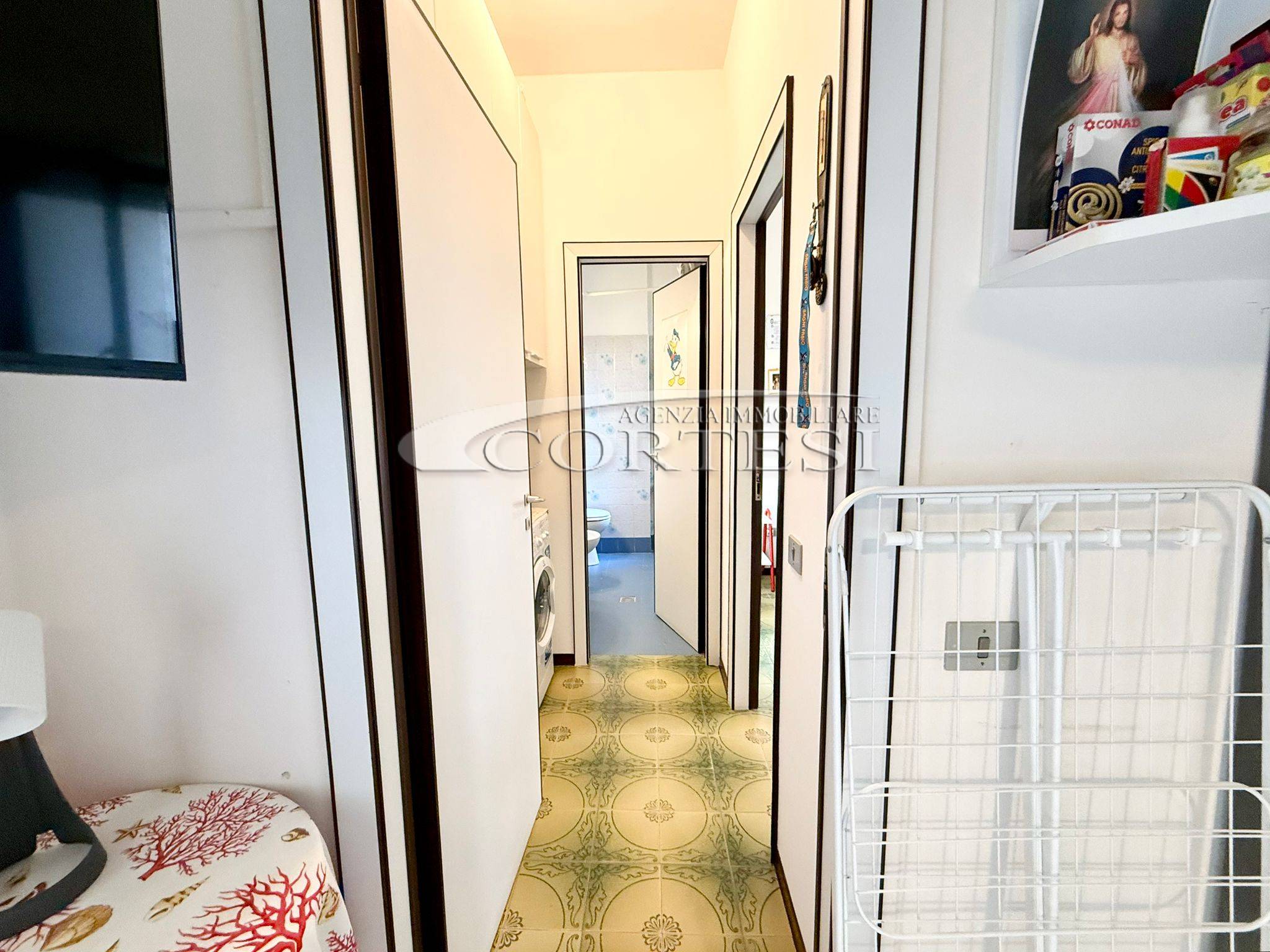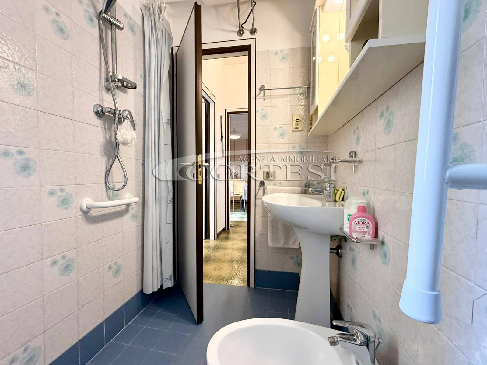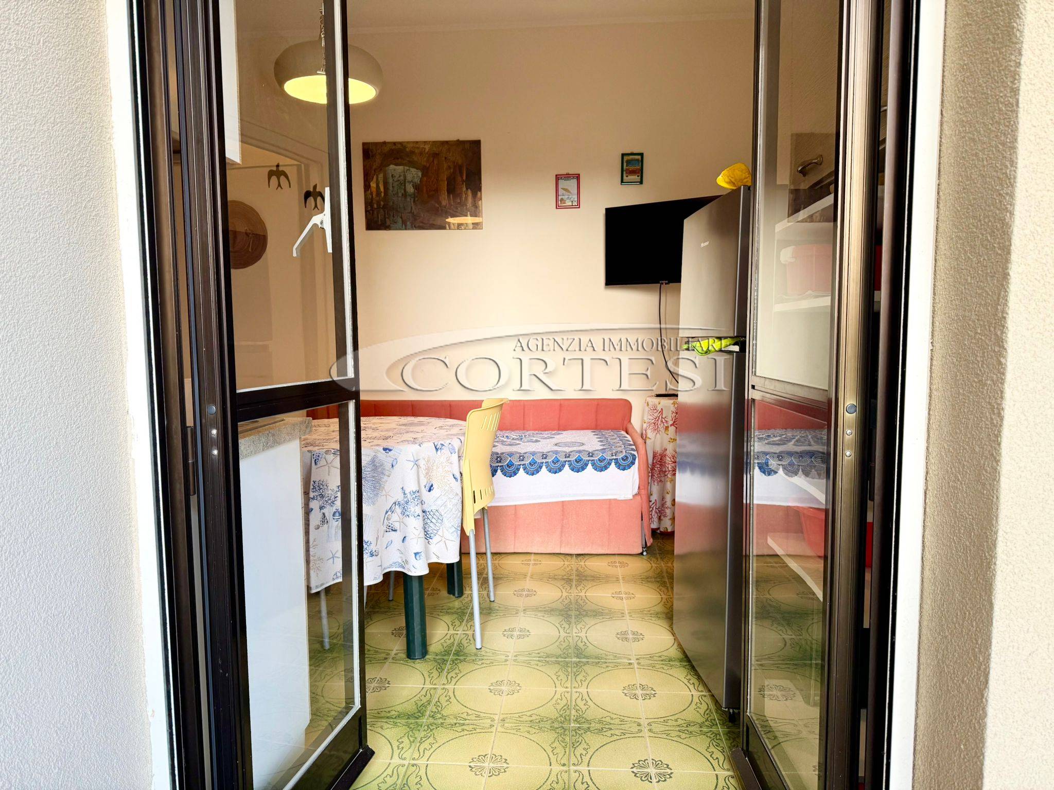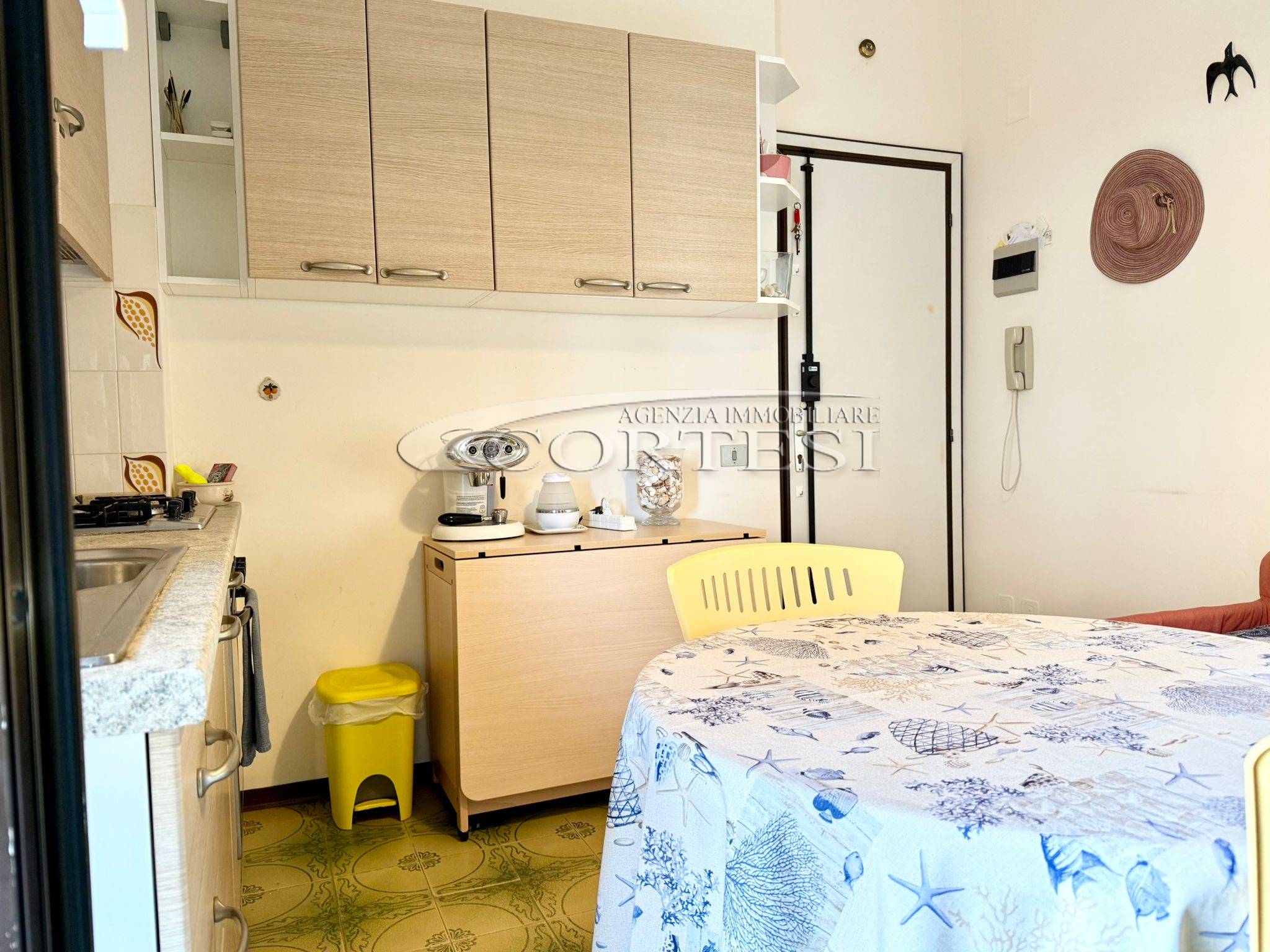 Appartamento posto al primo piano di una palazzina servita da ascensore, ristrutturata esternamente nel 2019, con lavori già deliberati per il rifacimento del piazzale interno. L’immobile è composto da ingresso su soggiorno con angolo cottura, con accesso diretto a un ampio terrazzo vista mare, ideale per momenti di relax. Completano la proprietà un piccolo spazio lavanderia, una camera da letto e un bagno finestrato con doccia. A completare l’appartamento posto auto scoperto riservato, cantina e accesso diretto alla spiaggia attraverso il giardino condominiale.