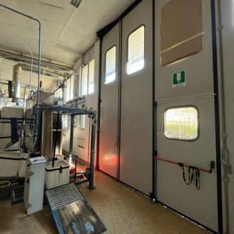 L’immobile è completo di impianto elettrico sezionato, climatizzazione con sensori di umidità e ricircolo d’aria, impianto automatizzato di ricambio aria, aria compressa sezionata, videosorveglianza, illuminazione esterna e impianto antincendio con rilevazione fumi, cisterna di accumulo, anello estintori e due pozzi antincendio.