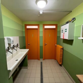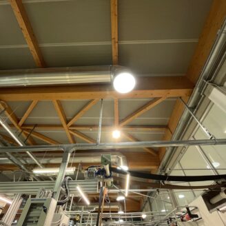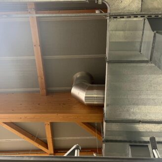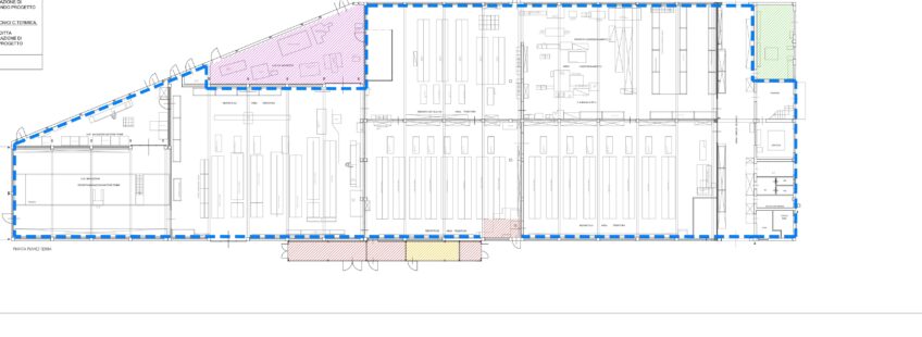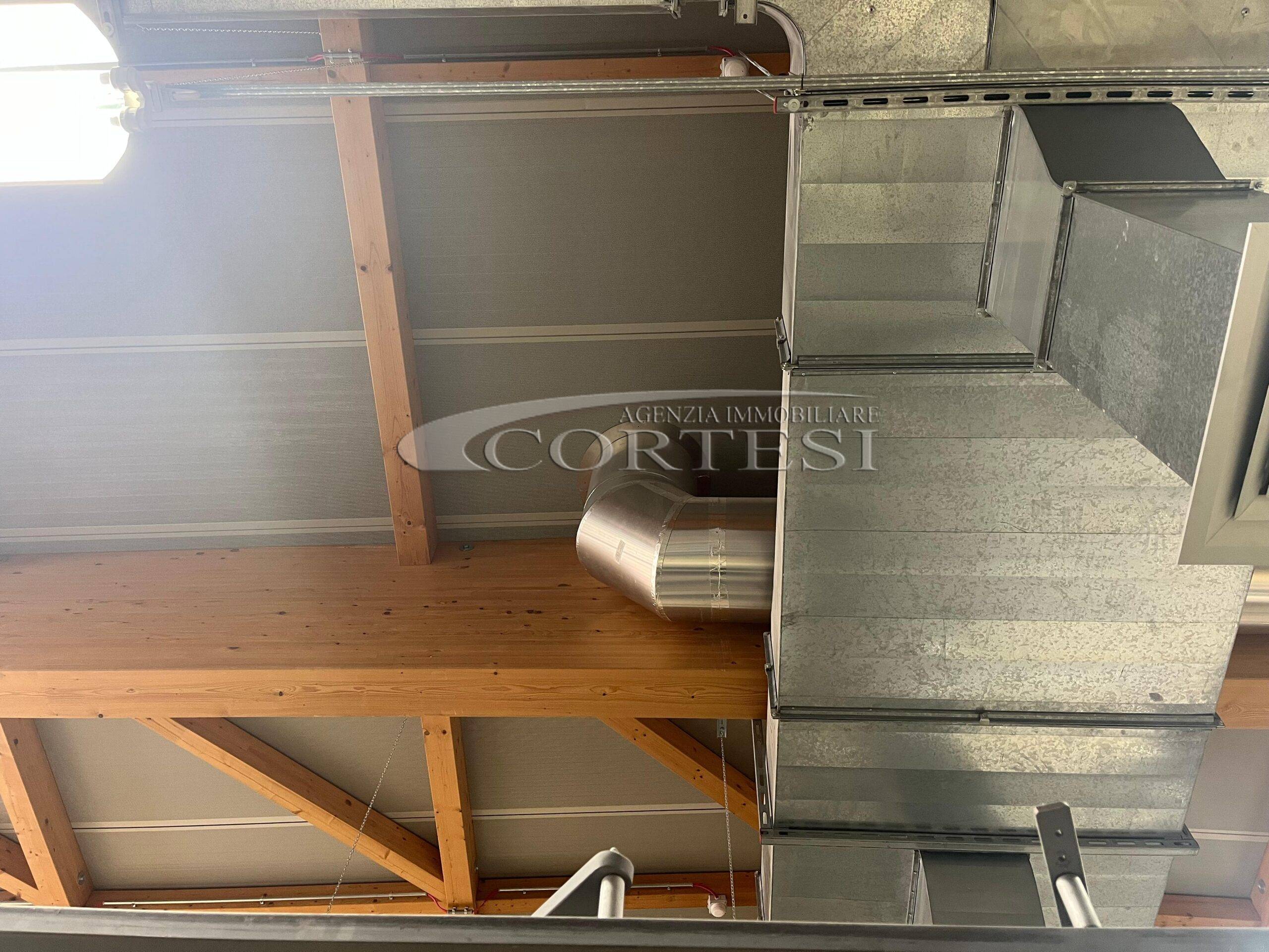 La zona produzione, di circa 2.500 mq, è naturalmente illuminata tramite 19 camini solari, che assicurano un’eccellente diffusione della luce nei reparti; in questa area sono presenti due servizi igienici con antibagno. La copertura, realizzata nell’ambito del restauro del 2019, con struttura in legno REI 60, pannelli coibentati con 20 cm di lana di roccia e intradosso fonoassorbente, garantisce un ottimo isolamento termico e un abbattimento acustico fino a circa 36 dB. Il tetto è calpestabile, dotato di linee vita e facilmente manutenibile.