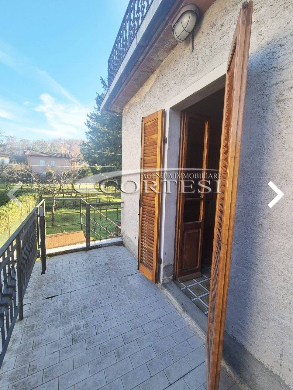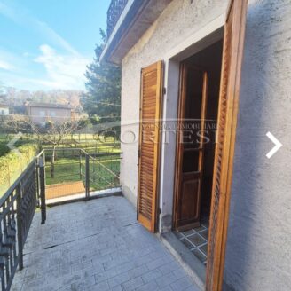Salendo al piano primo si accede all’abitazione principale di circa 90 mq , dove si apre una luminosa zona giorno composta da un ampio soggiorno con camino e accesso diretto al balcone che si affaccia sul fronte strada, la cucina, spaziosa e abitabile, è anch’essa servita da un terrazzo e dispone di accesso diretto al giardino, la zona notte comprende due grandi camere matrimoniali, entrambe con uscita su balcone , e un bagno.
