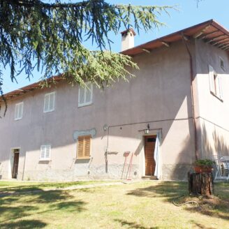 In posizione panoramica casa singola divisa attualmente in due appartamenti indipendenti: a piano primo appartamento composto da ingresso, ampio soggiorno con camino, cucina abitabile, tinello, quattro camere e due bagni; a piano terra appartamento composto da soggiorno con camino e angolo cottura, camera matrimoniale e bagno oltre a ampio garage ed ampi fondi.