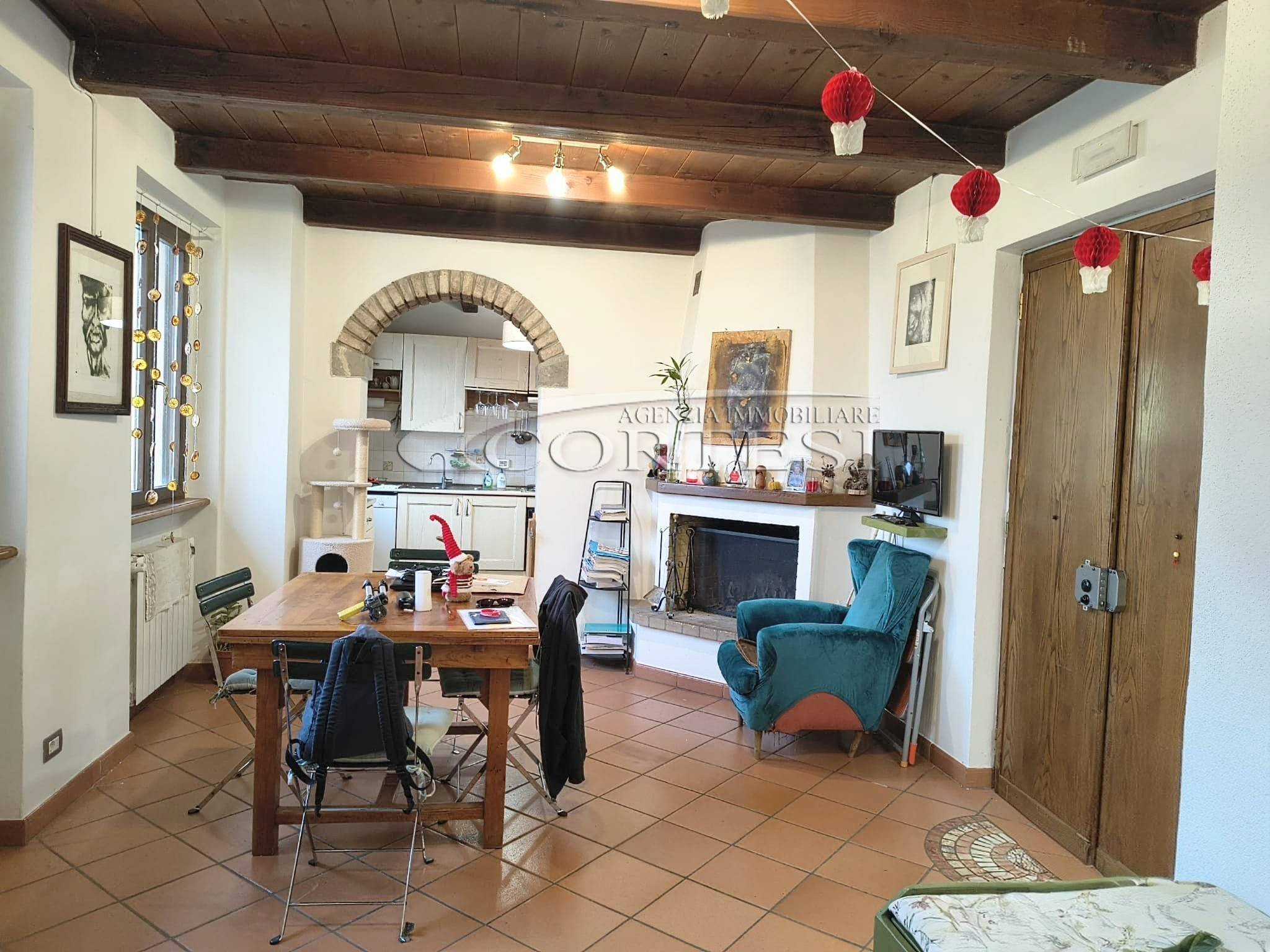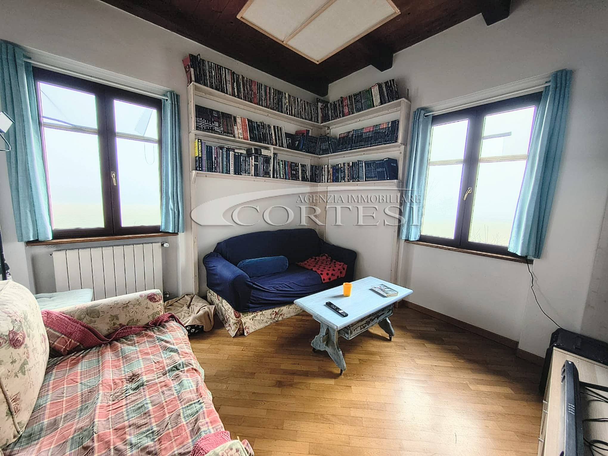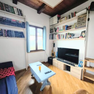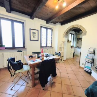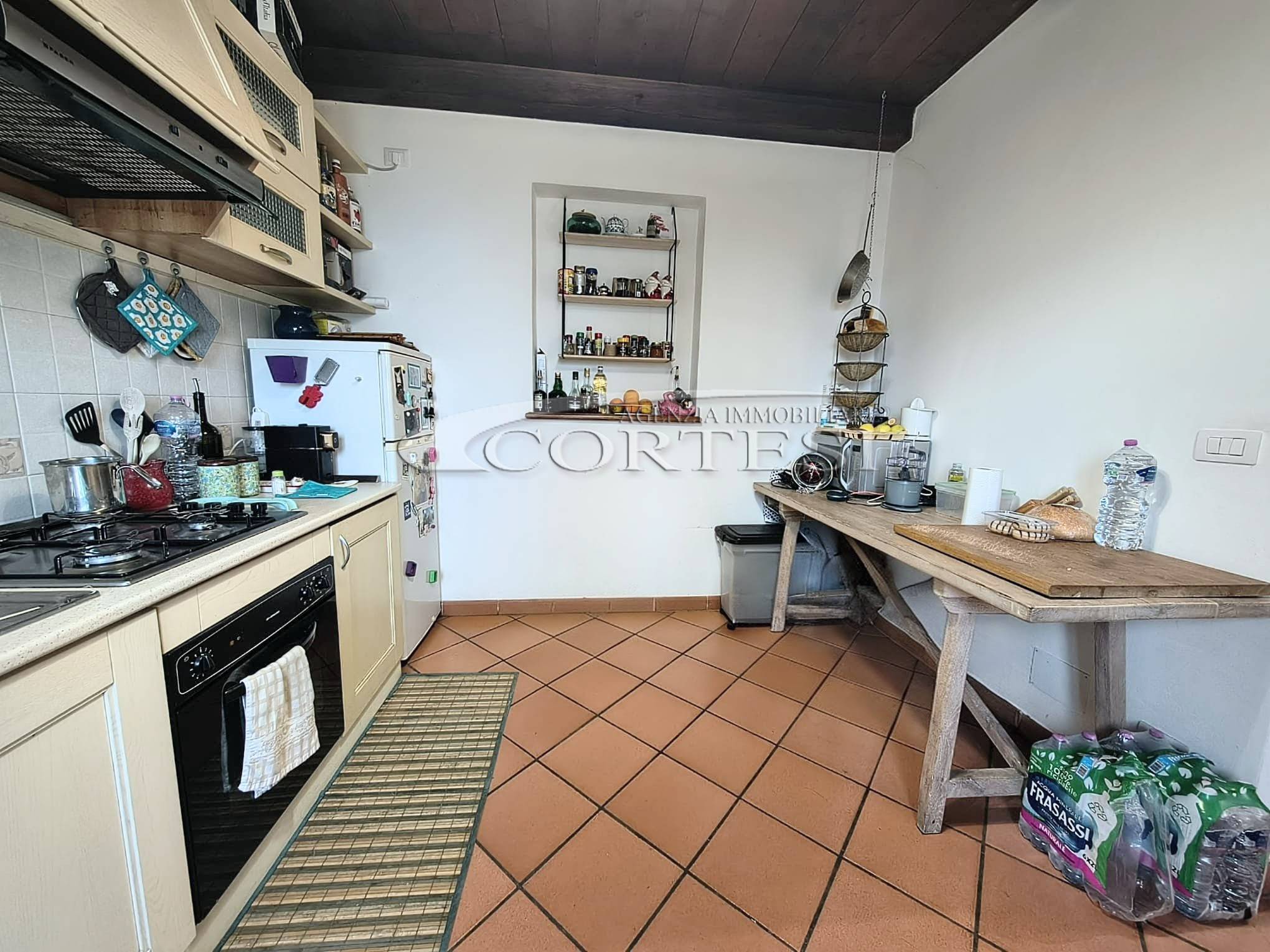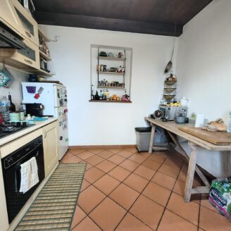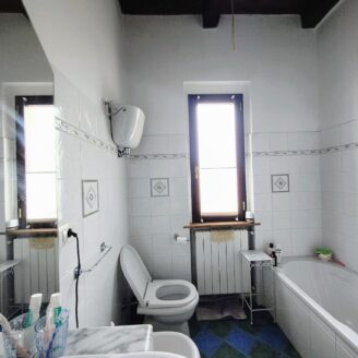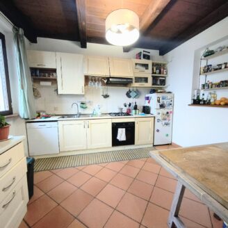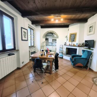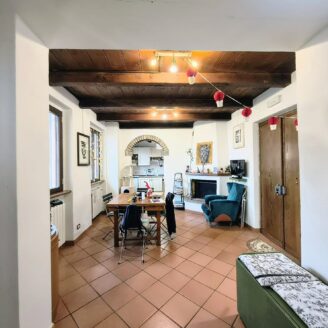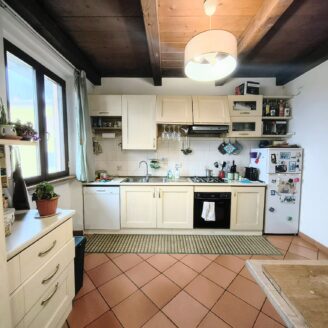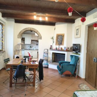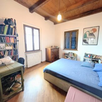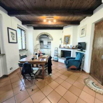 Al piano terra è presente un fondo di ampia metratura di mq 90 con possibilità di realizzare una taverna o locali accessori. L’abitazione si sviluppa su un unico livello al piano primo, accessibile tramite ingresso indipendente con scala privata. L’ingresso conduce al soggiorno con camino, collegato alla cucina abitabile tramite un arco. La zona notte è composta da due camere e una stanza attualmente utilizzata come cabina armadio oltre a due bagni. L’immobile è stato restaurato nel 2020 con rifacimento del tetto e della facciata e adeguamento alla normativa antisismica. Gli impianti elettrico e idraulico sono stati rifatti. Gli infissi sono dotati di doppi vetri e i soffitti interni dell’abitazione sono rivestiti in legno.