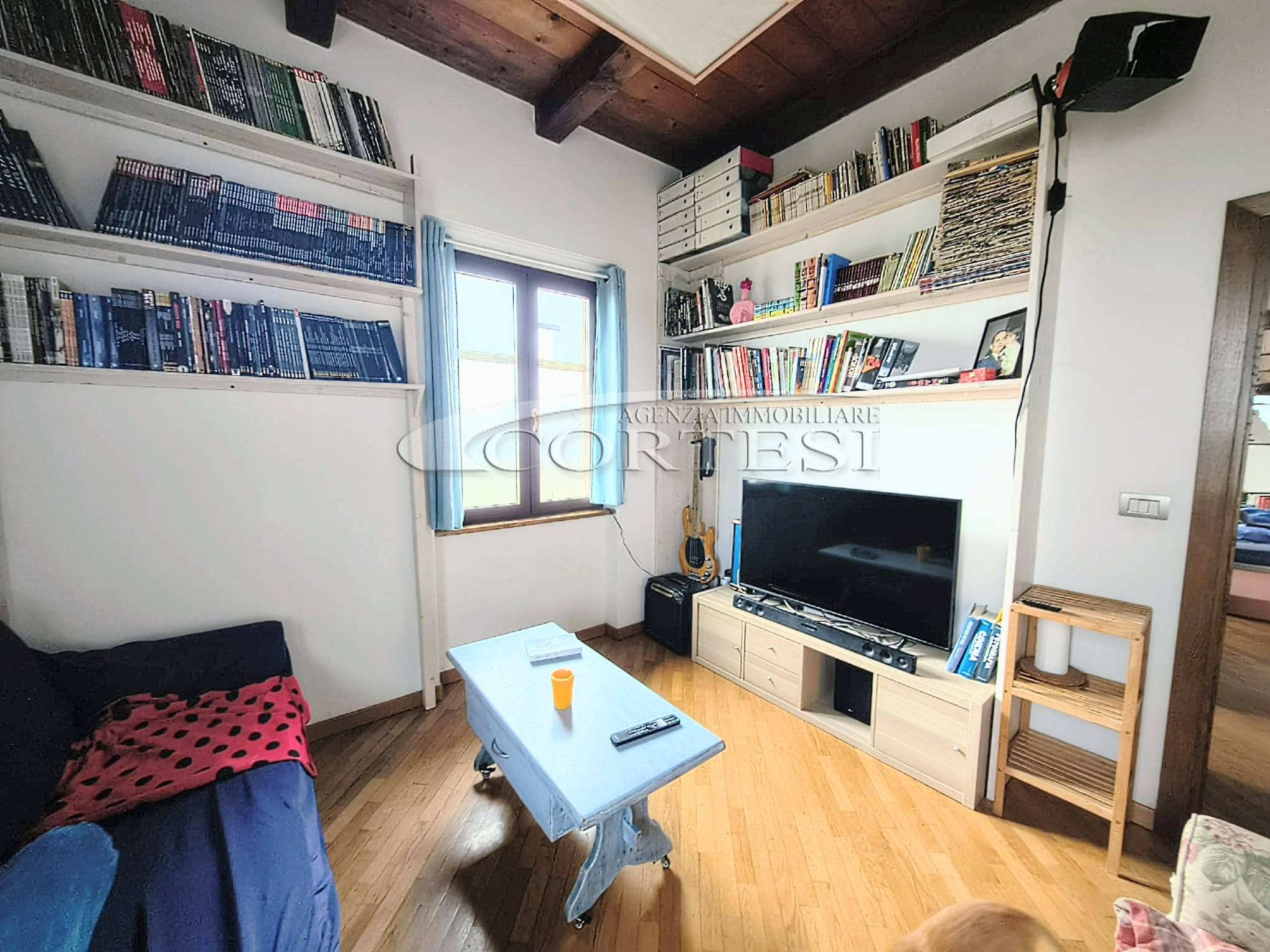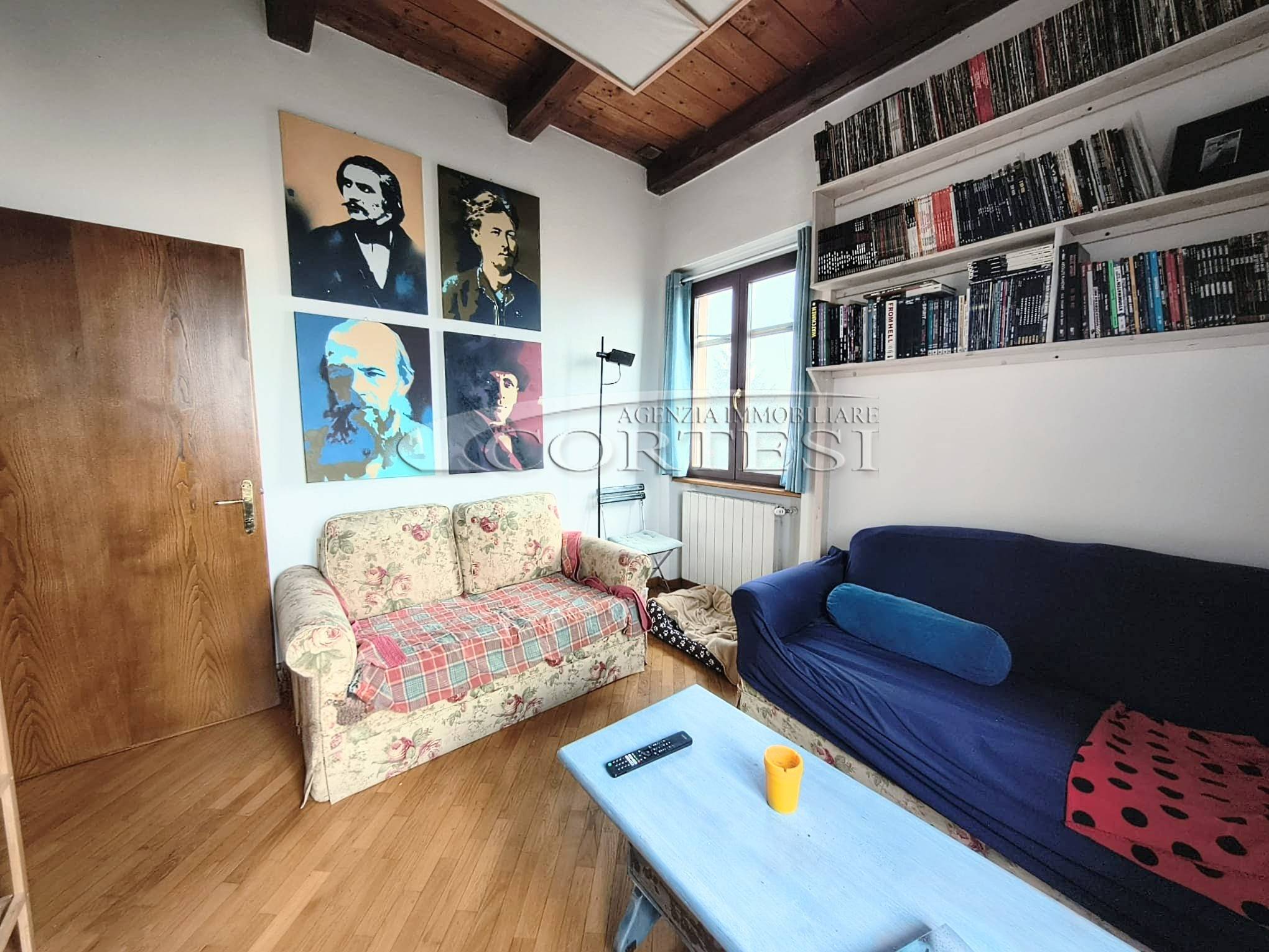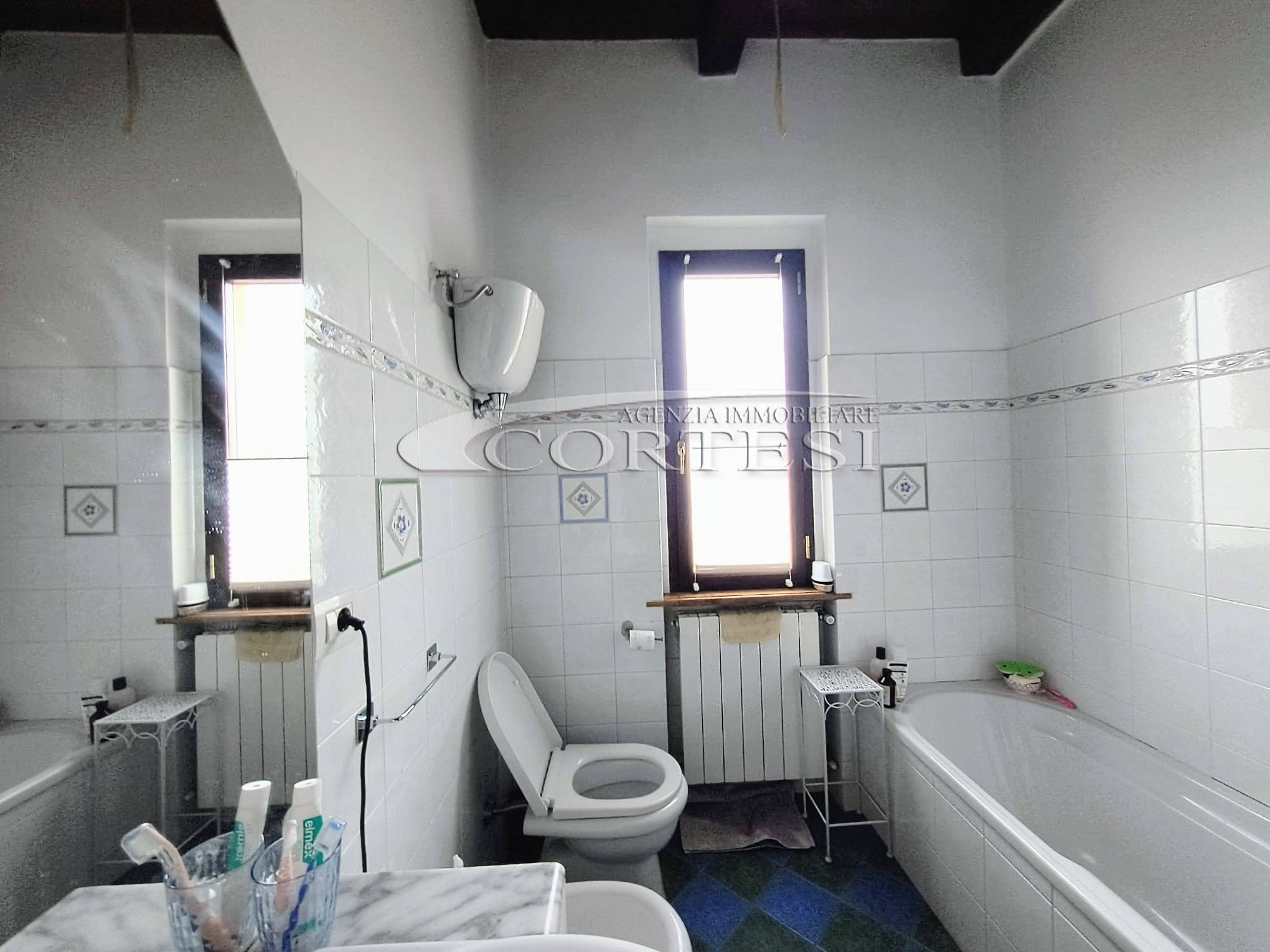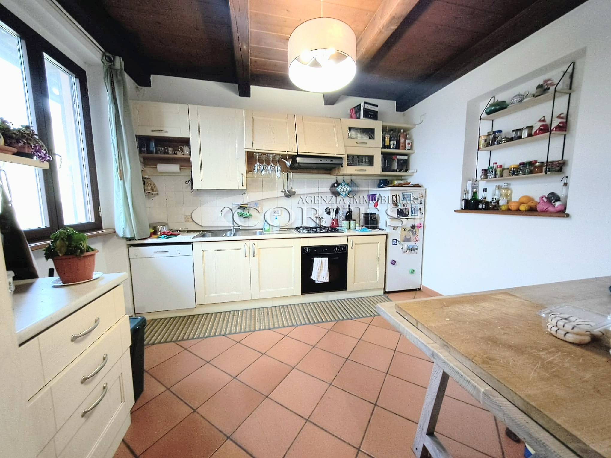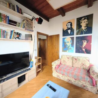 Al piano terra è presente un fondo di ampia metratura di mq 90 con possibilità di realizzare una taverna o locali accessori. L’abitazione si sviluppa su un unico livello al piano primo, accessibile tramite ingresso indipendente con scala privata. L’ingresso conduce al soggiorno con camino, collegato alla cucina abitabile tramite un arco. La zona notte è composta da due camere e una stanza attualmente utilizzata come cabina armadio oltre a due bagni. L’immobile è stato restaurato nel 2020 con rifacimento del tetto e della facciata e adeguamento alla normativa antisismica. Gli impianti elettrico e idraulico sono stati rifatti. Gli infissi sono dotati di doppi vetri e i soffitti interni dell’abitazione sono rivestiti in legno.