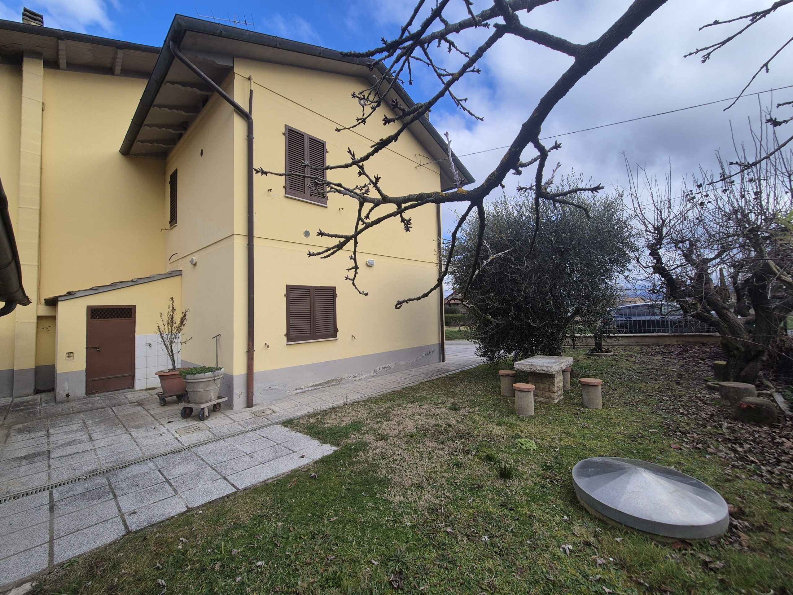 La proprietà è completata da fondi esterni e da un giardino che circonda l’intera abitazione, ideale per chi desidera privacy e tranquillità.