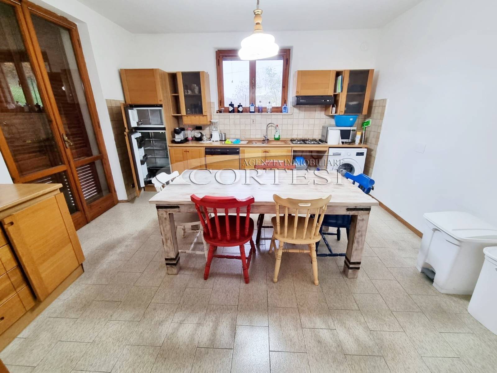L’ingresso avviene tramite un ampio porticato coperto che introduce alla luminosa zona giorno, composta da soggiorno con camino ventilato, un cucina abitabile con accesso a porticato coperto e un comodo ripostiglio, salendo al piano superiore troviamo la zona notte che dispone di due camere matrimoniali entrambe con terrazzo, un ampio disimpegno e un bagno con vasca e doccia.