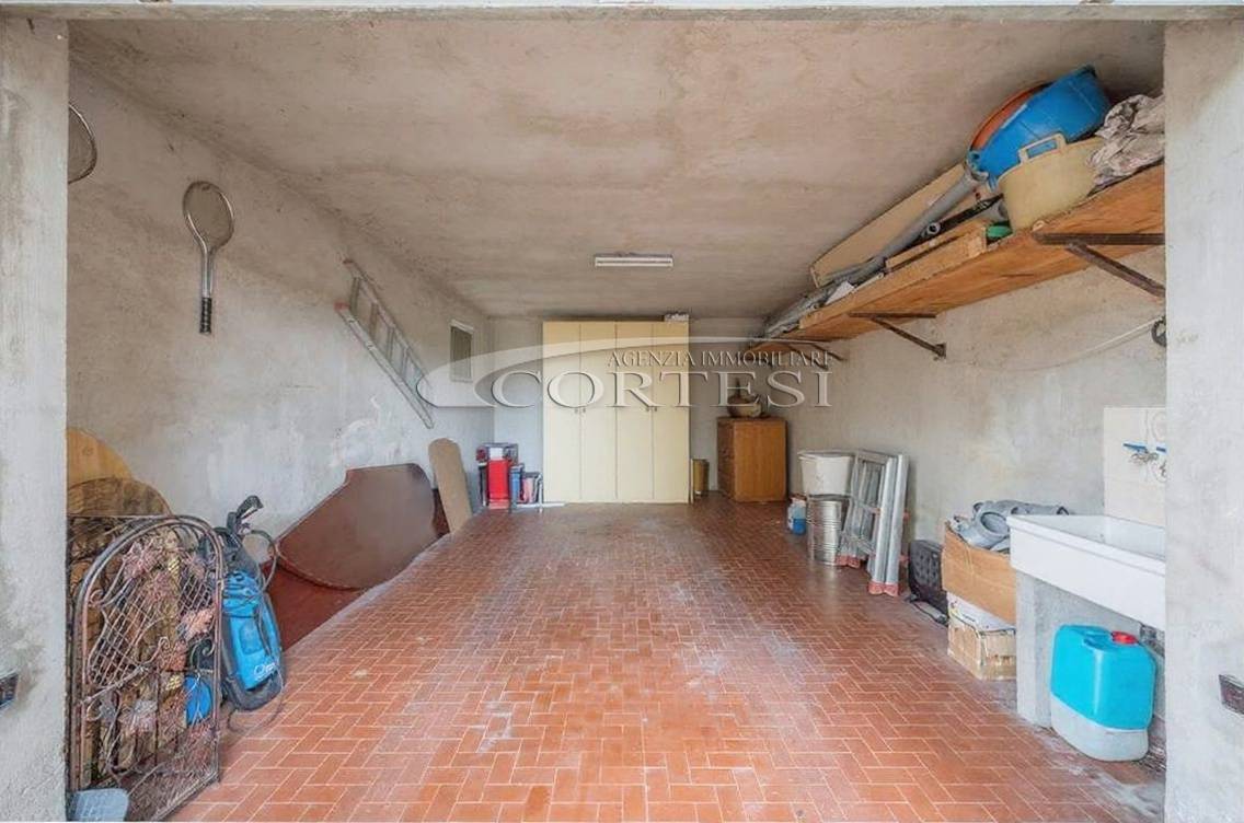 A completare la proprietà troviamo un garage di 60 mq e una corte esterna perimetrale che circonda l’abitazione. È inoltre disponibile, con possibilità di acquisto separato, un terreno edificabile adiacente di circa 900 mq con una volumetria pari a 260 mc.