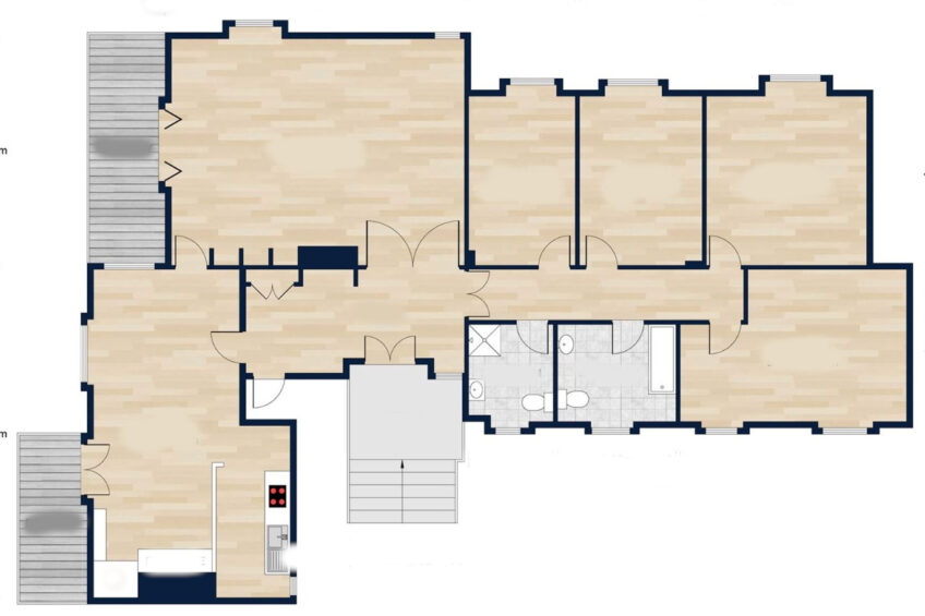 L’immobile è composto da ampio e luminoso soggiorno con camino, cucina abitabile anch’essa con camino, entrambi con accesso diretto al terrazzo.