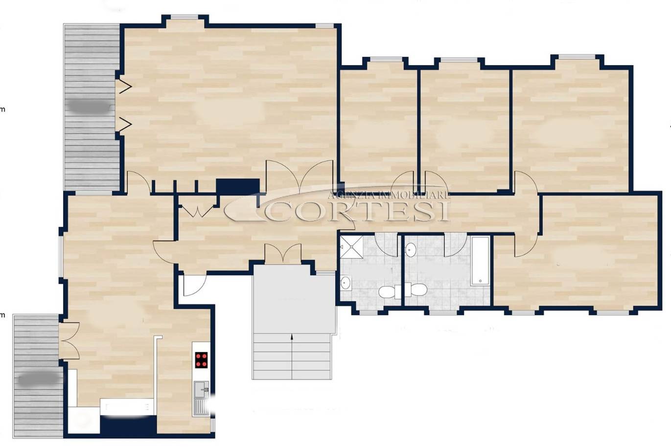 La zona notte comprende quattro ampie camere matrimoniali e due bagni finestrati.