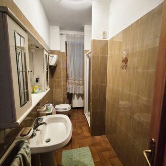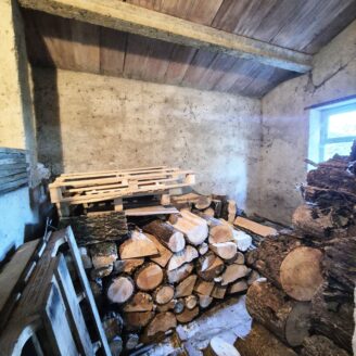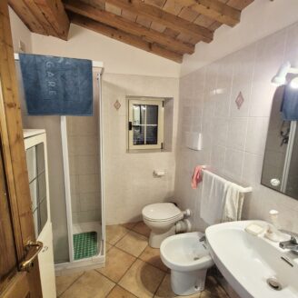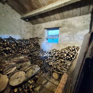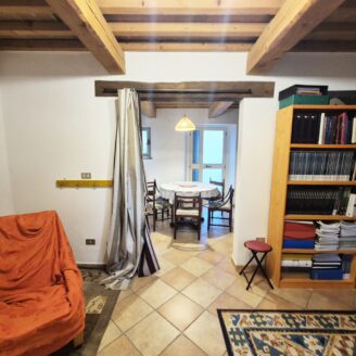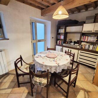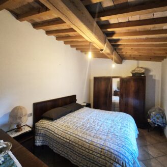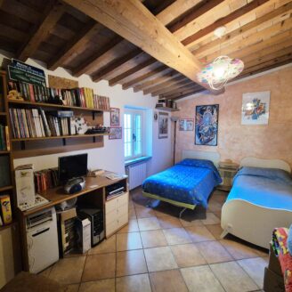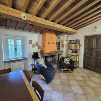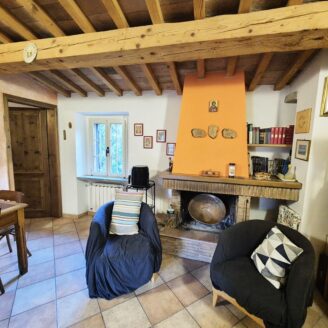La prima porzione, interamente in pietra, ospita al piano primo un accogliente appartamento composto da soggiorno con camino e cucina a vista, due camere matrimoniali e un bagno. Al piano terra si trovano una spaziosa taverna con cucina e camino, oltre a un fondo utile come magazzino o spazio multifunzionale.