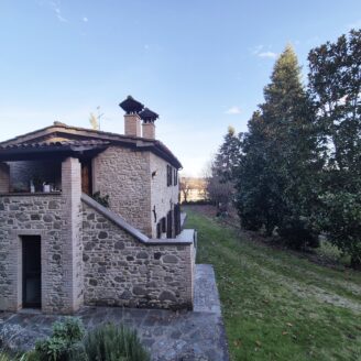 A completare la proprietà un grande giardino che circonda il casale, una rimessa esterna e terreni adiacenti per circa due ettari.