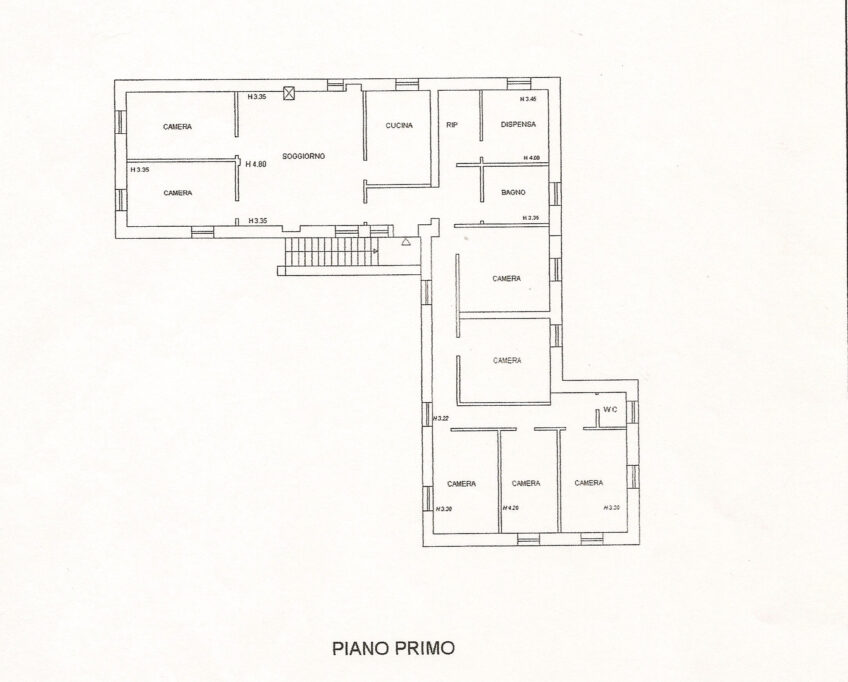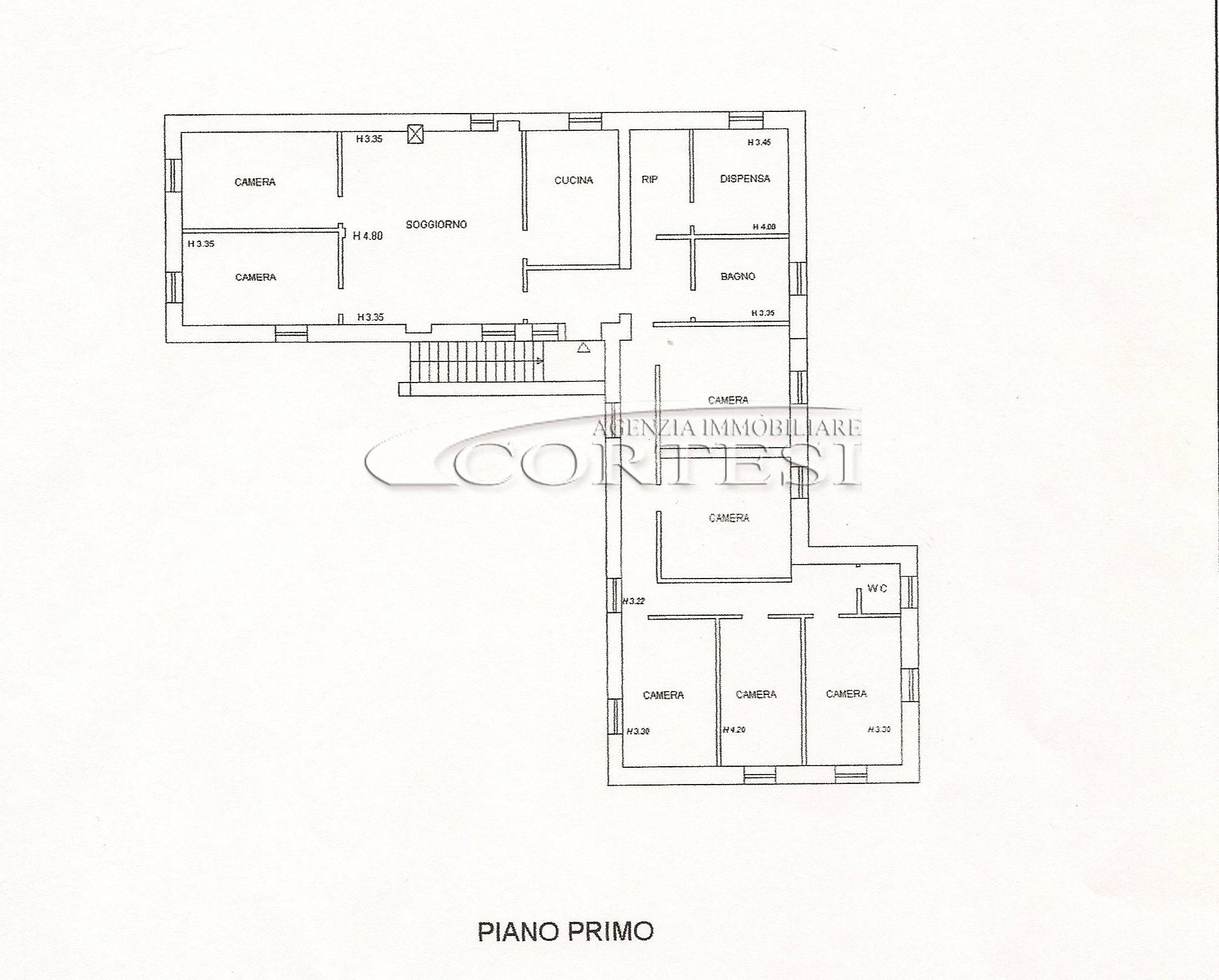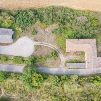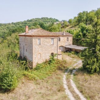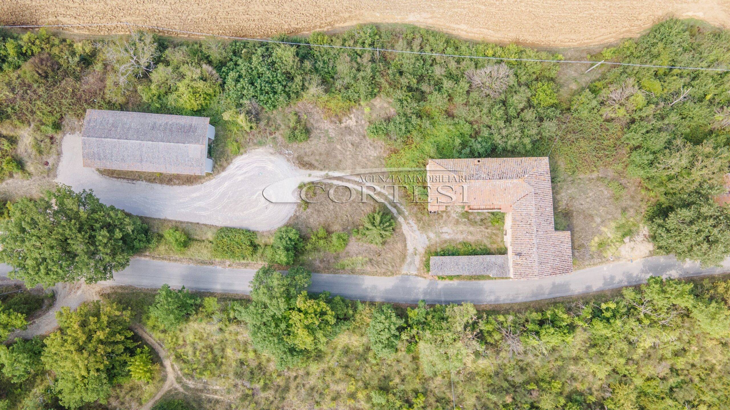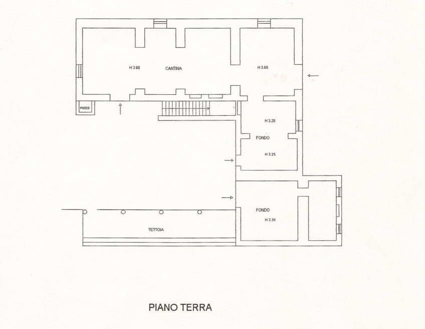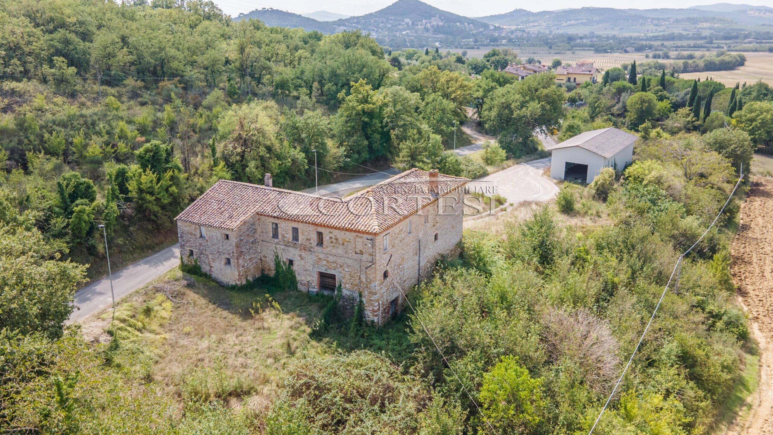 Il cuore della tenuta è un casolare di circa 466 mq, disposto su due piani. Al piano terra si trovano una caratteristica cantina con mattoni a vista, ristrutturata negli anni Settanta e perfettamente conservata, un ampio garage e un annesso esterno che completano la funzionalità degli spazi. Il piano superiore, completamente da ristrutturare, conserva intatto il fascino originario ed è suddiviso in un soggiorno con camino, una cucina, otto camere matrimoniali e due bagni, per una superficie complessiva pari a quella del piano terra.