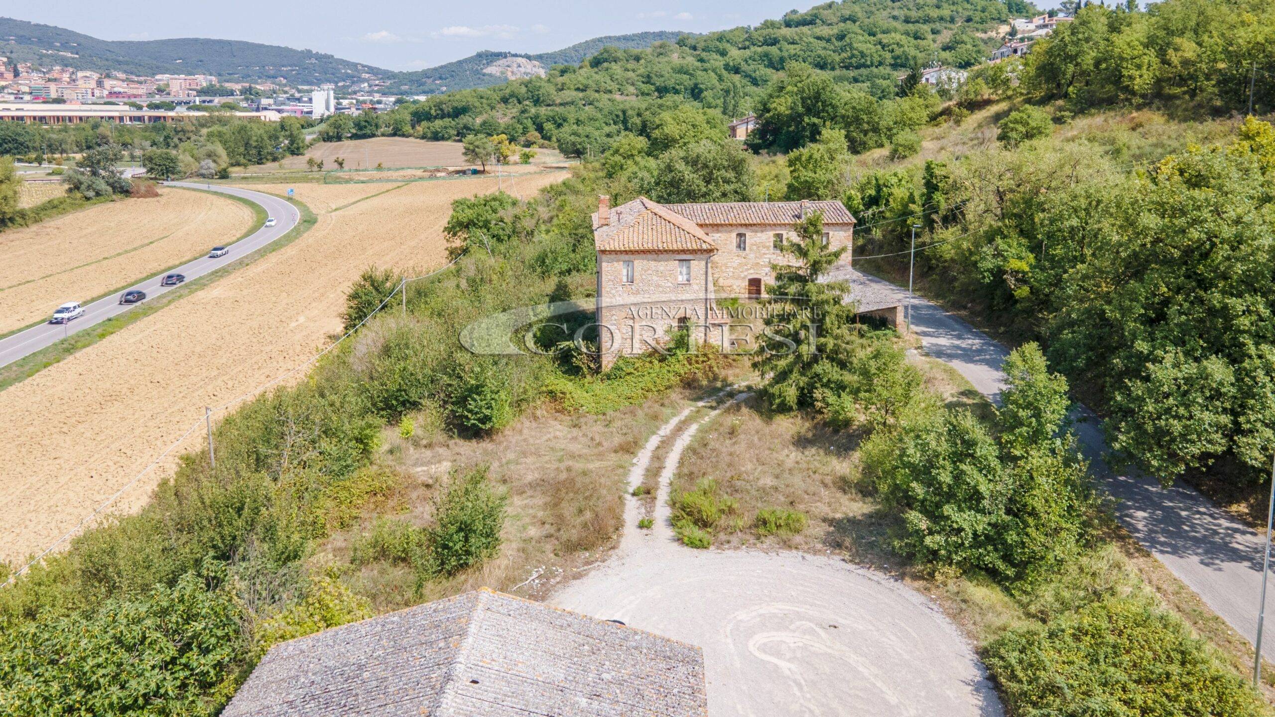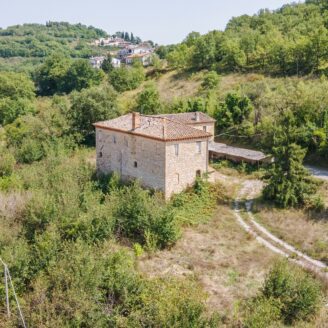 Nel complesso, la proprietà raggiunge circa 1.200 mq di superficie coperta, circondata da circa 7.000 mq di terreno agricolo. La posizione si rivela strategica, trovandosi lungo la strada che conduce direttamente al borgo di Solomeo, intercettando naturalmente i flussi di visitatori e amanti del suo prestigioso contesto culturale. Questo rende l’immobile ideale per la creazione di una struttura ricettiva di charme, capace di unire ospitalità ed esclusività in un luogo unico.