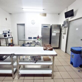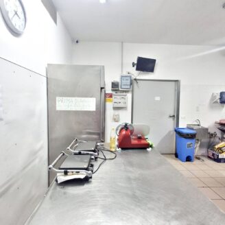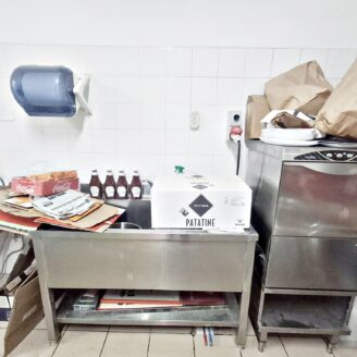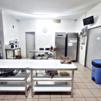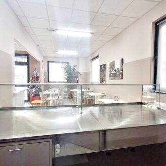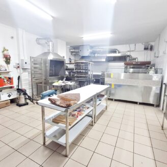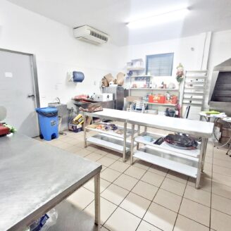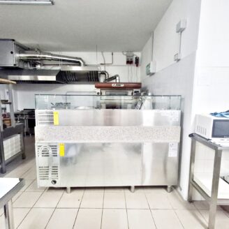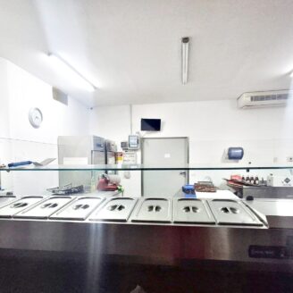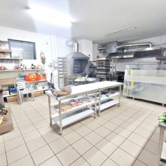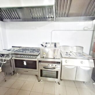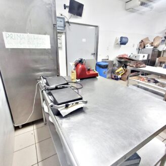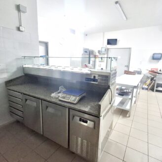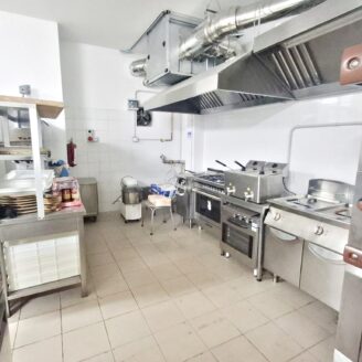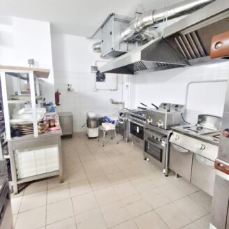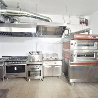 La cucina è completamente attrezzata e dispone di forno per pizza, fuochi, impastatrice, friggitrice e forno per spiedo, rendendo possibile l’ampliamento dell’offerta con pizzeria al taglio e d’asporto, hamburgeria e rosticceria.