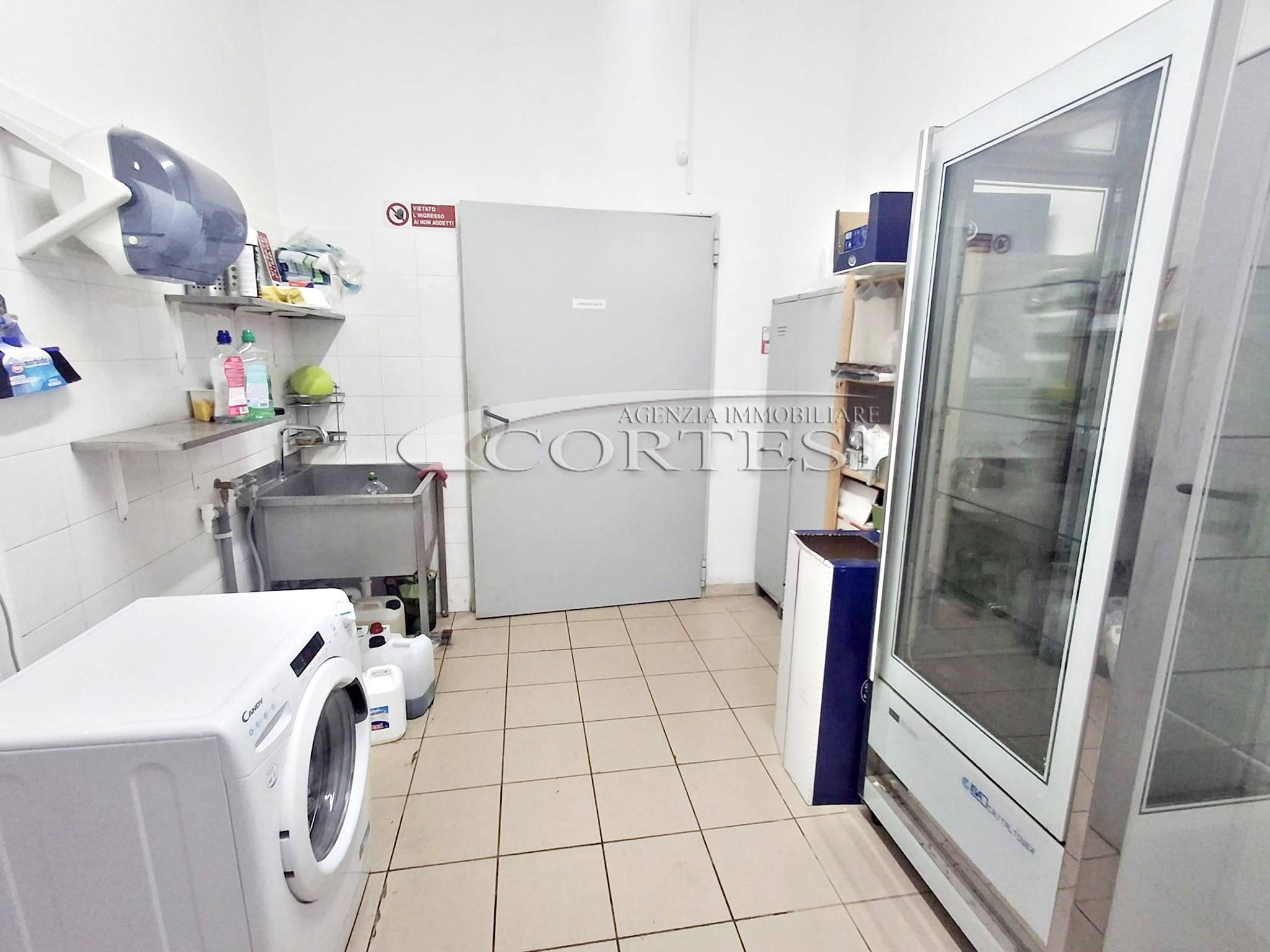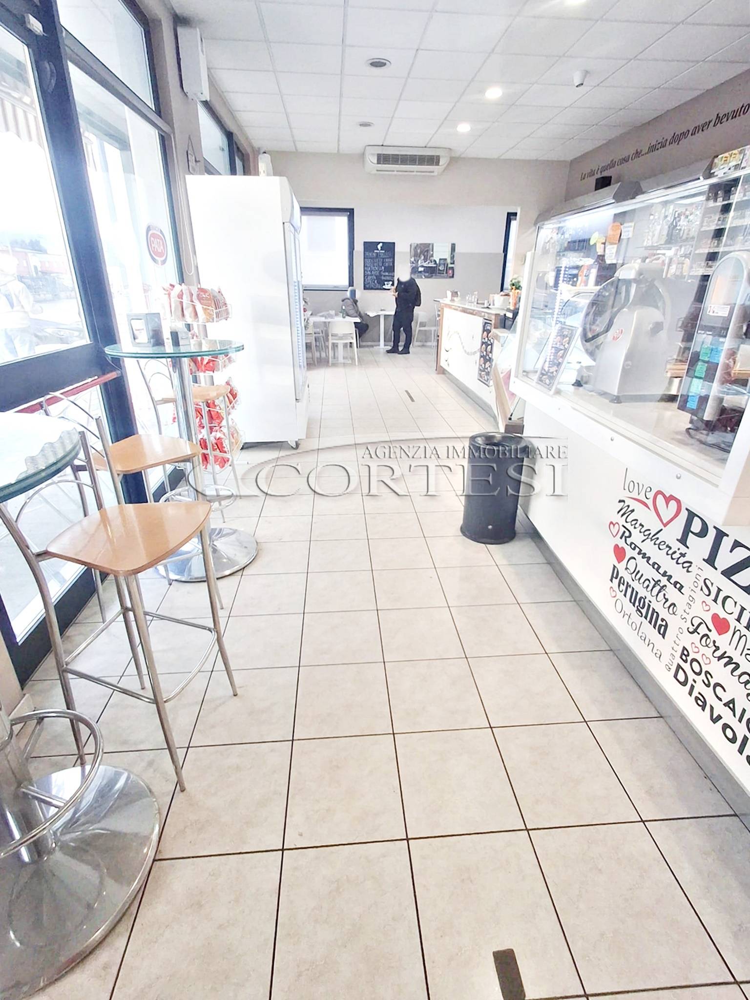 Il locale è composto da un ampio vano unico destinato alla somministrazione, dotato di servizio per la clientela. Sul retro si sviluppa un’area funzionale con grande cucina, lavanderia, bagno e magazzino.