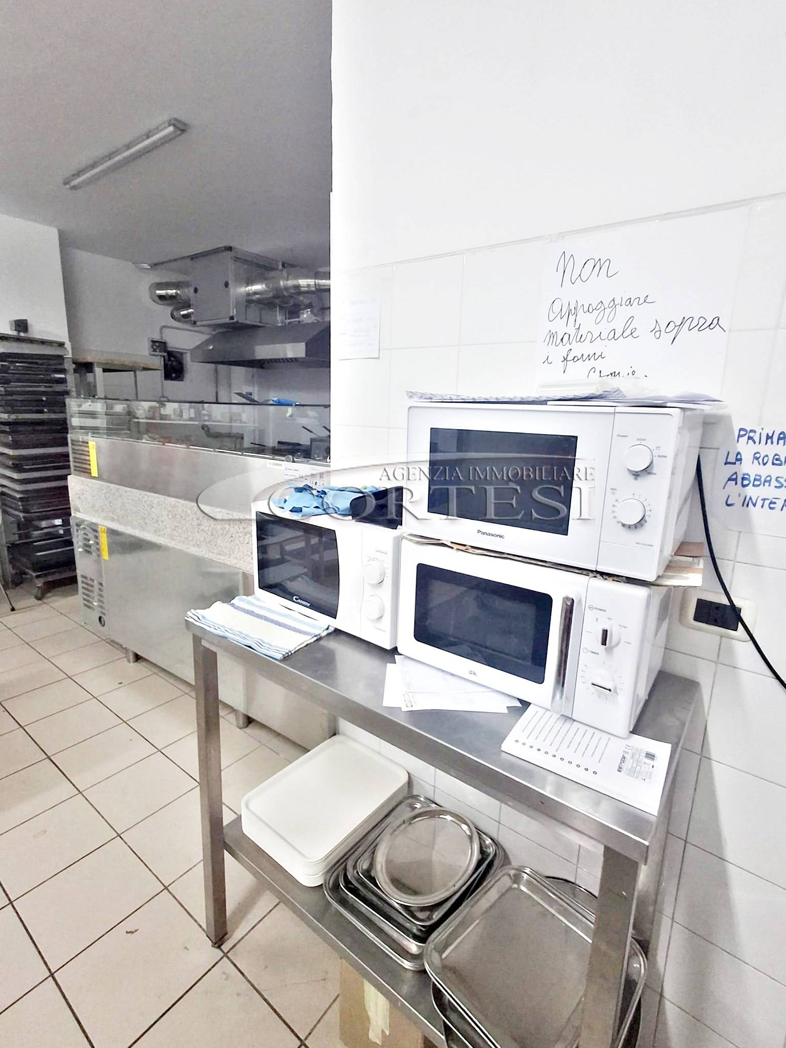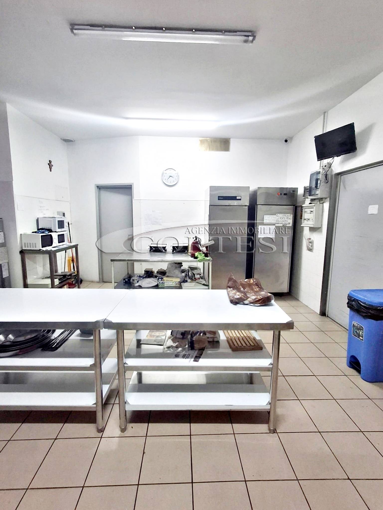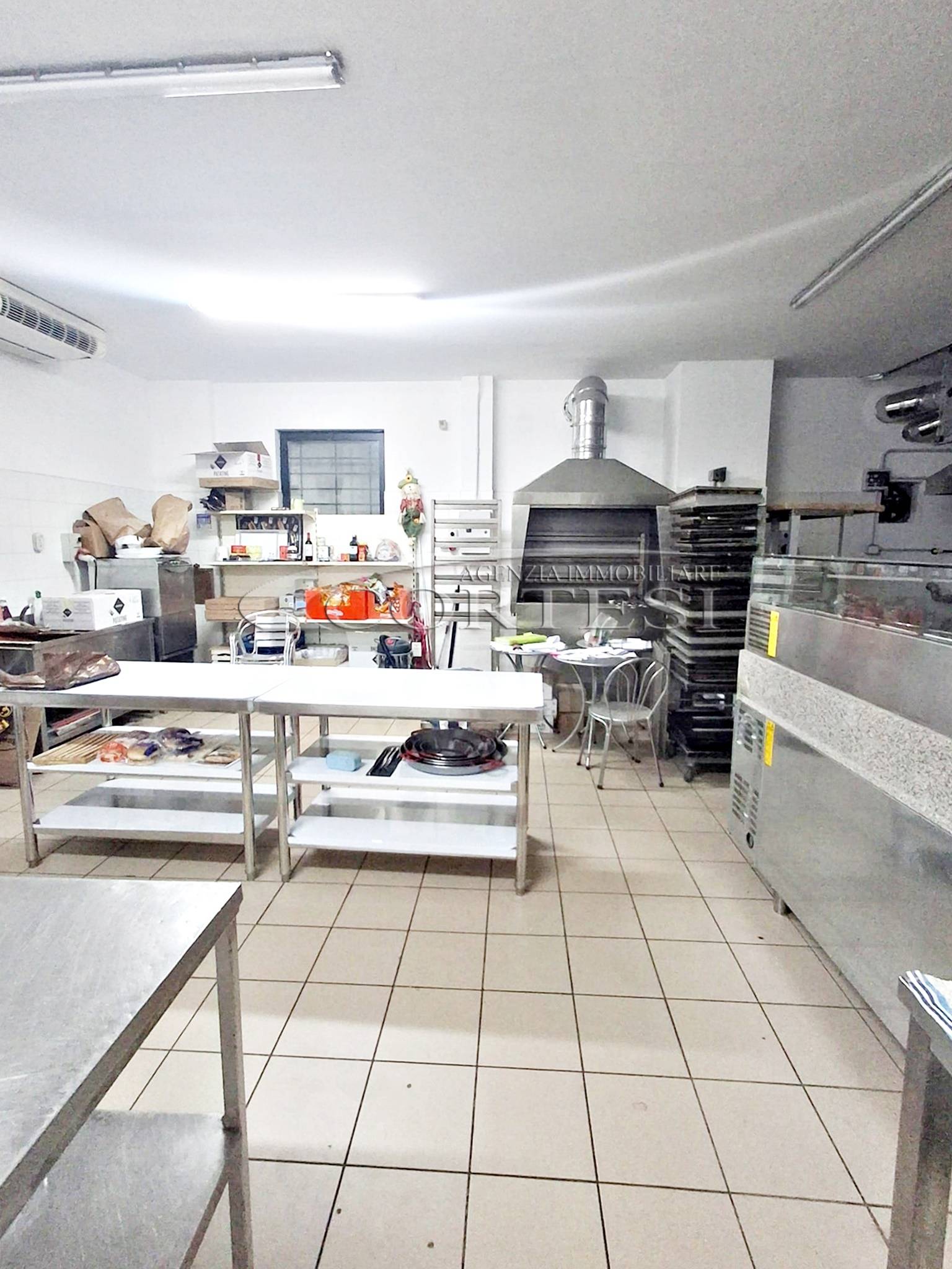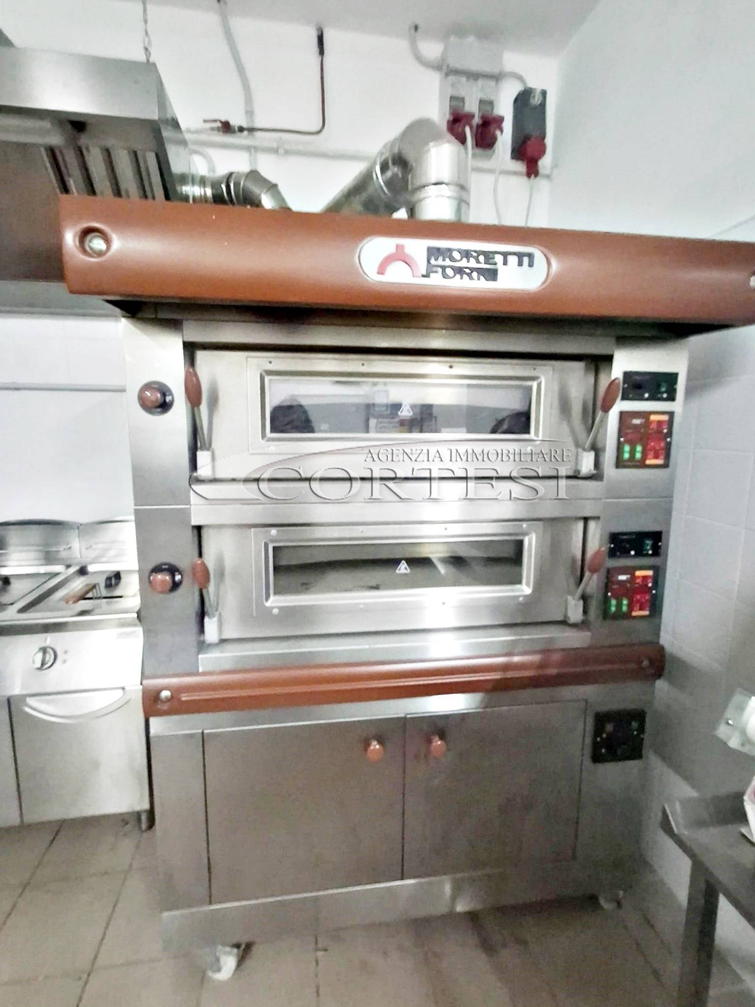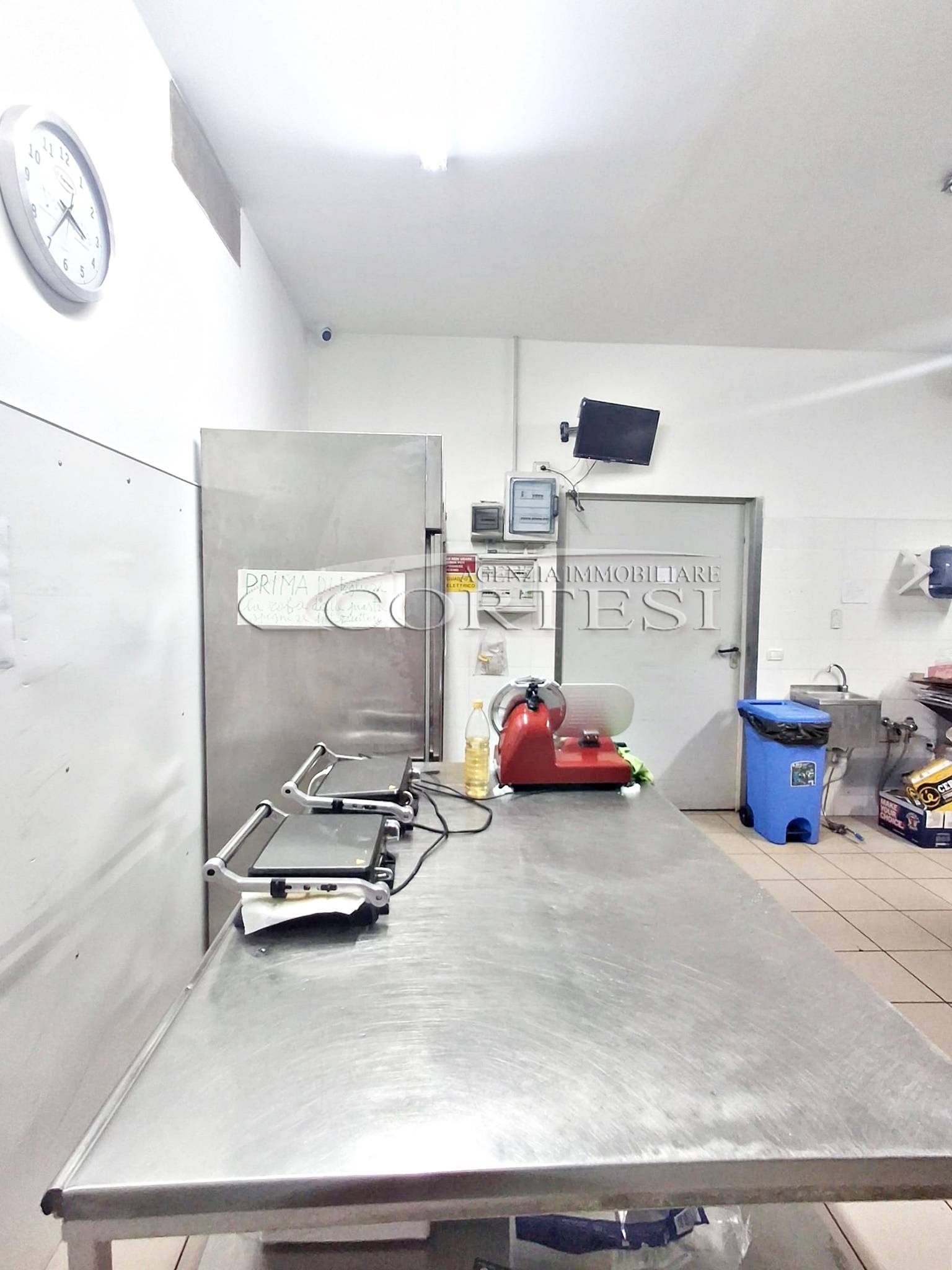 La cucina è completamente attrezzata e dispone di forno per pizza, fuochi, impastatrice, friggitrice e forno per spiedo, rendendo possibile l’ampliamento dell’offerta con pizzeria al taglio e d’asporto, hamburgeria e rosticceria.