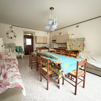 Al piano terra ampio soggiorno con angolo cottura e accesso diretto al giardino privato con bagno;