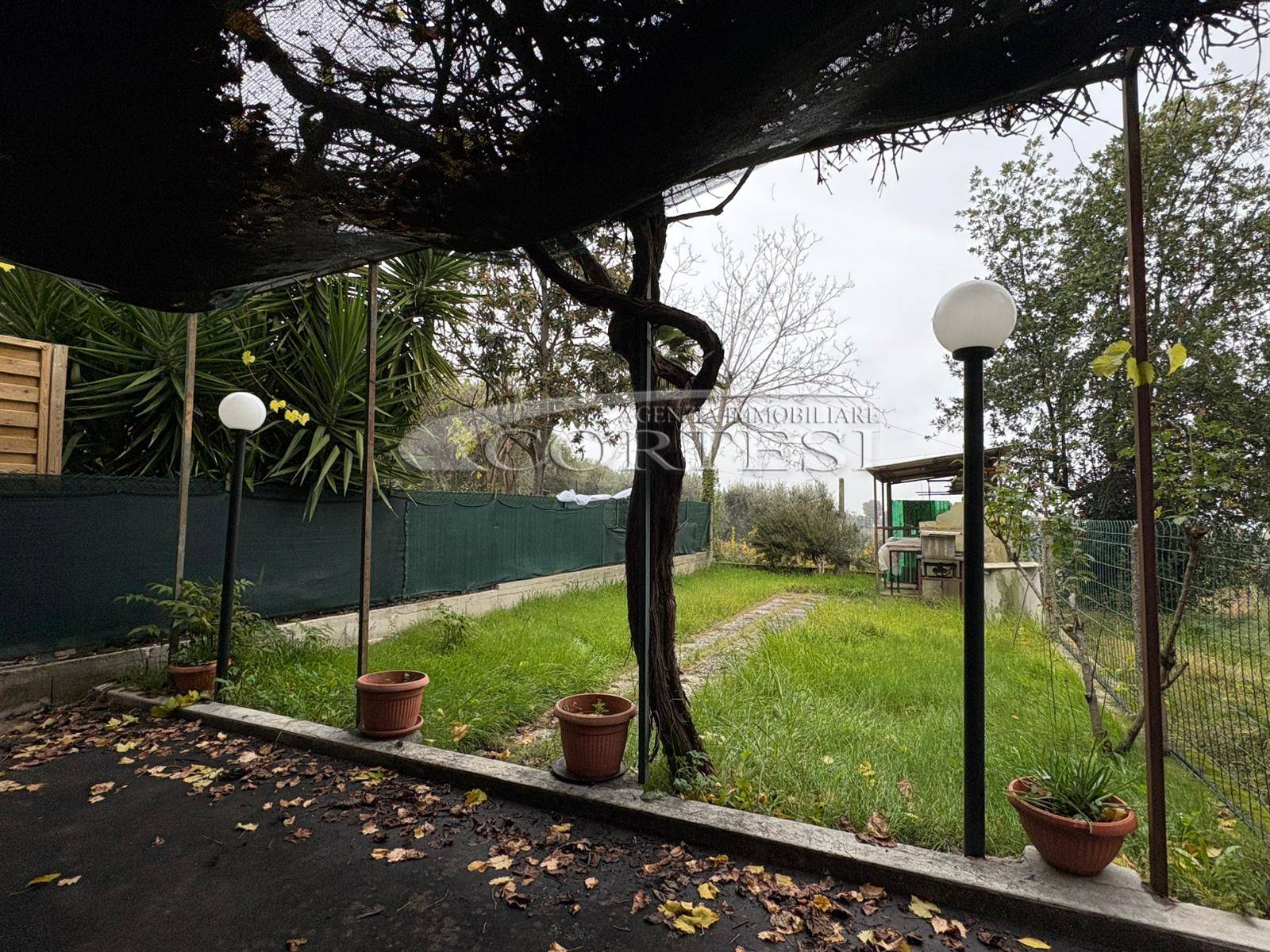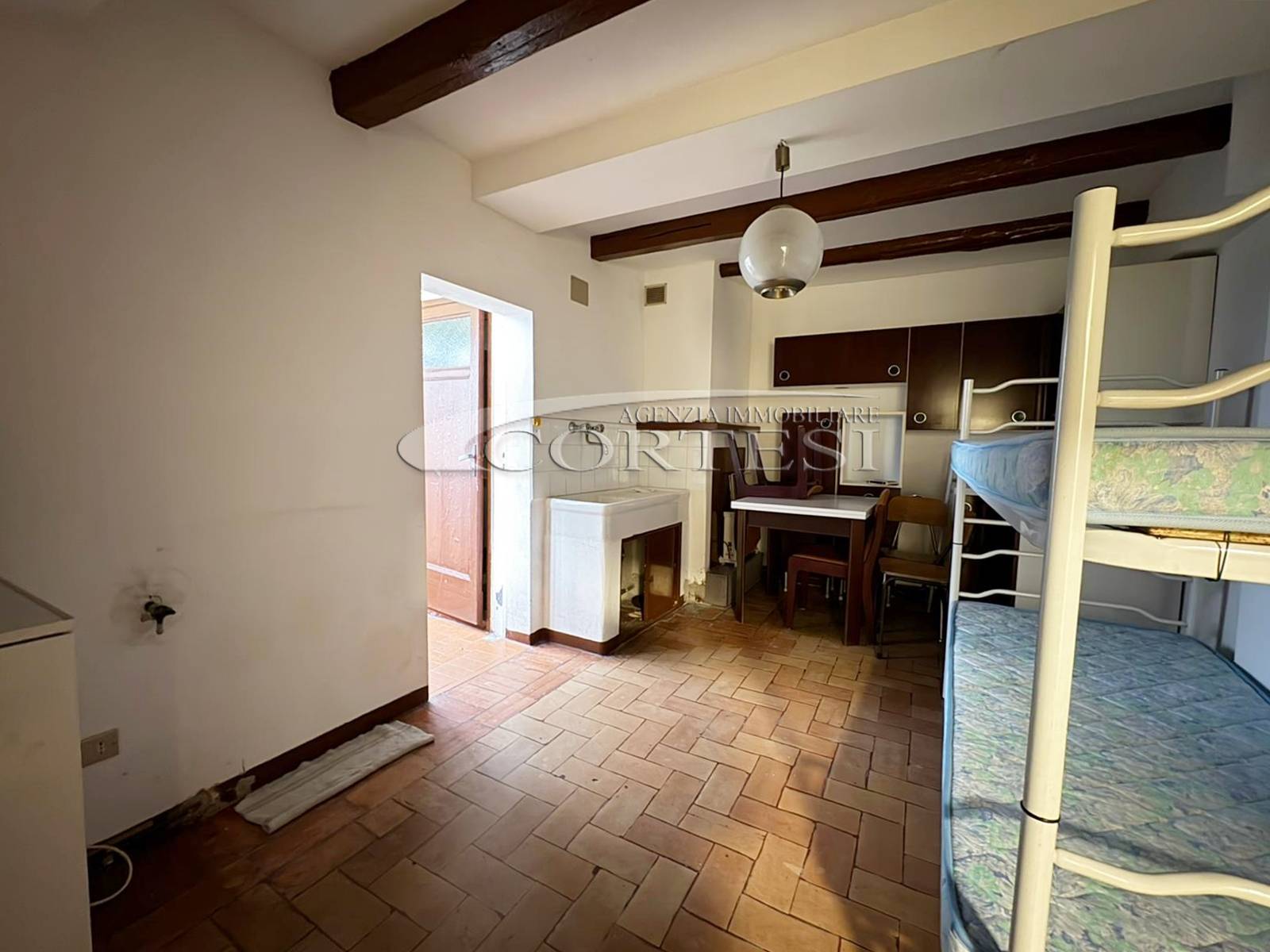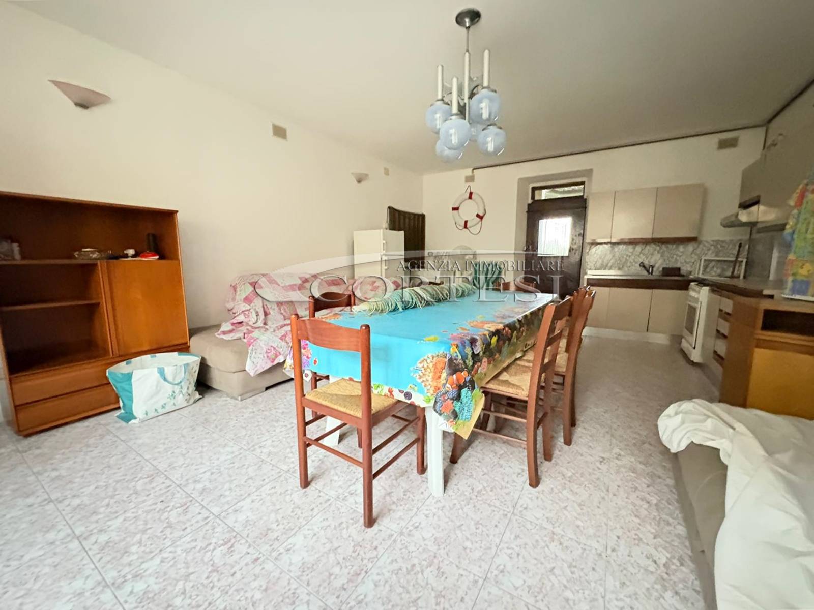 Al piano terra ampio soggiorno con angolo cottura e accesso diretto al giardino privato con bagno;