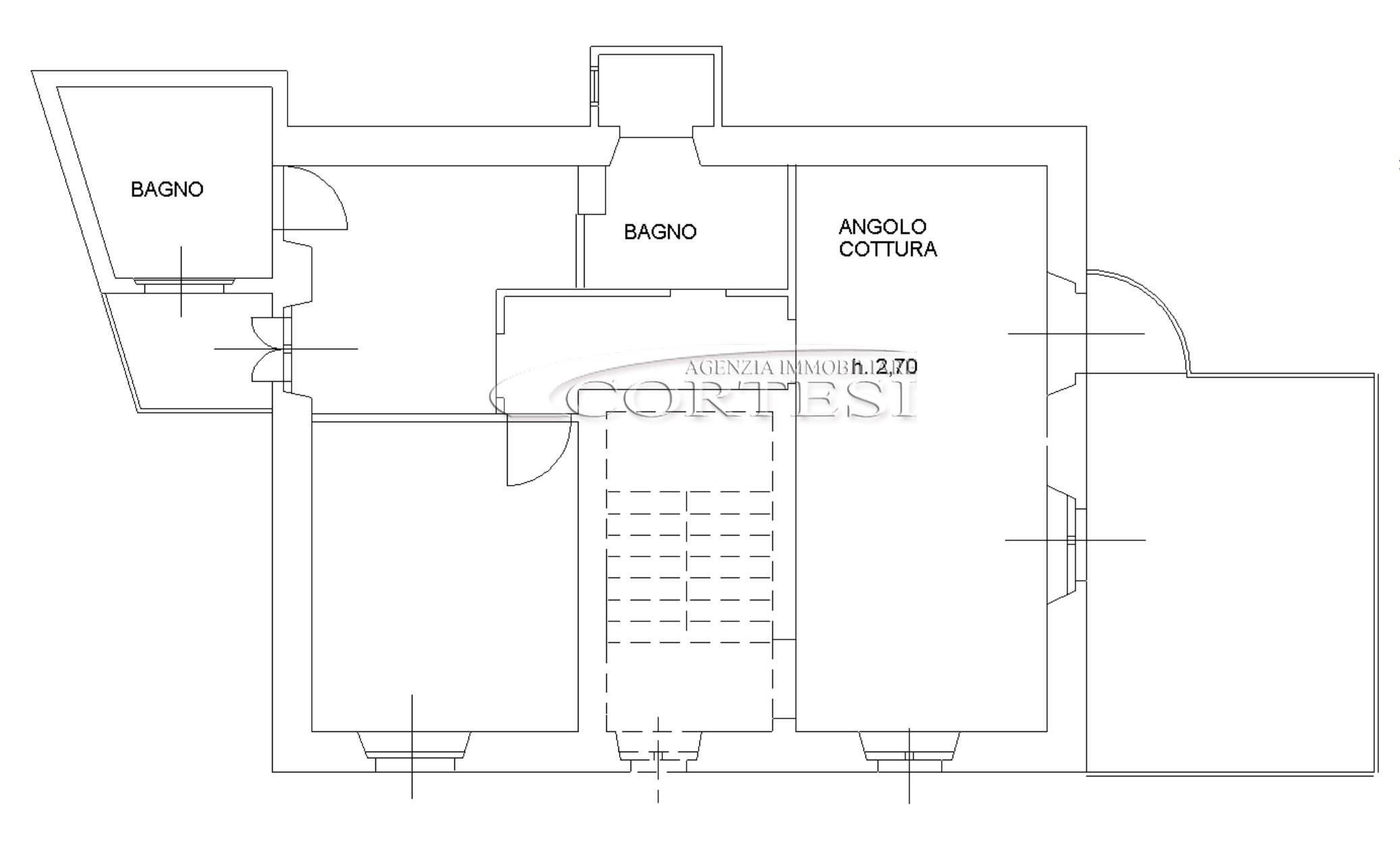 L’immobile è composto al primo piano da ampio soggiorno, cucina abitabile, due spaziose camere matrimoniali, bagno e balcone.