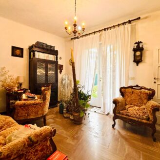 La proprietà si sviluppa su due livelli. Al piano terra, ambienti generosi e luminosi accolgono una cucina abitabile, sala da pranzo e un elegante soggiorno con affaccio diretto sul giardino privato, creando un perfetto dialogo tra interno ed esterno. Completano il piano una camera matrimoniale e un bagno.