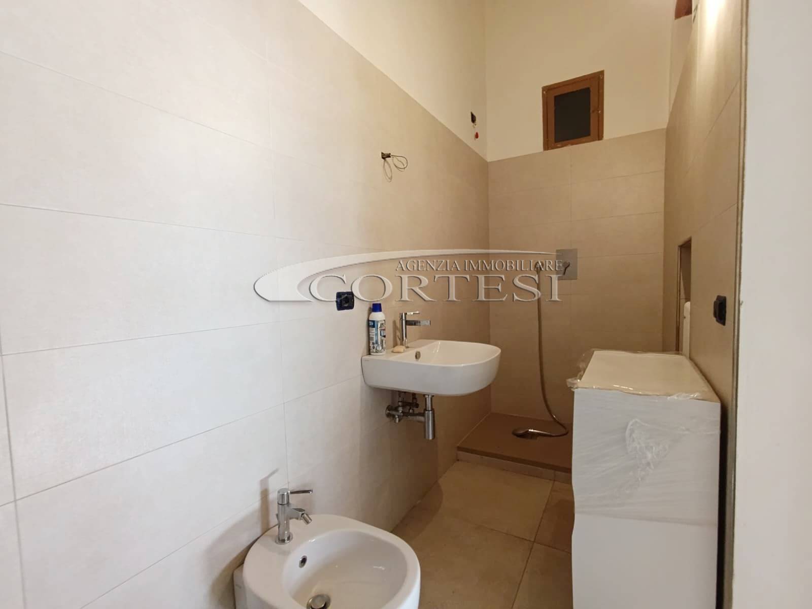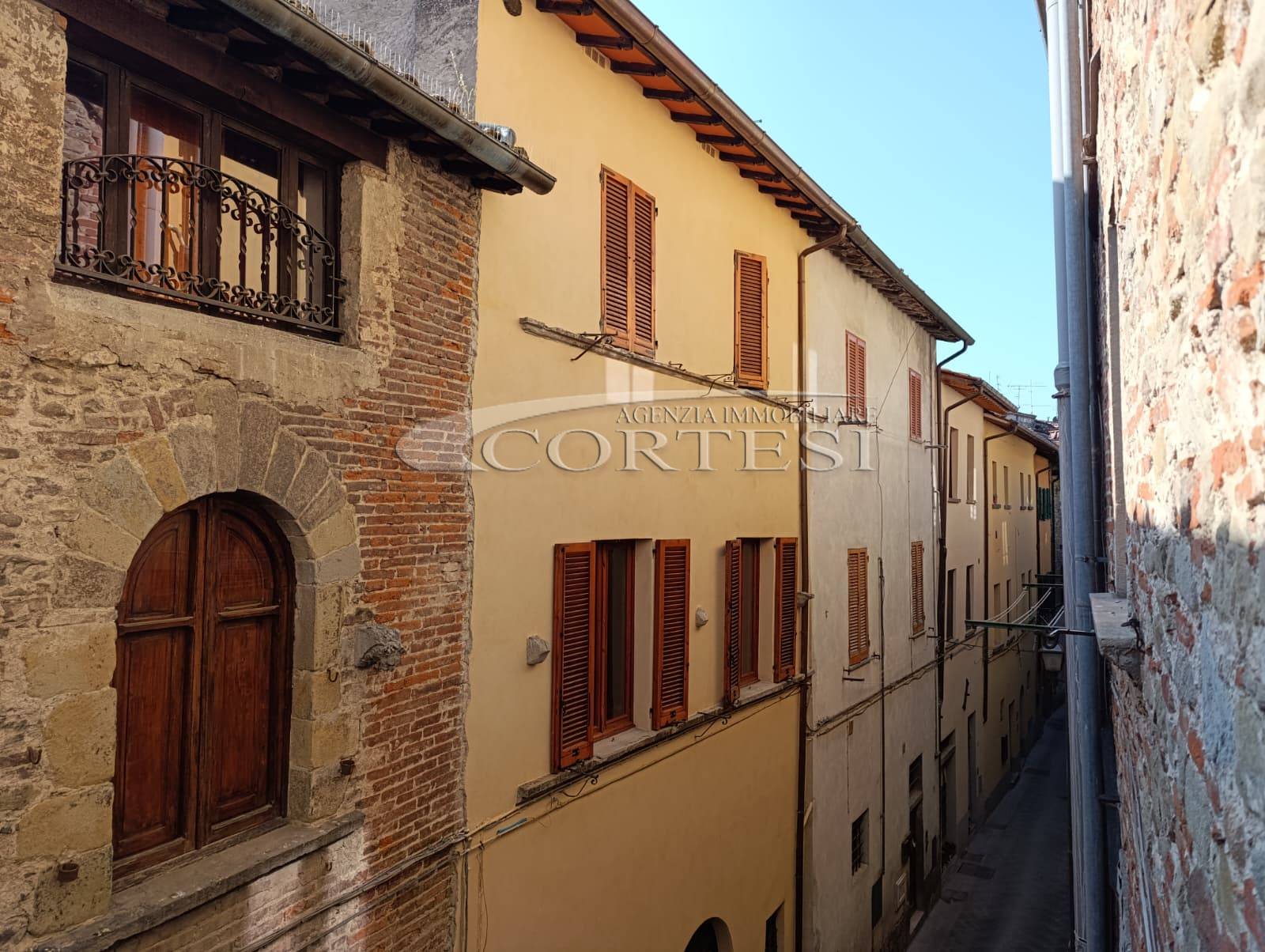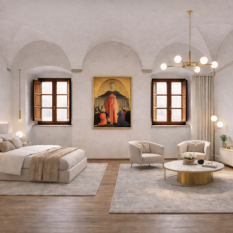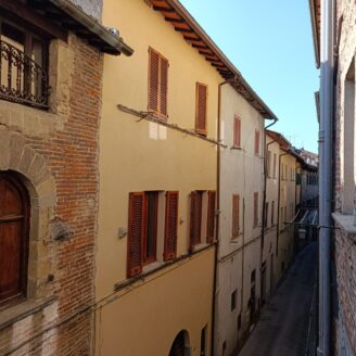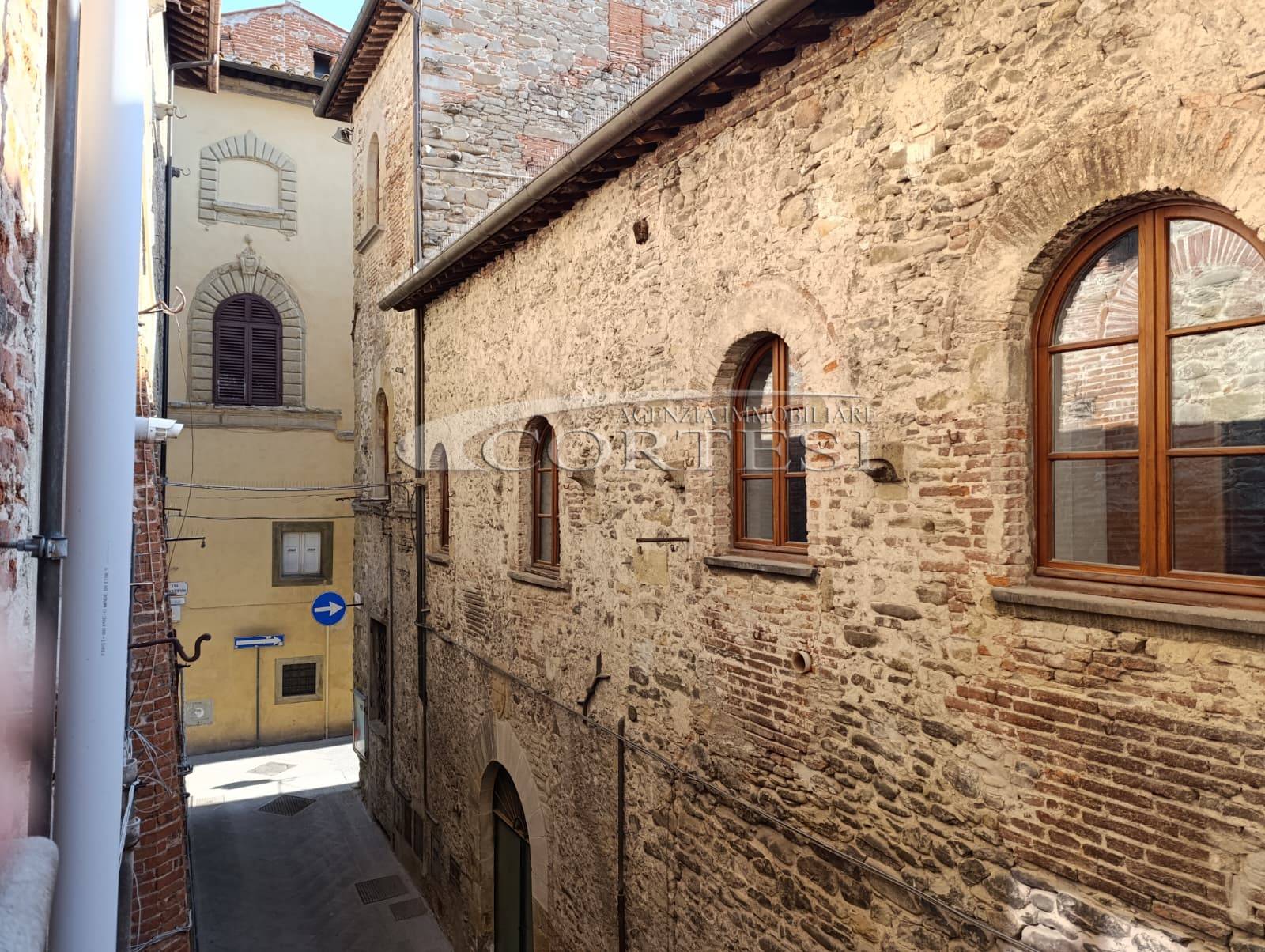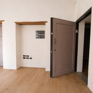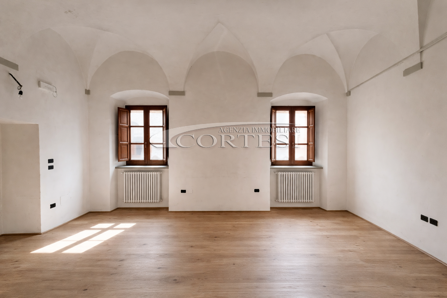 All’interno di Palazzo Giovagnoli, si propone in vendita un’unità immobiliare di 60 mq situata al secondo piano. L’immobile è stato oggetto di un intervento di ristrutturazione, eseguito con particolare cura nel recupero conservativo degli elementi storici preesistenti. La superficie interna si apre su un primo ambiente con predisposizioni impiantistiche per l’installazione di un’area cucina e servito da un locale igienico interamente rinnovato nelle finiture e nelle dotazioni. Il passaggio al secondo ambiente avviene attraverso una porta in pietra serena scolpita con l’incisione “Labore omnia florent”, qui troviamo un ampio vano. Grazie alla presenza della doppia finestratura, questo locale gode di una buona luminosità naturale, risultando ideale per una configurazione open-space atta a integrare la zona living e la zona notte.