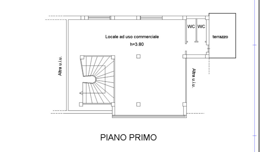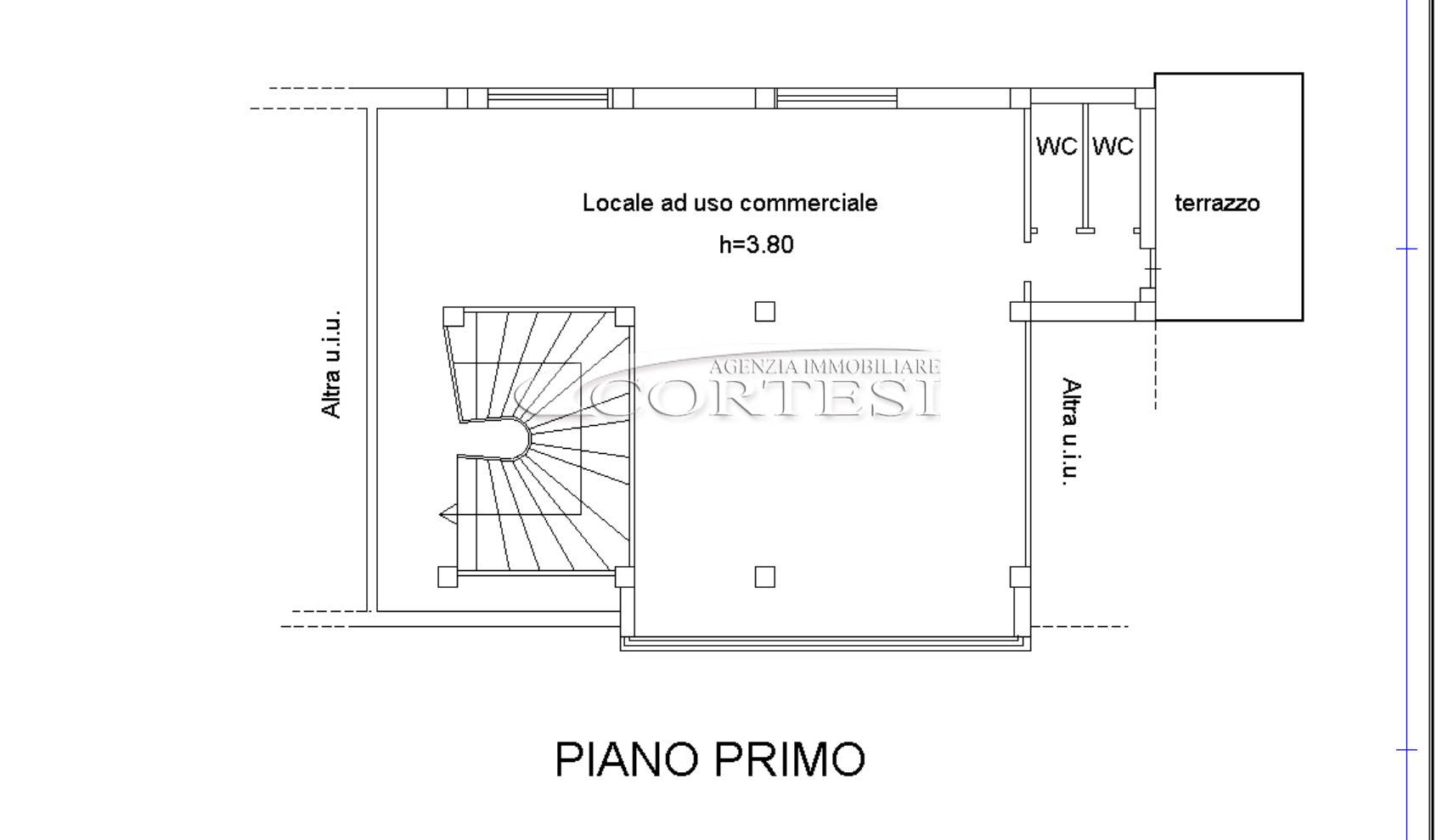 Locale commerciale di 110 mq disposto su un unico livello situato al piano primo con ingresso indipendente lo spazio interno è ampio luminoso e organizzato come openspace con grandi vetrate che garantiscono luce naturale continua sono presenti un comodo ripostiglio e due bagni funzionali all uso quotidiano completano la proprietà un terrazzo vivibile e un posto auto scoperto riservato la struttura offre la possibilità di cambio di destinazione d uso ad appartamento o abitazione privata ed è adatta anche per studio associato oppure per attività di ristorante pizzeria grazie alla versatilità degli ambienti moderni semplici flessibili accoglienti funzionali.