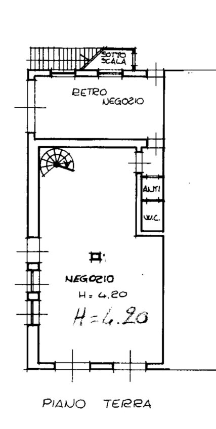 L’unità immobiliare è composta da ingresso con tre vetrine, di cui due frontali in legno massello con vetri antinfortunio ed una vetrina sulla via laterale; Attualmente il locale è diviso in quattro vani con la possibilità di trasformarlo in un unico ambiente; un vano è riservato a zona di archiviazione o cassaforte oltre ad un servizio con vano ripostiglio.