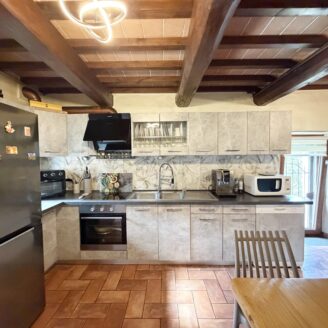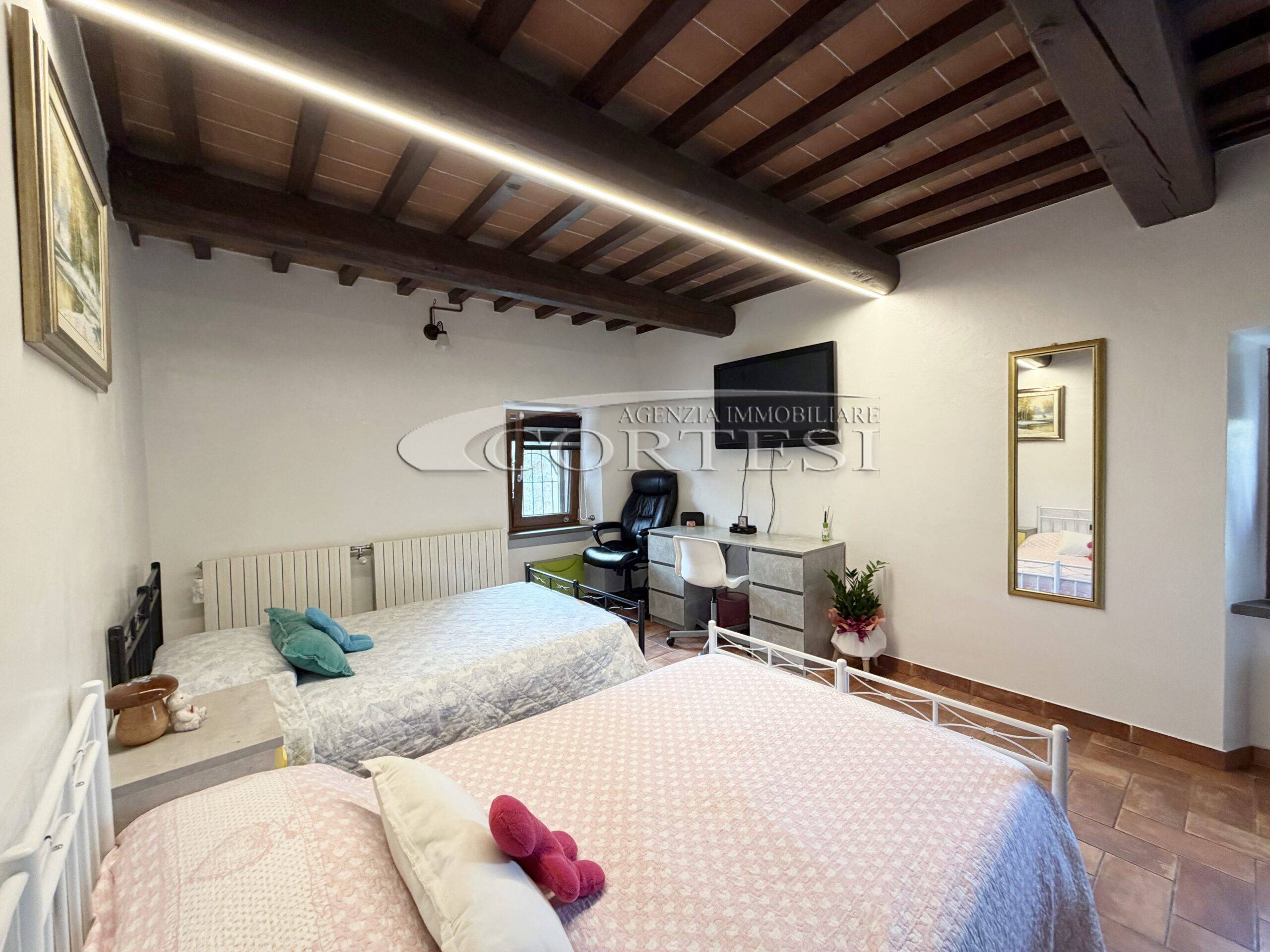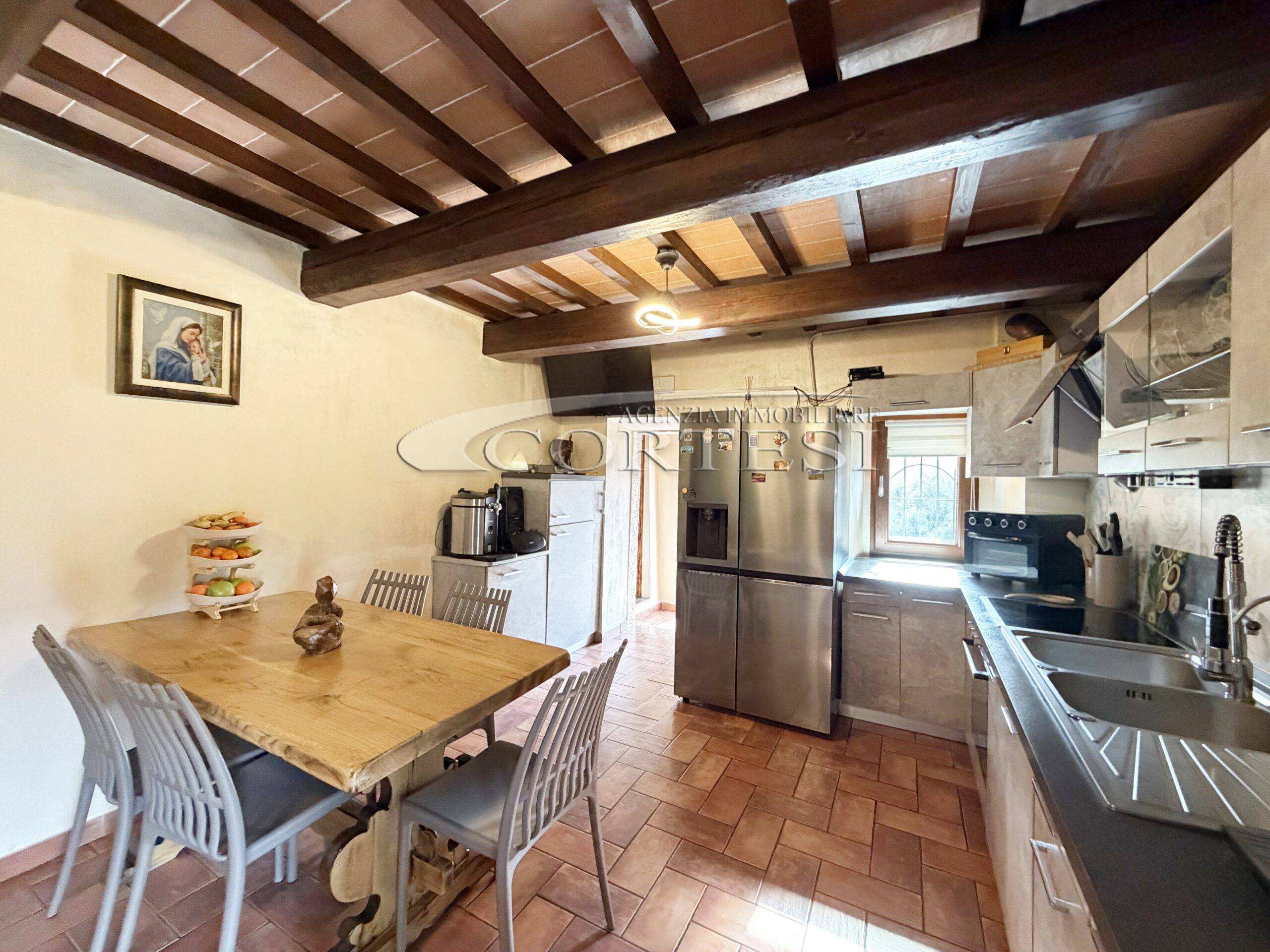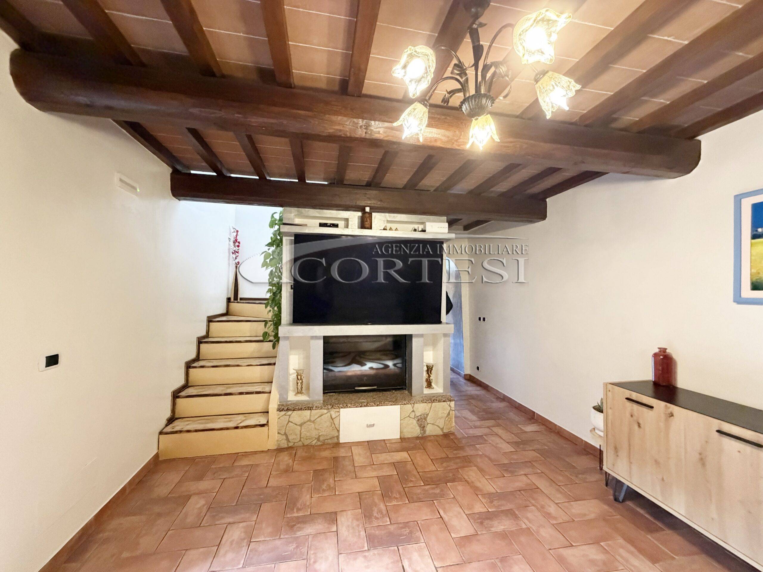 In campagna, porzione di casa indipendente completamente ristrutturata, disposta su tre livelli per un totale di circa 130 mq. L’abitazione ha ingresso indipendente e offre spazi ben organizzati e funzionali. Al piano terra si trovano un soggiorno con camino, un porticato vivibile, una cucina abitabile con stufa, un bagno e un comodo ambiente ad uso ripostiglio, lavanderia o locale tecnico. Al primo piano sono presenti una camera matrimoniale con cabina armadio, un bagno e una seconda camera matrimoniale. Completa la proprietà un ampio locale al piano seminterrato, utile come spazio accessorio. All’esterno si sviluppa un terreno circostante con scoperto privato, ideale per chi cerca tranquillità e contatto con la natura. Le finiture sono curate e l’immobile si presenta in ottime condizioni, pronto per essere abitato.