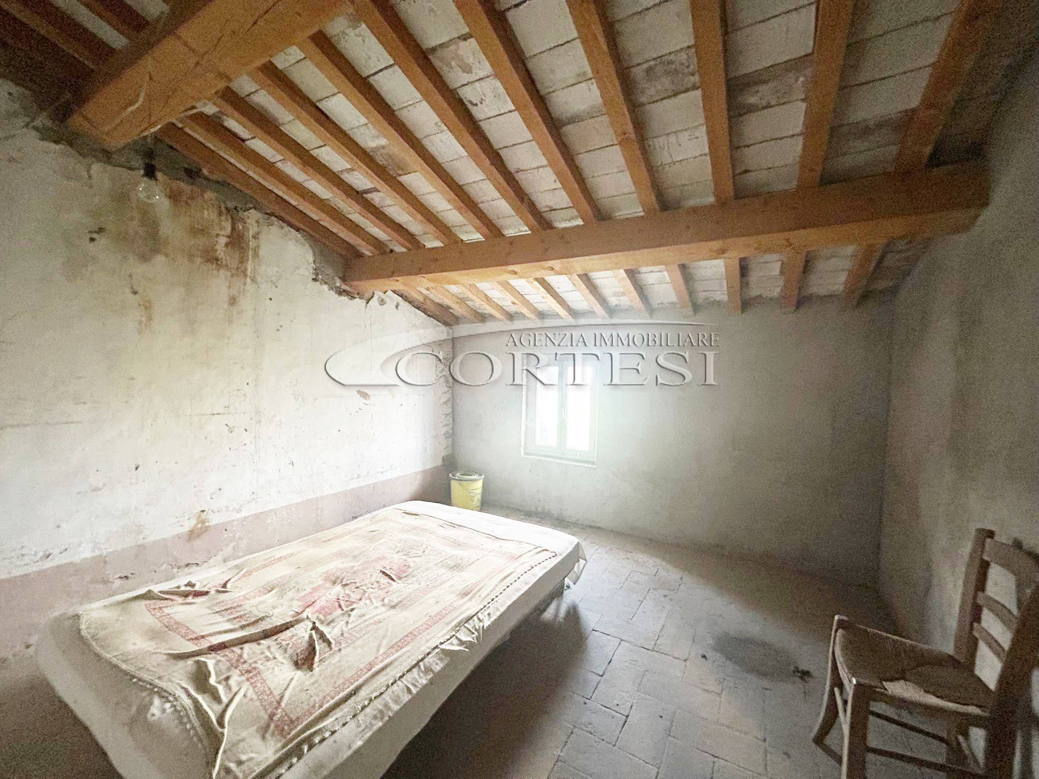 Porzione di casale con ingresso indipendente, in parte da risistemare, di circa 90 mq disposta su due livelli. Al piano primo si trovano soggiorno, cucina e due camere matrimoniali; al piano terra ampi fondi per circa 80 mq, con taverna. Completano la proprietà un giardino circostante, terreno di circa 2.000 mq con pozzo e un annesso di 30 mq con possibilità di realizzare un garage. Internamente da rivedere, ma con tetto già rifatto. Soluzione ideale per chi cerca tranquillità e spazi esterni in contesto di campagna.