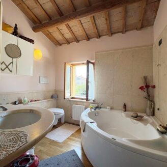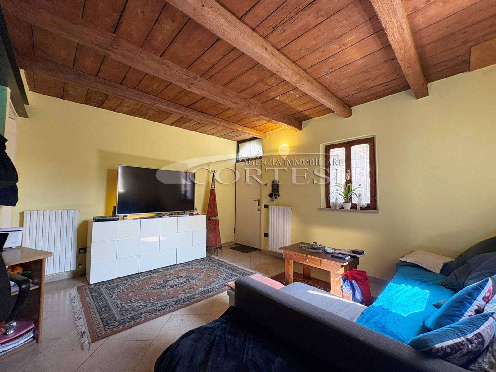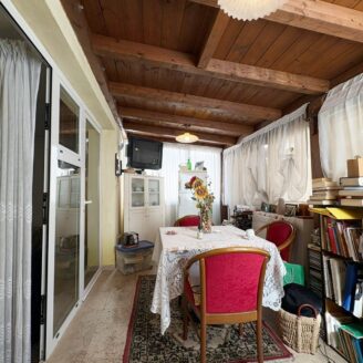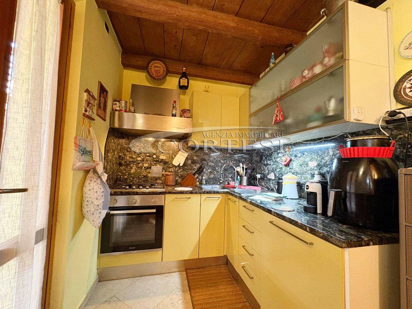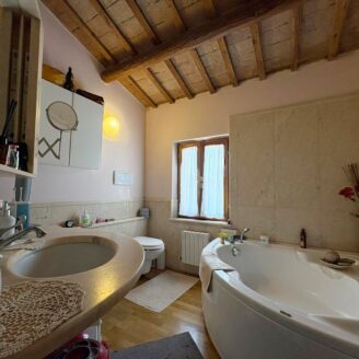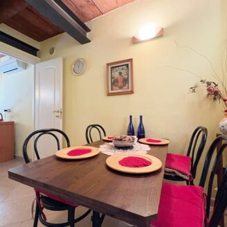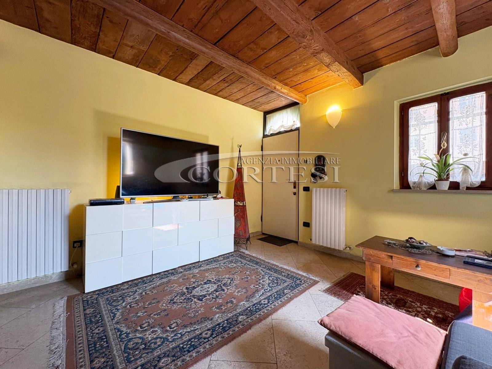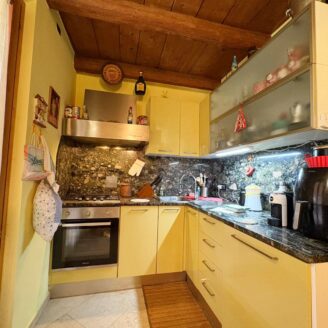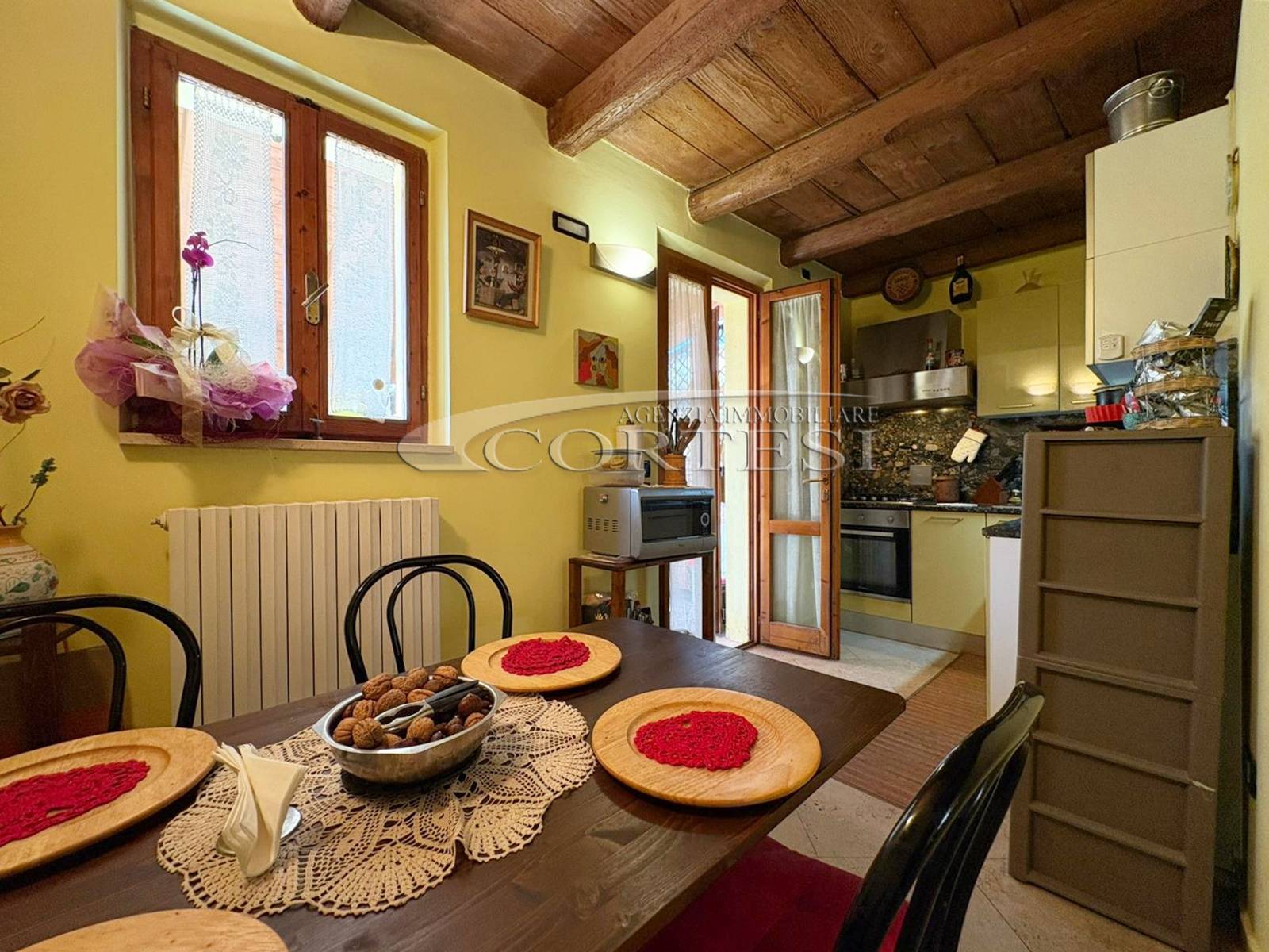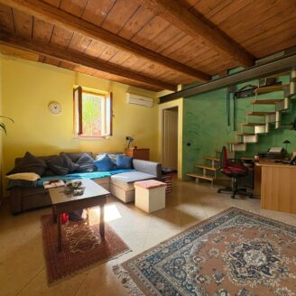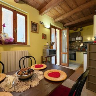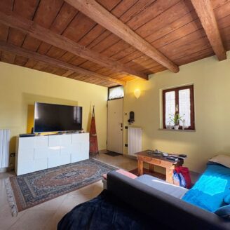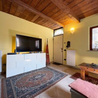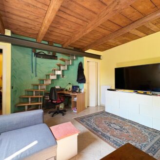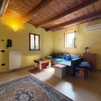 L’ingresso a piano terra si apre su un luminoso soggiorno impreziosito da suggestive travi a vista, elemento distintivo che dona calore e carattere a tutti gli ambienti della casa, bagno di servizio e completa il piano una cucina abitabile, funzionale e accogliente, con accesso diretto al giardino privato, ideale per momenti di relax all’aria aperta.