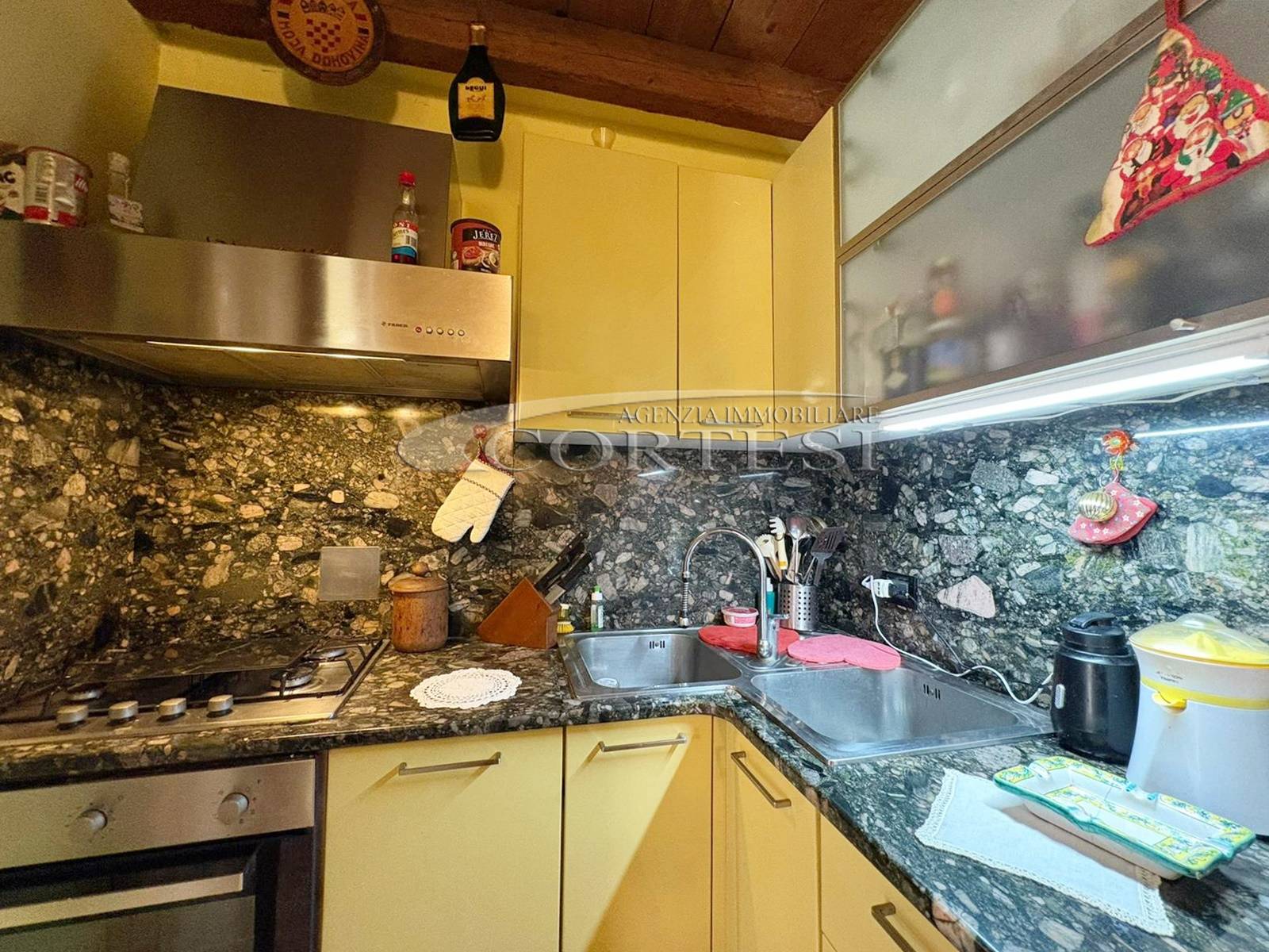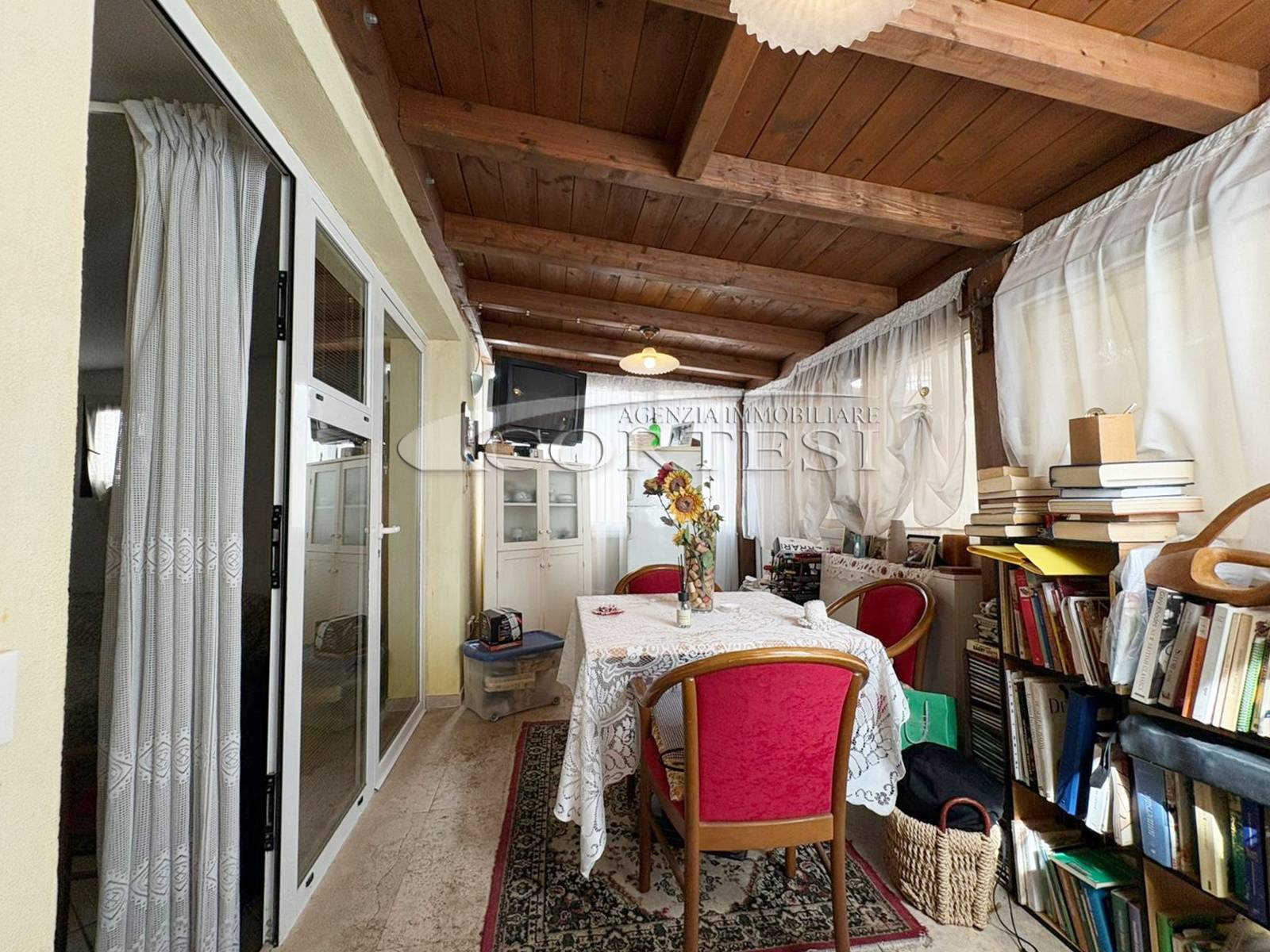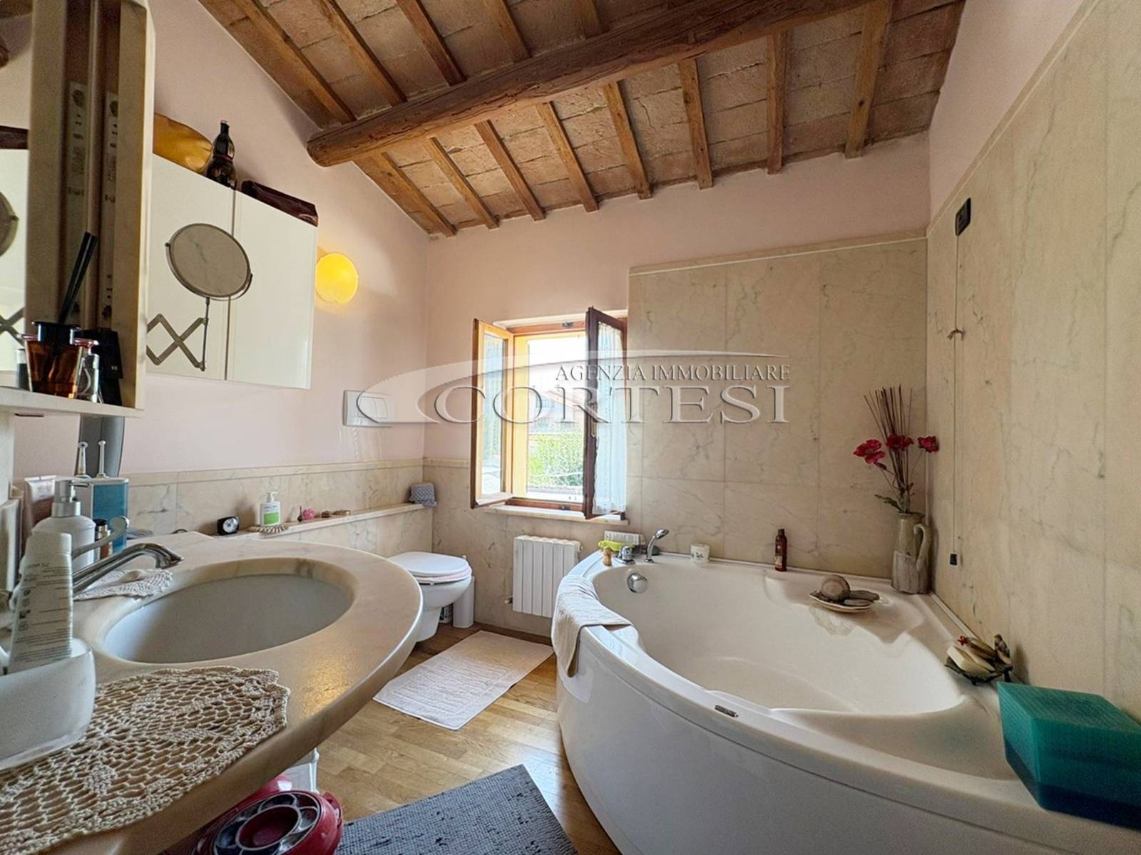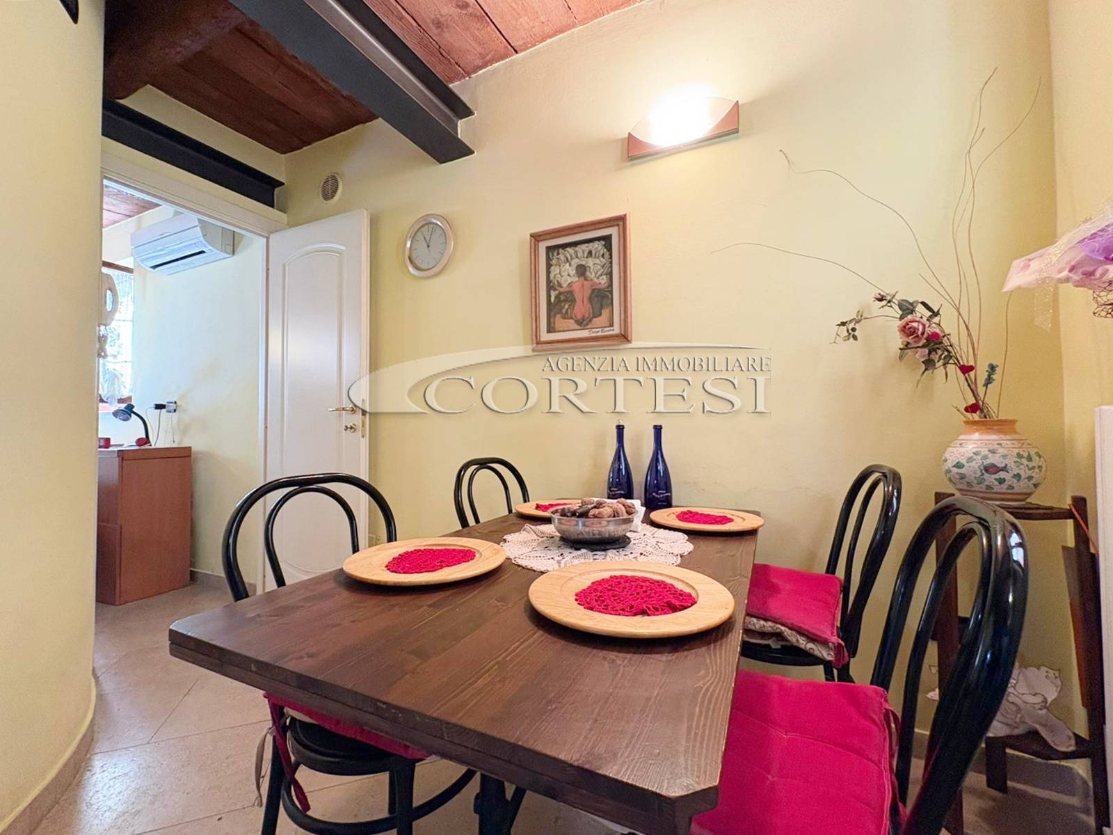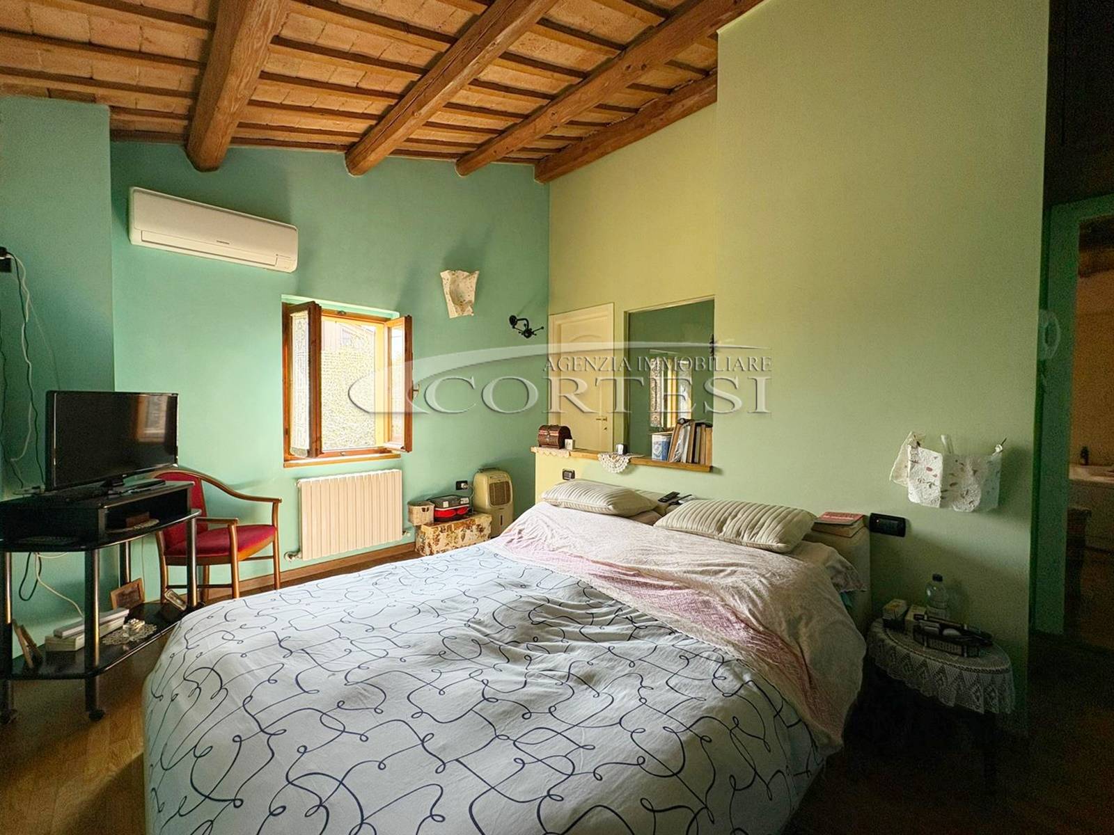 L’ingresso a piano terra si apre su un luminoso soggiorno impreziosito da suggestive travi a vista, elemento distintivo che dona calore e carattere a tutti gli ambienti della casa, bagno di servizio e completa il piano una cucina abitabile, funzionale e accogliente, con accesso diretto al giardino privato, ideale per momenti di relax all’aria aperta.