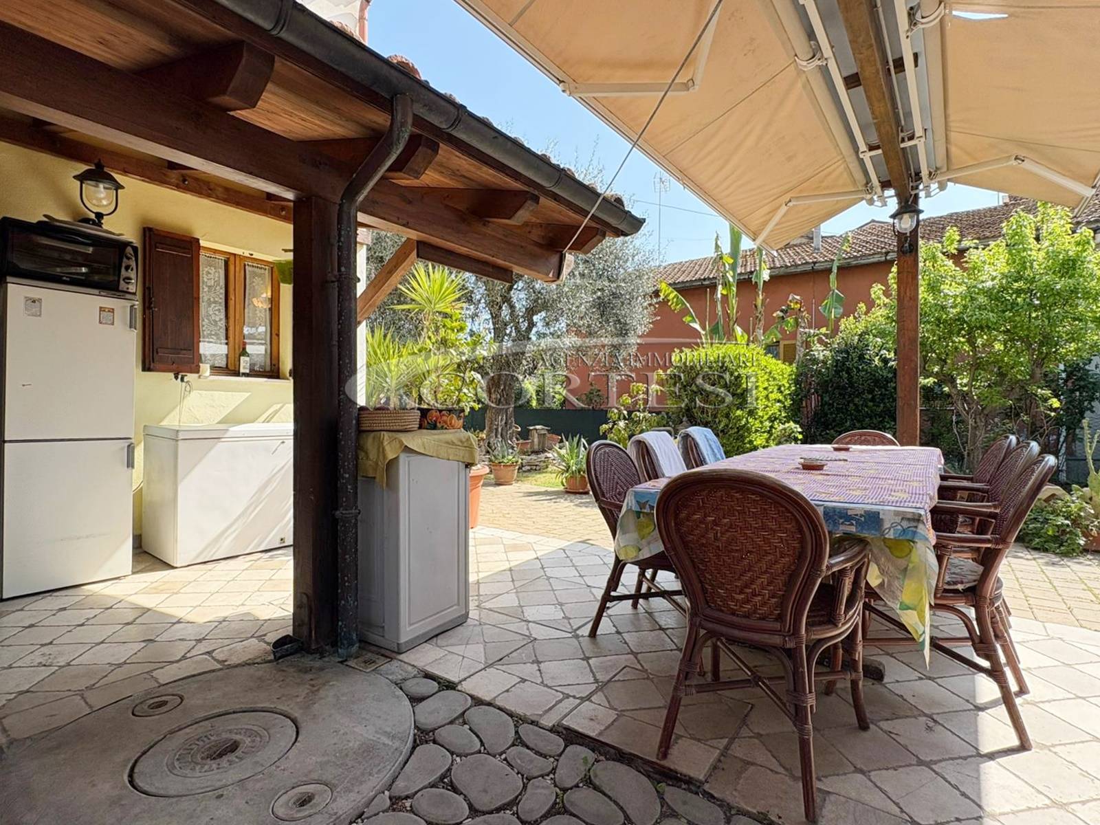 Completa la proprietà un comodo garage e un piacevole giardino privato, in parte piastrellato, che rappresenta uno spazio esterno curato e facilmente gestibile, ideale per vivere appieno ogni stagione.